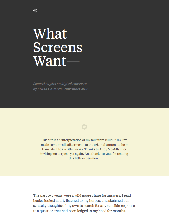 What Screens Want — Some thoughts on digital canvases by Frank Chimero.