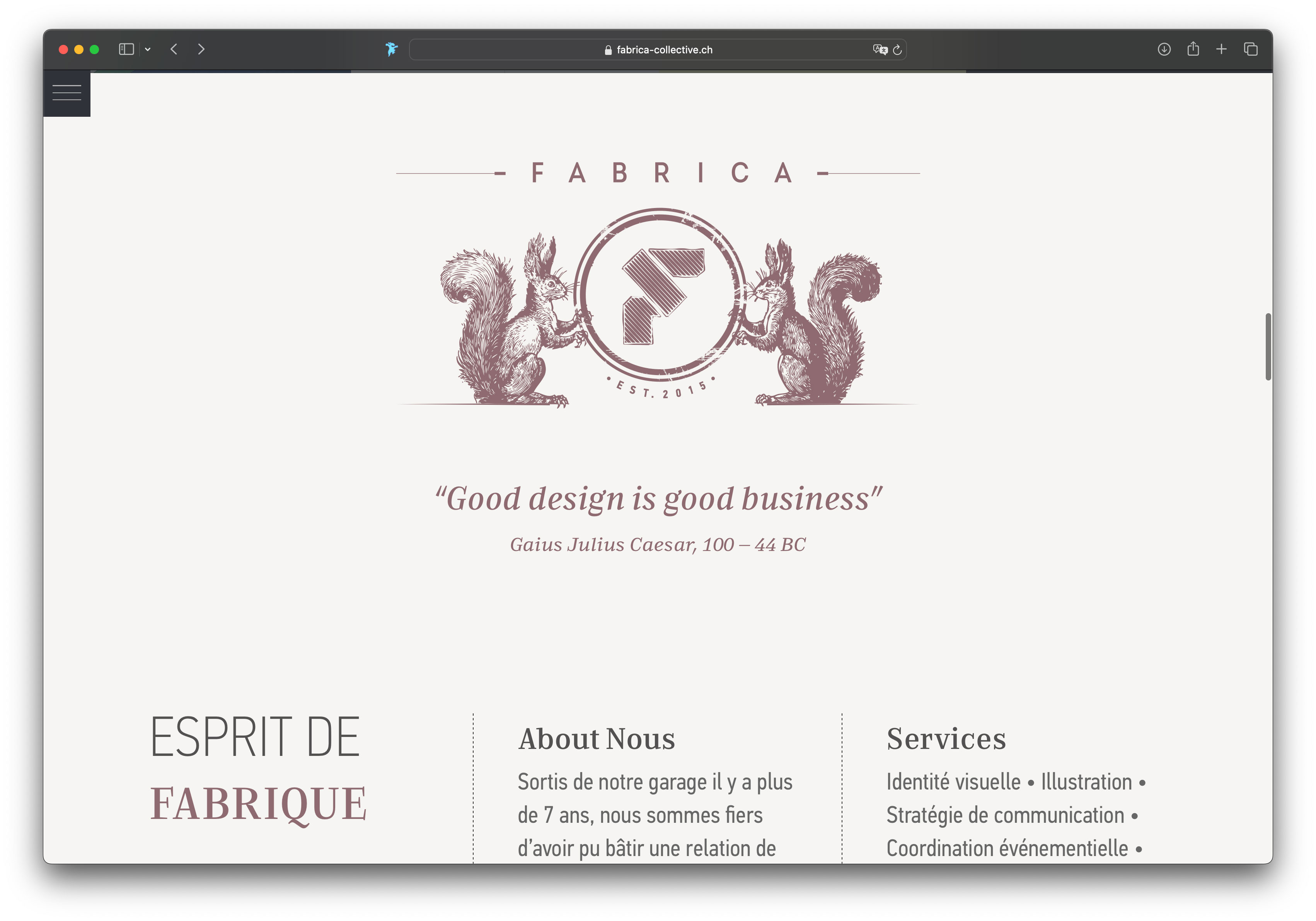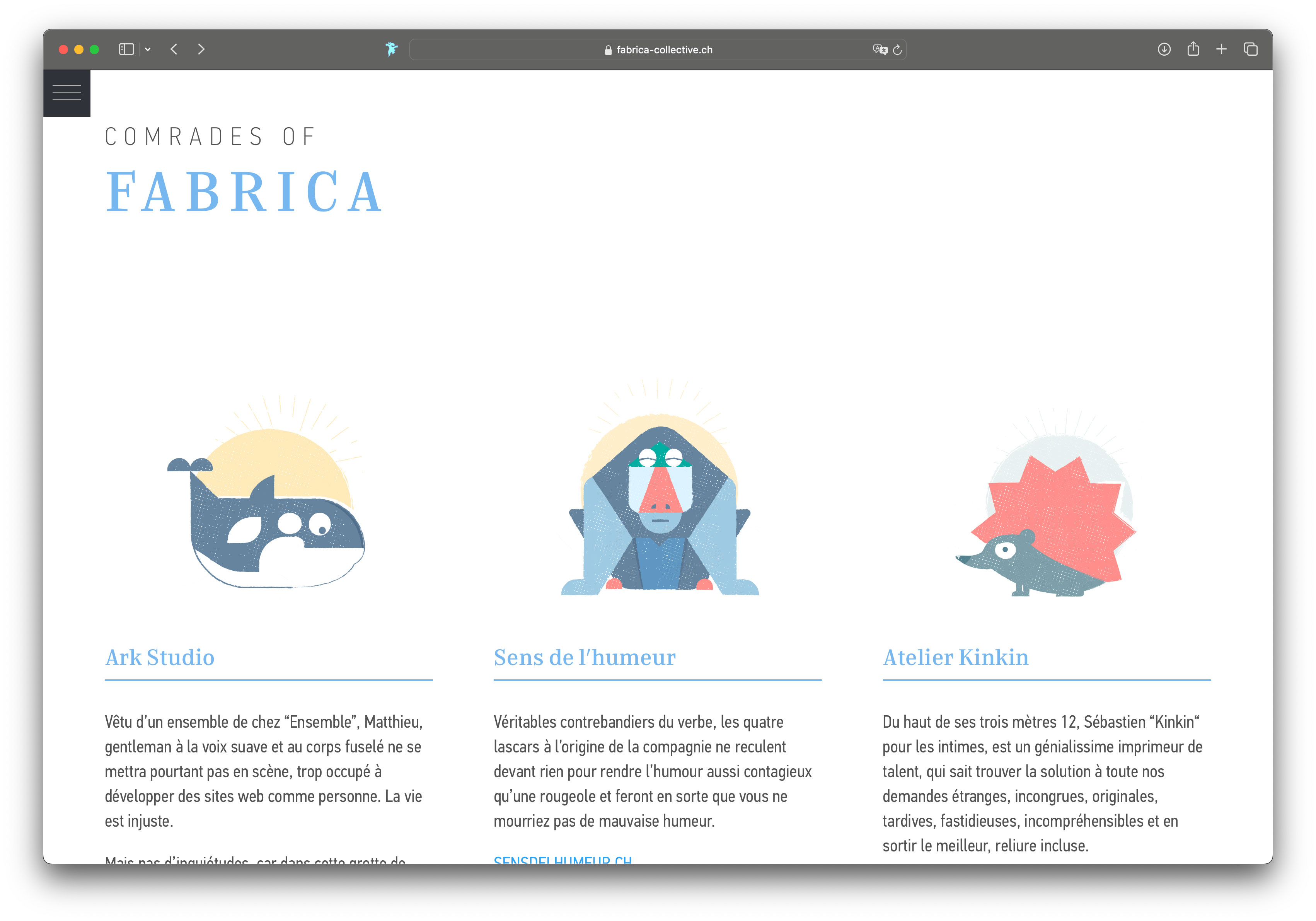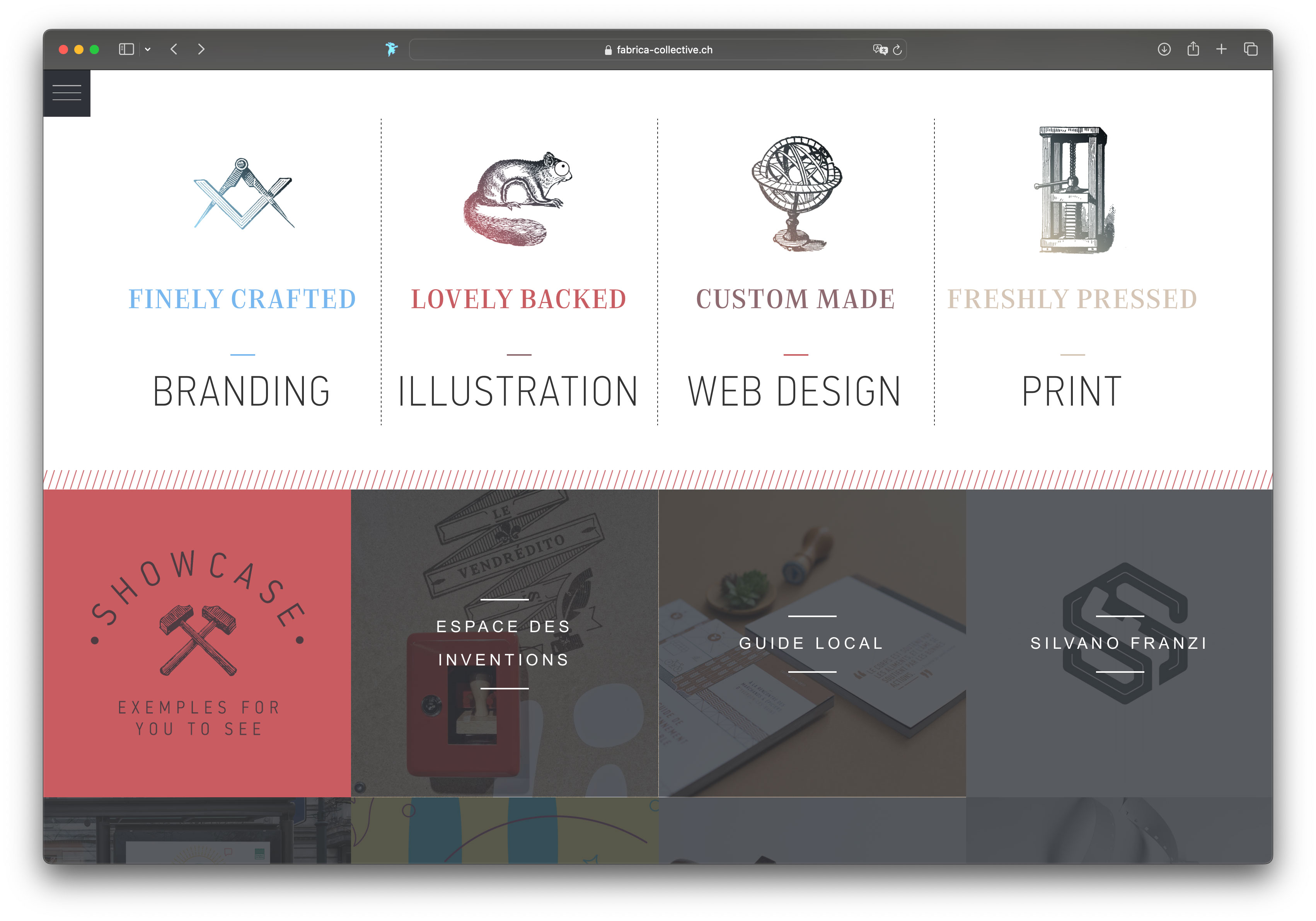 Fabrica is a creative studio with a collaborative approach based in Yverdon-les-Bains, Switzerland. Its members are active in branding, illustration, web and print design. Their own website shows a sparkling combination of fine illustrations and typography.