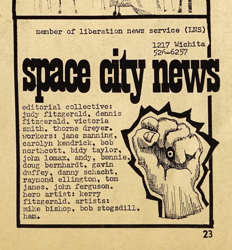 Space City News was a short-lived (1969–1972) “New Left” newspaper in Houston, Texas. It focused on the pressing issues of the time, from the Vietnam War and nationwide struggle for civil rights, to police brutality and other matters central to the revolutionary reader base of the time (akin to publications like The Great Speckled Bird and The Chicago Seed), while also spotlighting local issues and artistry.