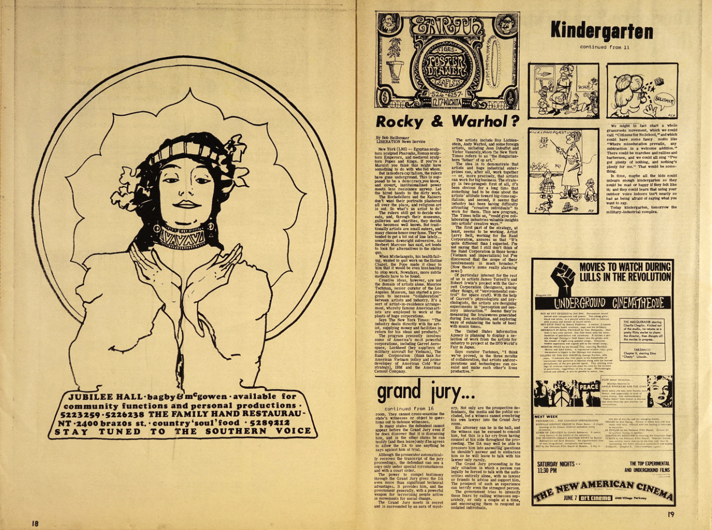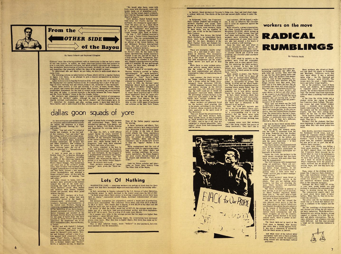 Notable stories of the first issue include William F. Buckley’s acquisition of local black Houston radio, labor strike coverage, the inadequacies of Texas State welfare program, and – the biggest story – the People’s Park uprising in Berkeley and subsequent police brutality against those protesting the University of California’s desire to turn it into a soccer field.