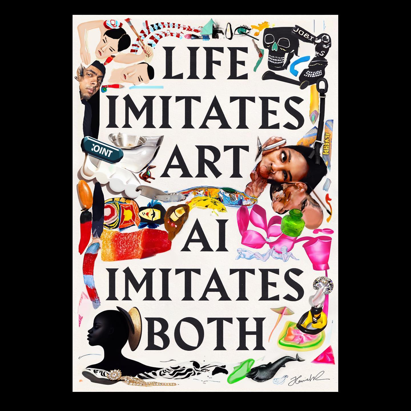 “Life imitates art, Ai imitates both” Contributed by Gareth Hague on Feb 24th, 2024. Artwork published in 2023. Source: www.instagram.com Harriet Richardson. License: All Rights Reserved. From artist Harriet Richardson: Life imitates art, Ai imitates both. I used Photoshop’s built in Ai to create the images around the print, mainly using the prompts ‘fill with art’ and ‘make art’. For the record, I prefer the Ai-less version, which is pretty much always the case. I hope I didn’t hurt its feelings Alias Harbour is used for headline type. Source: www.instagram.com Harriet Richardson. License: All Rights Reserved. Typefaces More about HarbourGet Harbour Formats Art/Illustration (503) Topics Art (4703) Designers/Agencies Harriet Richardson (1) Tagged withself-initiated projects (435)artificial intelligence (AI) (120)parody (34)all caps (7631)center-aligned text (1915)one typeface, one size (413) Artwork location United Kingdom (3294) London (1823) In SetsDesigns by Women (Fonts In Use Staff) (3597)Alias_Posters (Gareth Hague) (59)Skin (Nicole Regan) (52) Post a comment Name Email – will not be published Website Your response Submit Comment More Harbour in use Marmalade,Good Old Days & Corner Store Macklemore2017Sam BledsoeContributed by Gareth Hague Sundae School gummy sweets2021Sundae SchoolSunny Tianqing LiContributed by Gareth Hague Shit & Shine – Malibu Liquor Store artwork2020Chris ReederMick BourneContributed by Gareth Hague Sponsor More in Art CCEBA – Centro Cultural de España En Buenos Airesc. 2004Bernado + CelisContributed by Gareth Hague Staff Pick Reflections by Daniel Eatockc. 2016Daniel EatockContributed by Swiss Typefaces “A new MoMA” campaign2019TriboroContributed by David Heasty The Amazing Pattern Library2014Tim HolmanClaudio GuglieriContributed by Stephen Coles More in Art/Illustration Great Gatsby business card print2012The Heads of StateContributed by Stephen Coles Staff Pick Tigris a múzeumban2019De_FormContributed by Alex Slobzheninov Bornholm Posters, 2008–112008Mads BergContributed by Matheus Fragoso STADT.WAND.KUNST Corporate Design2020Gestaltung MannheimJuliane GutschmidtStadtWandKunstContributed by Juliane Gutschmidt More Fonts In Use Jim Fassett – Strange to your Ears: The Fabulous World of Sound with Jim Fassett album art1955unknownContributed by Bryson Stohr Staff Pick Megaloh album artwork 20202019ZentraleMartin FischerContributed by TypeMates Staff Pick Ruhrtriennale 2015c. 2015Base DesignContributed by Swiss Typefaces Staff Pick The Pleasures of Book Collecting1976unknownContributed by Stephen Coles Staff Pick