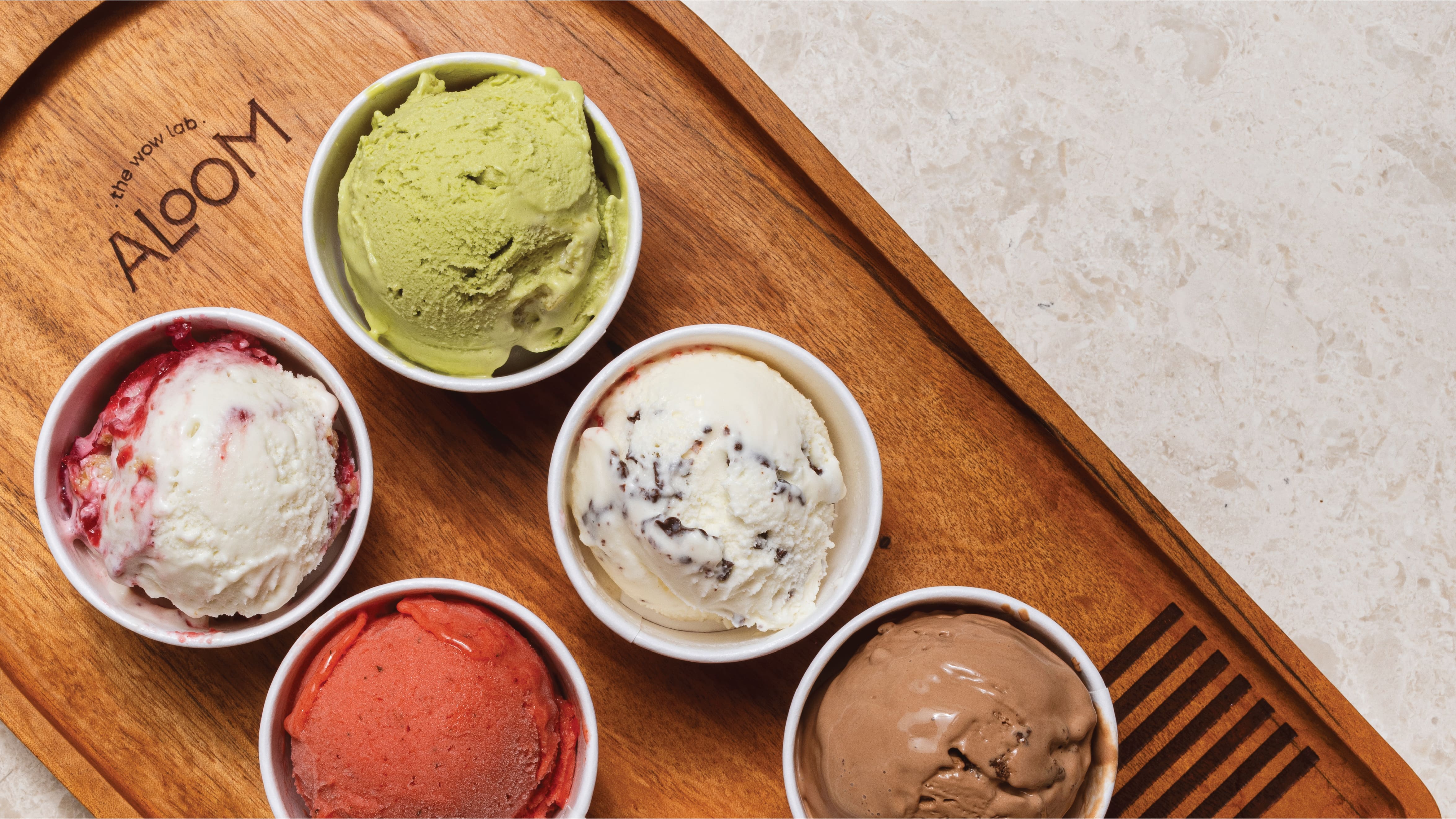 To build a unique identity for the brand, we created a palette of vibrant colors and geometric forms that recall the shapes and textures of Aloom’s desserts.