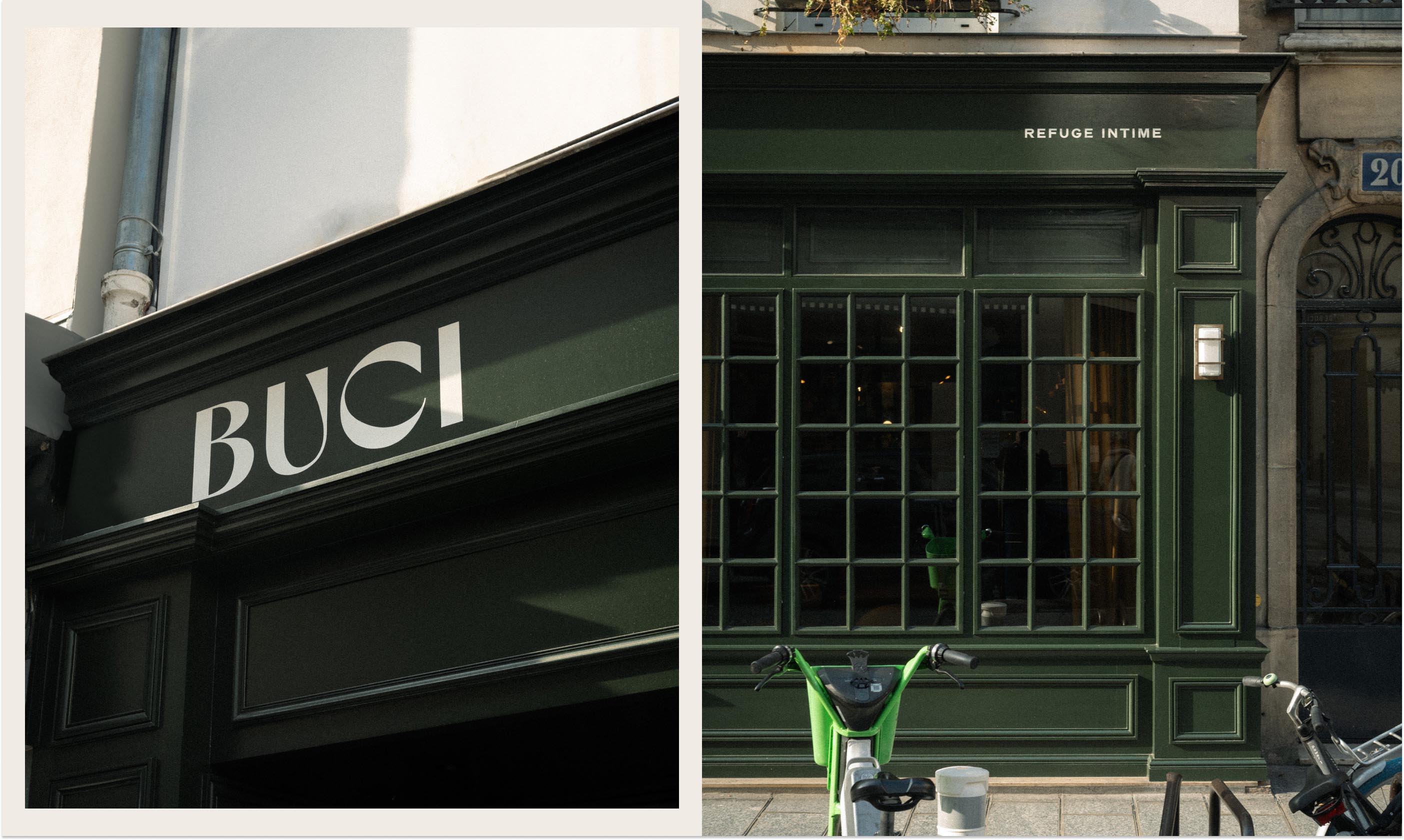 The work of our graphic designer, Arthur Alazard, was instrumental in realizing this vision, marrying visual appeal with intimate personal touches. Our collaboration with artisans like Atelier Bulk and Julien from 6 Lettres further infused our branding and space with a tangible warmth and depth. They helped ensure that every printed material and the storefront’s letter painting not only captured Au Buci’s essence but also contributed to a sensory journey that defines our space as an intimate refuge in the midst of Paris, offering a retreat that celebrates both Parisian elegance and the cozy comfort of feeling at home.