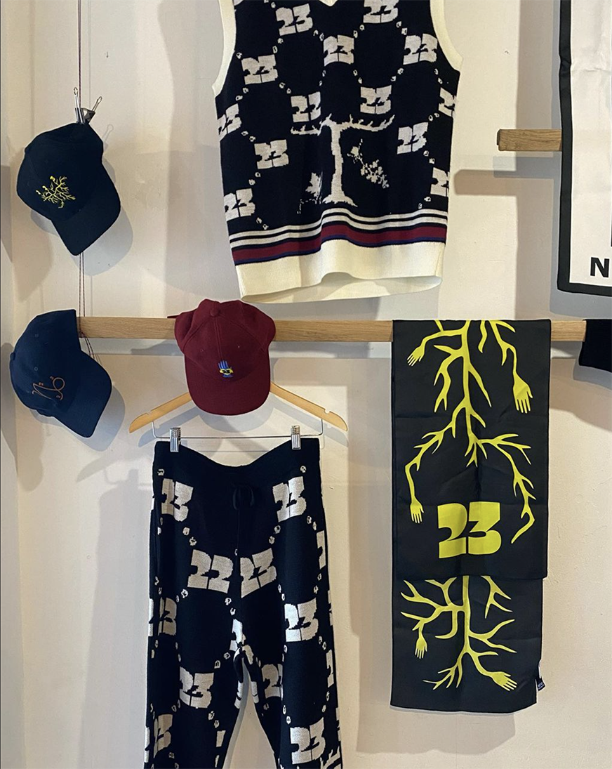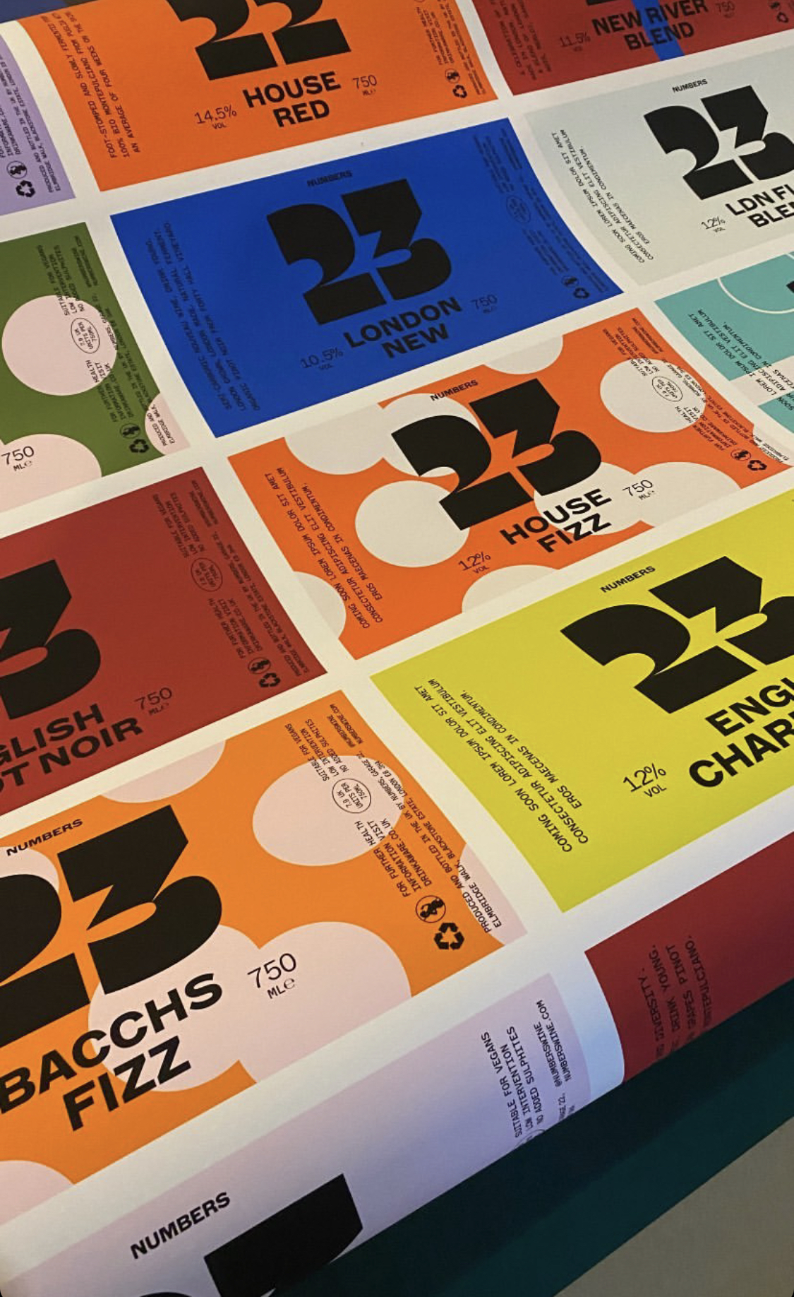 For the occasion, the team at Numbers also produced a capsule collection of branded swag: warm merino knits, a silk scarf, sporty socks, and melton wool caps. In 2022, they produced a sparkling piquette named “crazy water”, and two red wines: “House Red” and “LND FLD BLEND”. Those bottles were the first ones to be labeled with the new Numbers Identity.