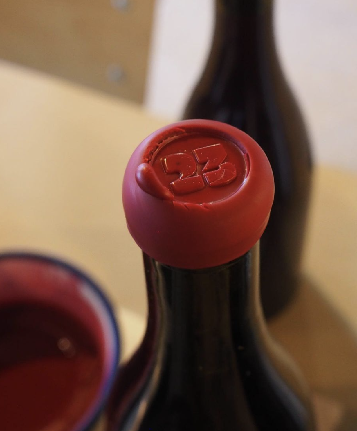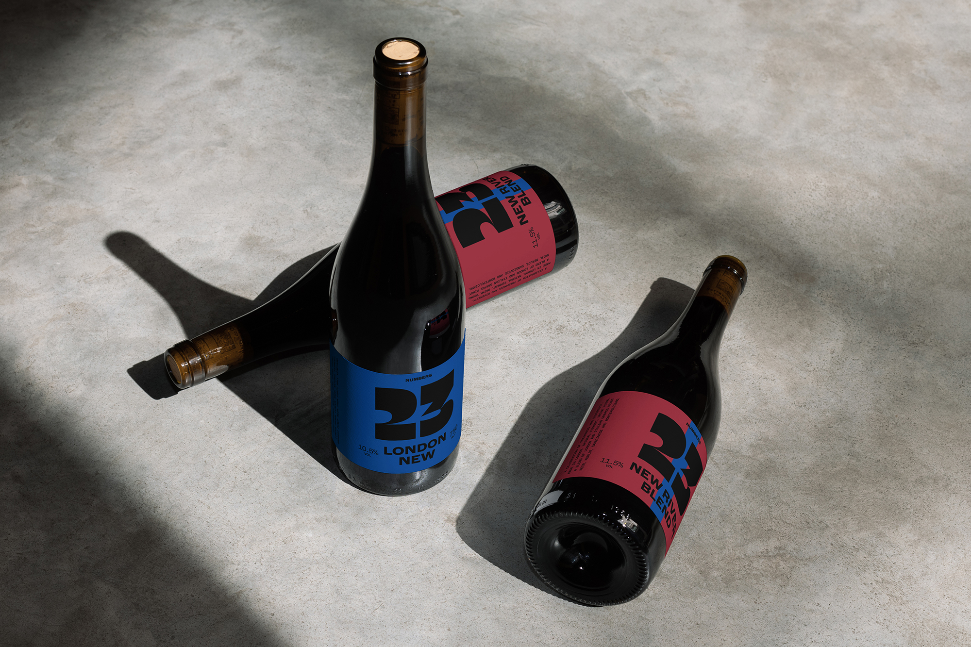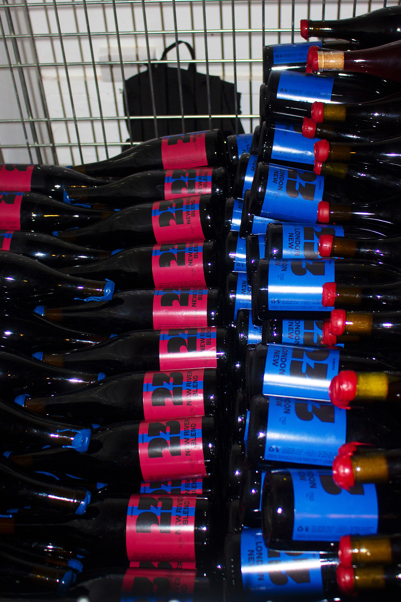 Their first party launch in November of 2023 celebrated the release of two wines, both made in the nouveau style. The first one, “23 London New” (200 bottles), is made from 100% organic Pinot Noir and is notably the first red wine grown and made in London since 1750. The second one, “23 New River Blend” (400 bottles), is a celebration of freshness and diversity, made from organic London Pinot Noir; Italian Merlot, Sangiovese, and Montelpuciano. The impactful logo, set large in Trois Mille on the label, emphasizes the vintage of the grapes. Additionally, each bottle was sealed with a wax stamp using the same numerals.