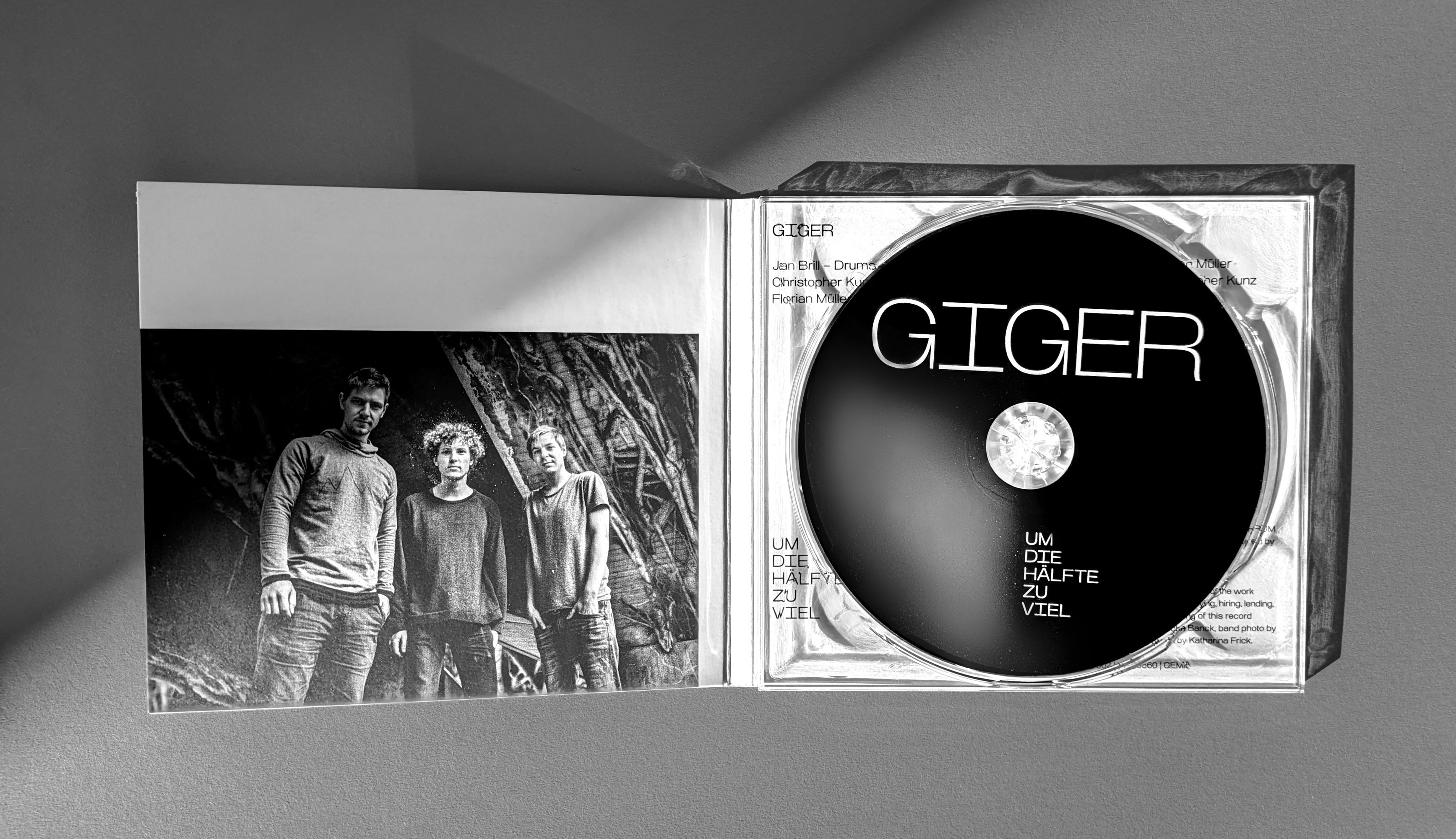 Giger – Um die Hälfte zu viel album art Contributed by Katharina Frick on Mar 25th, 2024. Artwork published in circa July 2021. Photo: Katharina Frick. License: All Rights Reserved. Um die Hälfte zu viel is a jazz album by Giger: Jan Brill (drums), Christopher Kunz (saxophone) and Florian Müller (guitar). It was released at gartenmusik, Nuremberg in October 2021. Cover image by Sascha Banck, band photo by Michael Eckstein. [More info on Discogs] Katharina Frick. License: All Rights Reserved. Photo: Katharina Frick. License: All Rights Reserved. Photo: Katharina Frick. License: All Rights Reserved. Typefaces More about OsmoseGet Osmose Formats Album Art (4126) Topics Music (6208) Designers/Agencies Katharina Frick (6) Tagged withjazz (482)compact discs (CDs) (429)CD labels (42)all caps (7396)album records (2729)back covers (2189)track listings (1214)Giger (band) (1)Gartenmusik (1) Artwork location Germany (3786) Nürnberg (69) In SetsDesigns by Women (Fonts In Use Staff) (3455) Post a comment Name Email – will not be published Website Your response Submit Comment More Osmose in use CAro Weissc. 2018Thomas MartinContributed by Blaze Type Versorgen – architectura hydraulicac. 2019Benjamin SchiefGregor MüllerContributed by Blaze Type Kibtea website2020unknownContributed by Alain Papazian Sponsor More in Music B.B. King German tour poster (1971)1971Günther KieserContributed by Garrison Martin Art Blakey and the Afro-Drum Ensemble – The African Beat album art1962Reid MilesContributed by Martin LAVIELLE Lala Lala at Garfield Park Conservatory2022Bill ConnorsContributed by Eliott Grunewald Staff Pick Young Sound – Orchester Heinz Kiesslingc. 1969unknownContributed by Kevin Yoo More in Album Art Gula – Gula album art2018Jan BleijenbergIlja FaseContributed by Jerry van Kooten Lionel Hampton – Lionel Hampton (Coronet CX 159)c. 1962Sam SulimanContributed by Stephen Coles Staff Pick Middle of The Road – “Yellow Boomerang” / “Eve” German single cover1973Photo(s) by Buro Destruct on Flickr. Traffic – John Barleycorn Must Die album art1970Mike SidaContributed by Fonts In Use Staff More Fonts In Use Solidarisiert Euch! / Stand in Solidarity! exhibition2023Visual IntelligenceContributed by Florian Hardwig Staff Pick Cruise Ship Misery by Brutto Inland Netto Super Clean2024Matthias HofmannContributed by Nouvelle Noire Staff Pick Biblioteca Áurea2018Rafael NobreContributed by Rafael Nobre Staff Pick Récolte2017Jean-Philippe BretinContributed by Bretin Jean-Philippe Staff Pick
