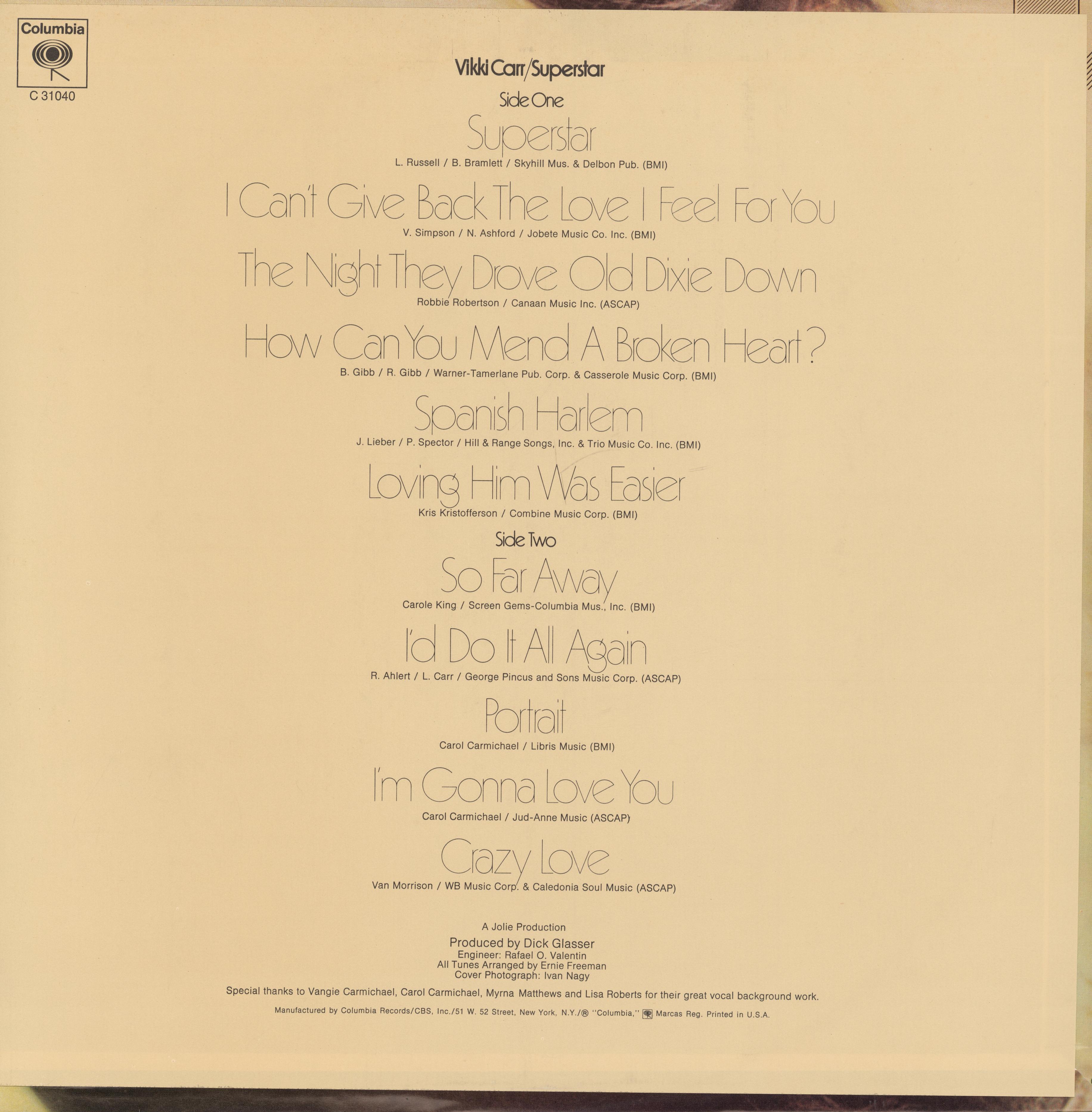 Vikki Carr’s Superstar is one of the four(!) albums the singer released in 1971.