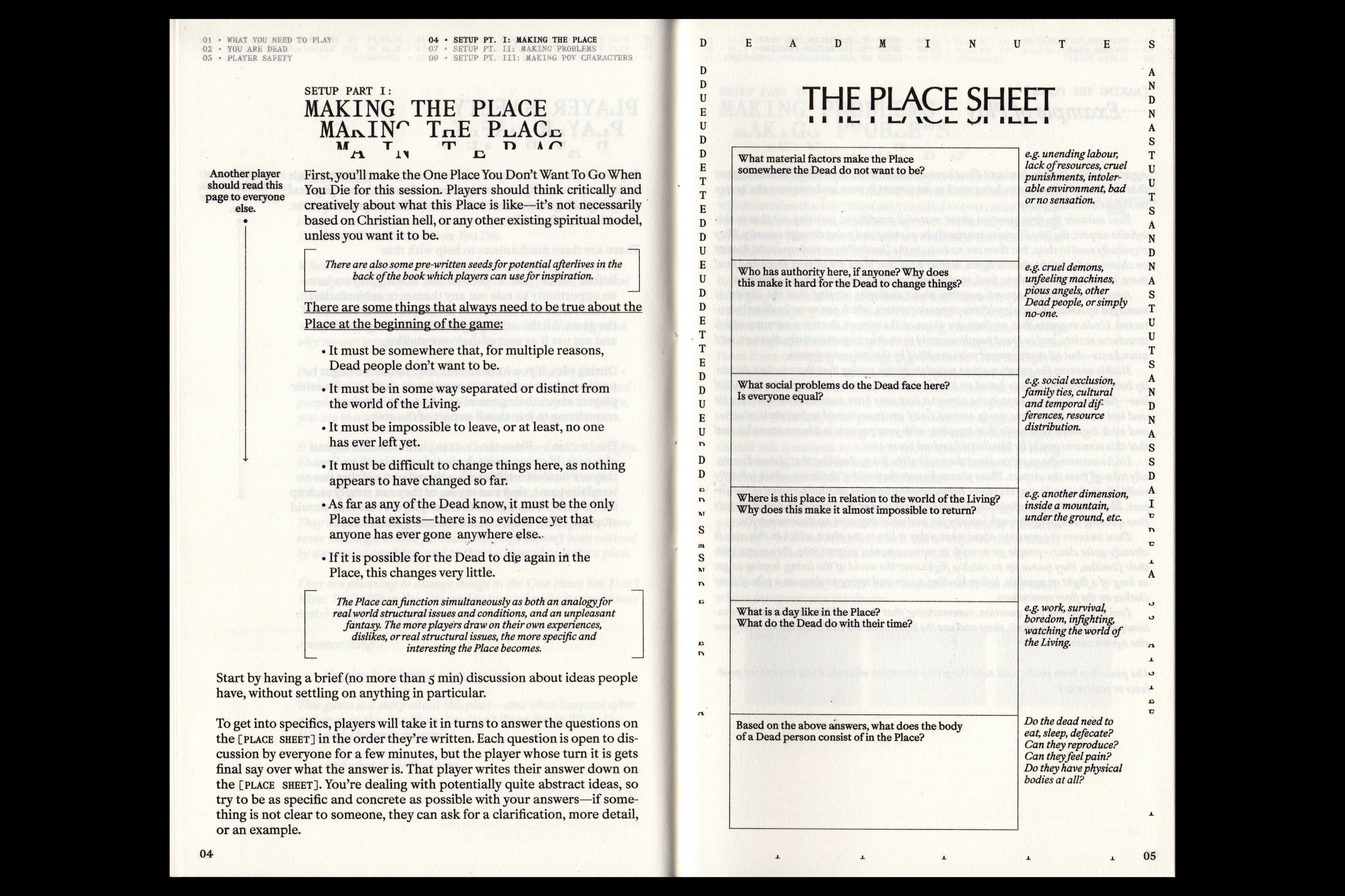 This book contains the instructions you need to play the game, an essay by artist and theorist Patricia Reed, and a series of invented afterlives by writers Chris Beckett, Habib William Kherbek, Samuel Clarice Mui Shen Ern and Selma Selman.