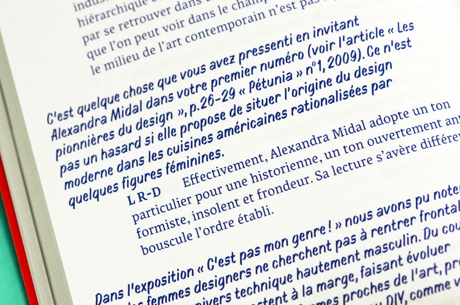 The exhibition C’est pas mon genre! About Women: Design from France shows the emergent trends of French contemporary design and questions the complex and various links between design and women. Graphic designers Lionel Catelan and Bastien Bouvier have designed the accompanying catalogue in 172 pages, using Jaakko AND the seven members of the Coline family all together in a lively dialogue.