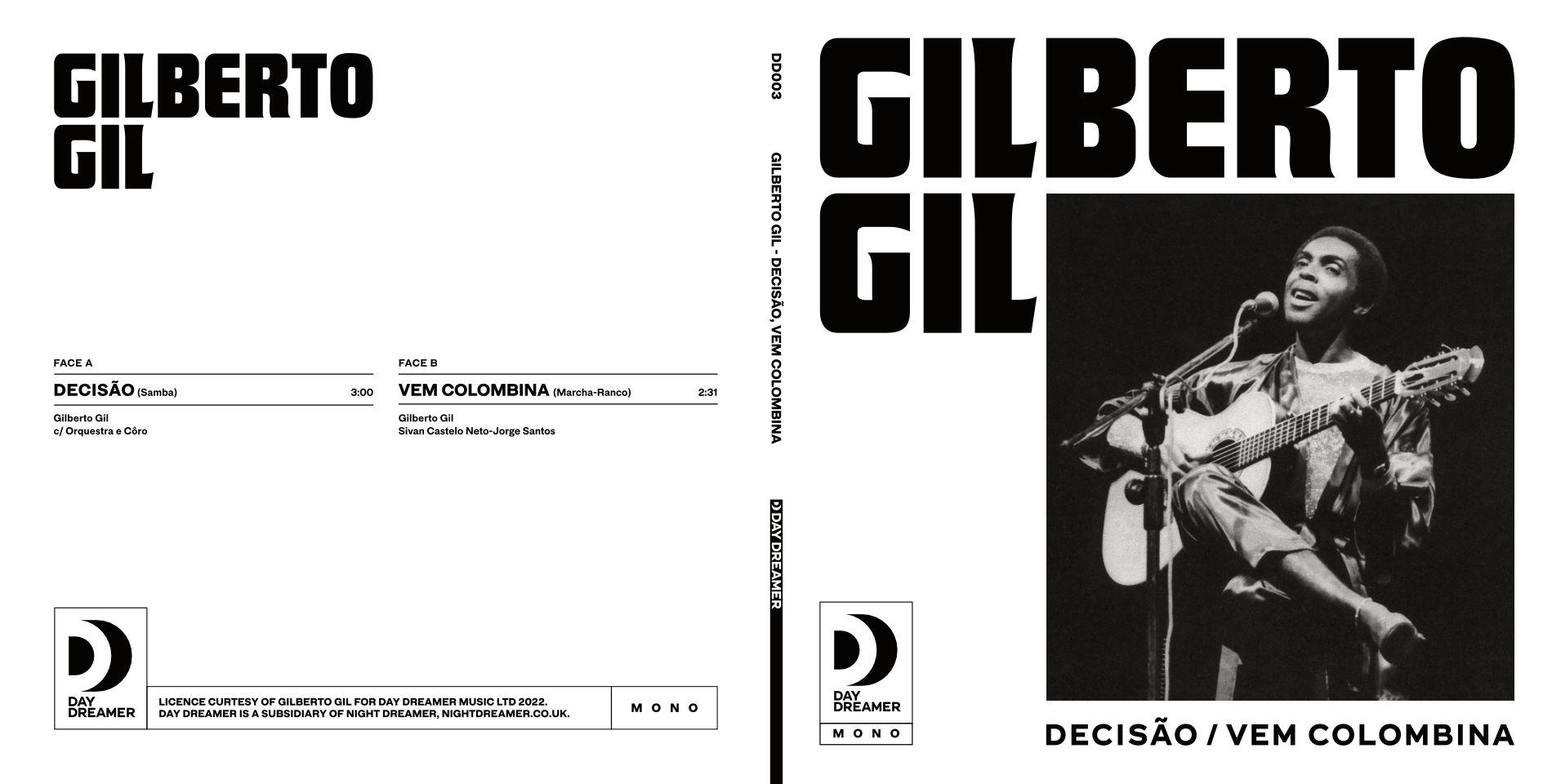 Brazilian legend Gilberto Gil’s debut 1962 recordings “Desicão” / “Vem Colombina” restored and reissued on 7″ vinyl for the first time by Day Dreamer Records: