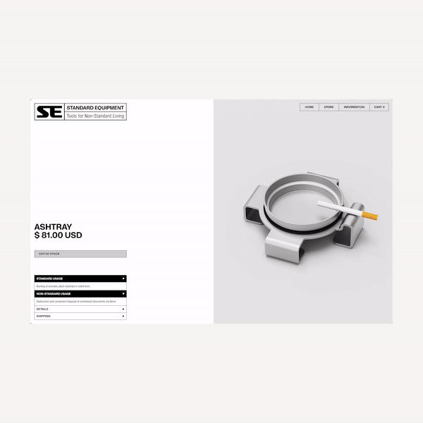 Standard Equipment Contributed by Michael Clasen on Jun 18th, 2024. Artwork published in circa 2024. Standard Equipment. License: All Rights Reserved. Standard Equipment offers tools for non-standard living: All products are components of a unified system to transform one’s domestic spaces into environments that cultivate positive emotional states. The presence of the letter ‘S’ and ‘E’ on commercial products denote a registered corporation that designs and fabricates tools for living. The branding and website were designed by newkid using Apparat and Waldenburg. Standard Equipment. License: All Rights Reserved. Source: www.standardequipment.ca Standard Equipment. License: All Rights Reserved. Standard Equipment. License: All Rights Reserved. Source: www.standardequipment.ca Standard Equipment. License: All Rights Reserved. Standard Equipment. License: All Rights Reserved. Standard Equipment. License: All Rights Reserved. Standard Equipment. License: All Rights Reserved. Standard Equipment. License: All Rights Reserved. Standard Equipment. License: All Rights Reserved. Standard Equipment. License: All Rights Reserved. Standard Equipment. License: All Rights Reserved. Standard Equipment. License: All Rights Reserved. Standard Equipment. License: All Rights Reserved. Standard Equipment. License: All Rights Reserved. Standard Equipment. License: All Rights Reserved. Typefaces More about WaldenburgGet WaldenburgMore about ApparatGet Apparat Formats Web (5778) Packaging (2516) Branding/Identity (8715) Mobile/Tablet (1052) Topics Product (2176) Home/Interior (850) Retail/Shopping (1141) Industrial Design (609) Designers/Agencies newkid (3) Tagged withfurniture (232)tools (31)modular (12)product design (123)brands (1566)logos (5193)websites (3713)mobile (620)type in a box (728)menus (UI) (597)grids (327)business cards (1563)embossed/debossed (650)packaging (955)boxes (567) Artwork location Canada (836) Toronto (195) In Setskimera (Michael Clasen) (50)2+ typefaces by 1 designer (Florian Hardwig) (1167)Identity (miguel anønimo) (383)TH (Mauro Soriano) (36)bb (Leonardo de la Fuente) (1331)design (Jin Yan) (7) Post a comment Name Email – will not be published Website Your response Submit Comment More Waldenburg in use Jonathan Bockelmann – Childish Mind album art2023Maximilian SchachtnerValentine CascailhContributed by Sabrina Baumann (kimera) Threshold 2012–2022c. 2023Lynn RubergFabian WeinsContributed by Michael Clasen Festival der jungen Talente 2000–20222022Katharina LandischContributed by Katharina Landisch Sponsor More in Industrial Design Death to Design! Long Live Design! Exhibition2011SilvadesignersContributed by Tânia Raposo GQ magazine, Manual section (c. 2005–2009)c. 2006Anton IoukhnovetsContributed by David Heasty Staff Pick Profiler2022Kairos StudioSebastian VargasThomas ProstContributed by WELTKERN® Typefaces Historia del diseño en América Latina y el Caribe2008Fabián GoyaCarlos VenancioMarcaContributed by PampaType Team More in Branding/Identity Museumsinsel Berlin (Museum Island)PolyformContributed by Stephen Coles Staff Pick Poseidon Aerospace2025Piotr StalaContributed by Piotr Stala Aleviac. 2012GrapefruitContributed by Stephen Coles MICA (Maryland Institute College of Art) identity2007PentagramAbbott MillerKristen SpilmanContributed by Stephen Coles Staff Pick More Fonts In Use Roughmen promo poster2016Emanuel WiemansContributed by Florian Hardwig Staff Pick Fafhrd & The Gray Mouser book series by Fritz Leiber (Ace)c. 1968Jeff JonesContributed by Florian Hardwig Staff Pick “For Concrete Construction” F. Bradford & Co Ltd ad1945unknownPhoto(s) by mikeyashworth on Flickr. Staff Pick Heritage: A User’s Manual2016BondContributed by Richard Baird Staff Pick