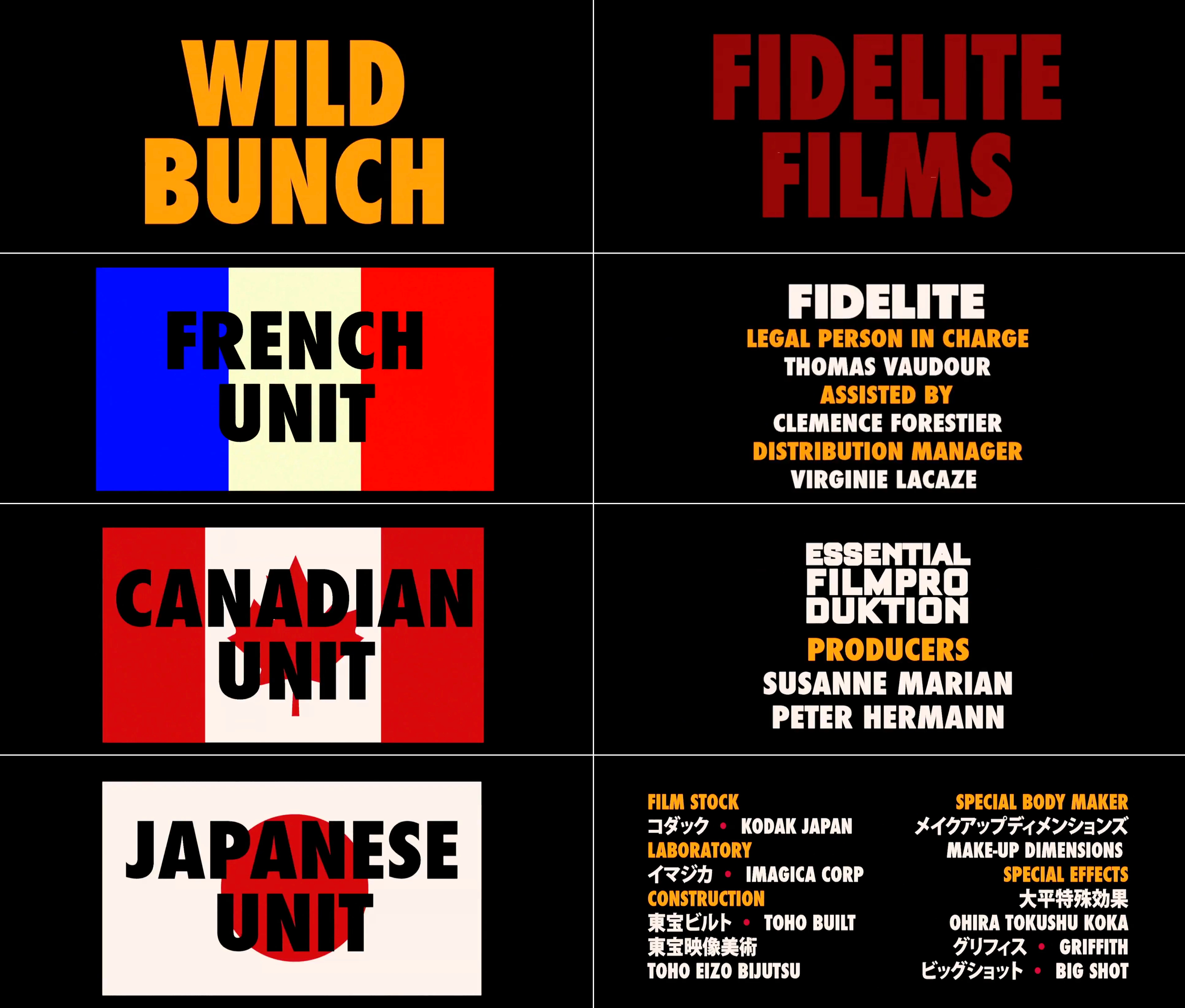 In addition to Futura Extra Bold Condensed, the logos of the production and distribution companies feature Euphoric (Wild Bunch) and Futura Extra Bold (Fidelité).