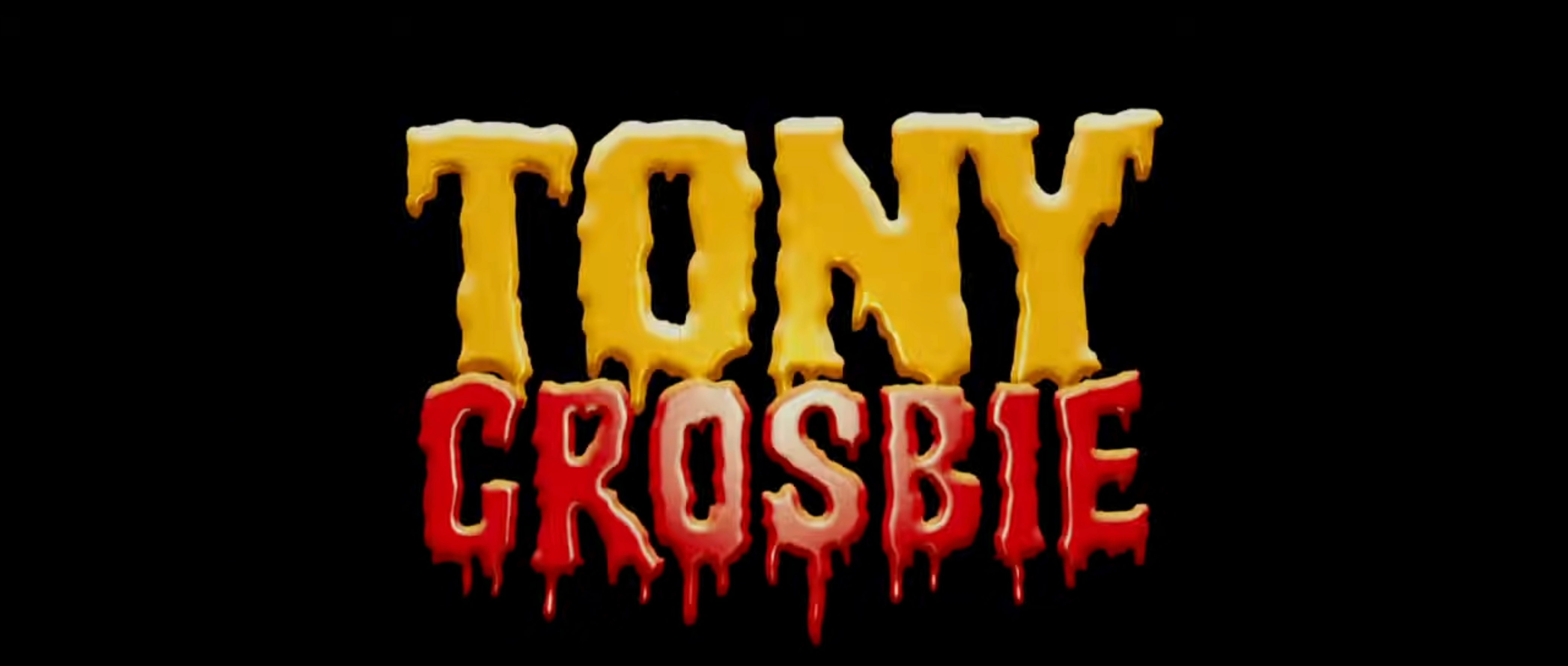 The dripping letters for Tony Crosbie appear to be custom(ized) – Shlop is a similar ready-made font.