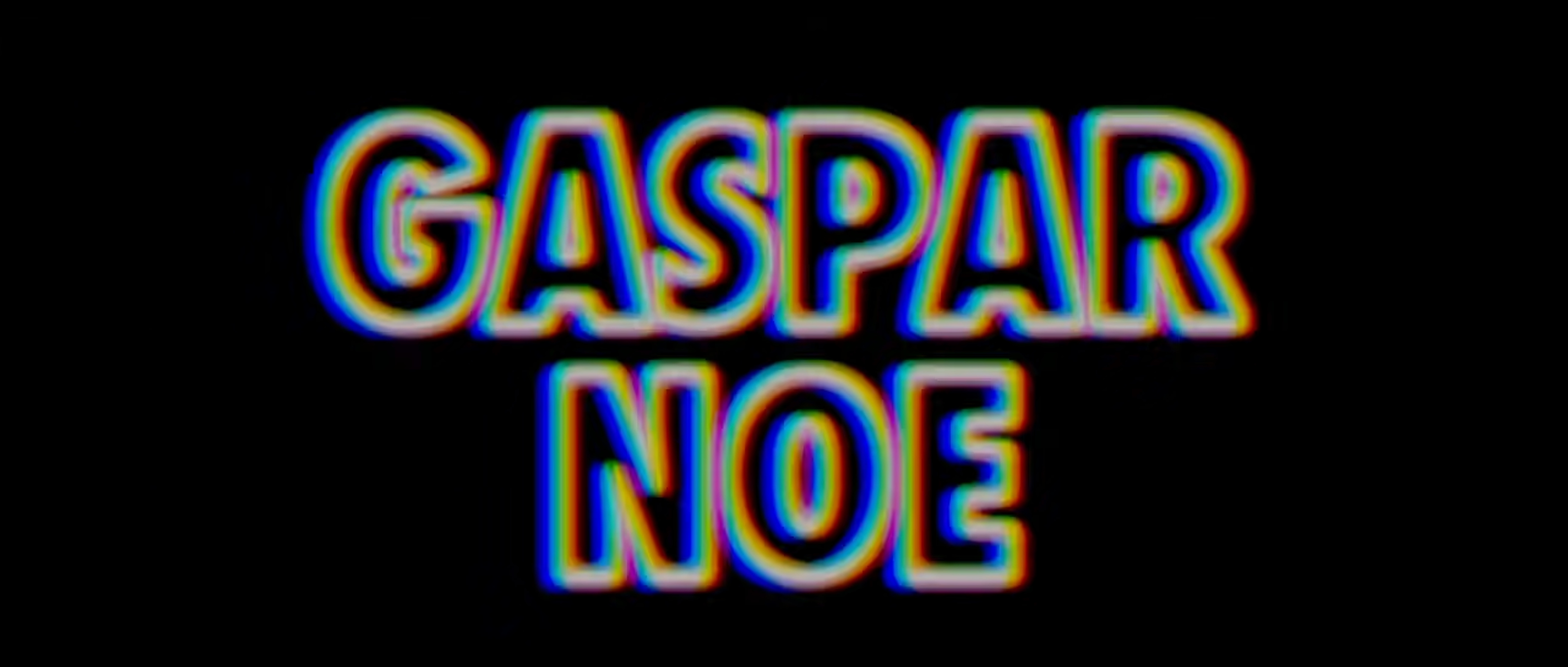 Gaspar Noé in outlined caps from Futura Extra Bold Condensed, without accent on the E