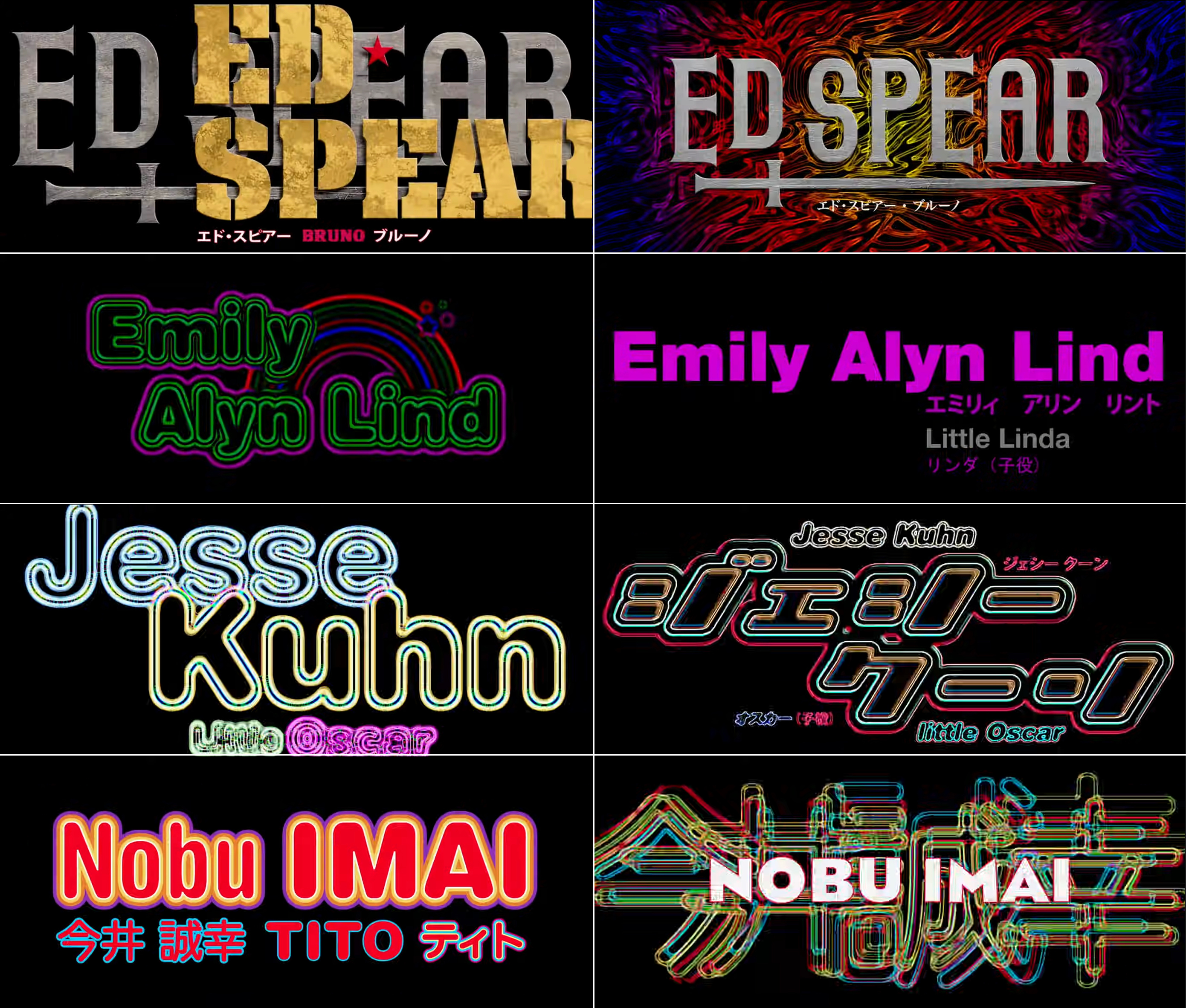 Futura Extra Bold Condensed in all caps is the primary typeface for the credits. Here it’s used in combination with Kozuka Gothic for Japanese, alongside some logos.