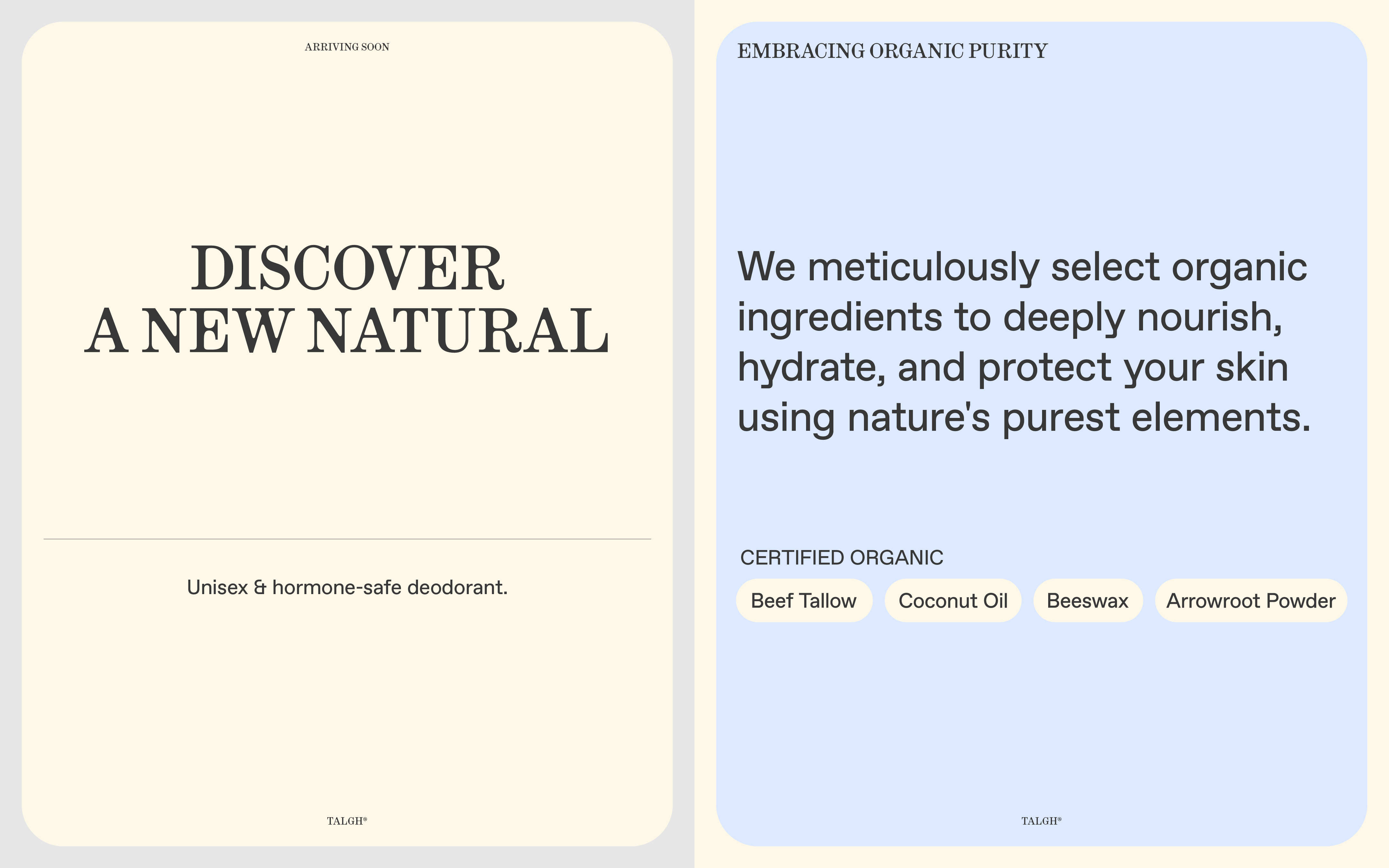 Talgh redefines luxury and unisex self-care through a seamless blend of nature and innovation. Inspired by the historical use of beef tallow and modern skincare science, the brand honors the past while embracing the future.