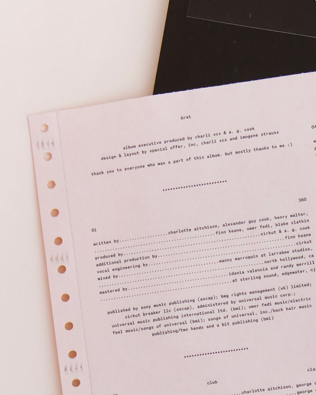 What is the typewriter font on the liner notes?