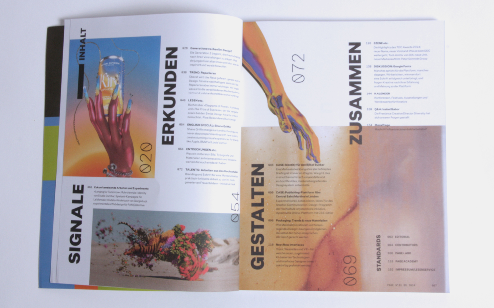 Lisa Fischbach’s expressive Edie & Eddy collection with its elegant italics and Moritz Kleinsorge’s versatile Allrounder Grotesk and Mono are the hallmarks of PAGE magazine’s new look. From the grid to the use of imagery and typography, everything in the magazine has been rethought to give the layout more lightness, space and freedom.