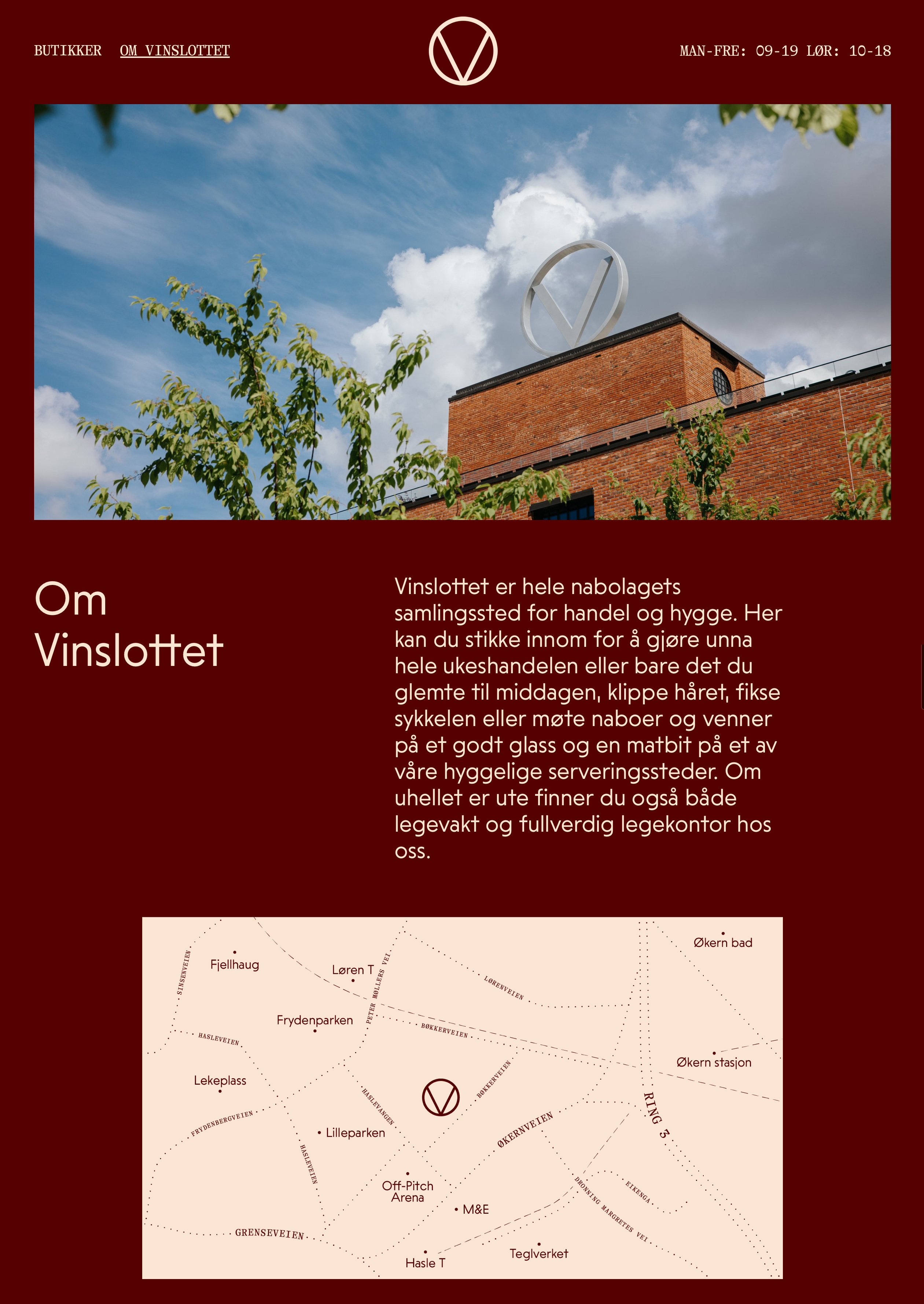 Vinslottet Oslo Contributed by Store Norske Skriftkompani on Aug 24th, 2024. Artwork published in 2024. Source: www.vinslottet.no License: All Rights Reserved. We Oslo has redesigned the website and identity for Vinslottet. Vinslottet is the former Norwegian Wine Monopoly’s factory transformed into a district and shopping centre. The identity uses Alpina Typewriter from GrilliType, and Store Norske Tango from Skriftkompani. Source: www.vinslottet.no License: All Rights Reserved. Source: www.vinslottet.no License: All Rights Reserved. Source: www.vinslottet.no License: All Rights Reserved. Source: www.vinslottet.no License: All Rights Reserved. Source: www.vinslottet.no License: All Rights Reserved. Source: www.vinslottet.no License: All Rights Reserved. Source: www.vinslottet.no License: All Rights Reserved. Source: www.vinslottet.no License: All Rights Reserved. Source: www.vinslottet.no License: All Rights Reserved. Source: www.vinslottet.no License: All Rights Reserved. Typefaces More about Store Norske TangoGet Store Norske TangoMore about GT Alpina TypewriterGet GT Alpina Typewriter Formats Web (5619) Signs (2143) Branding/Identity (8446) Topics Social Media (267) Food/Beverage (3057) Retail/Shopping (1107) Local (1571) Designers/Agencies We Oslo (1) Tagged withNorwegian (language) (156)wine (231)shopping (33)shopping centers (10)restaurants (481)brown (189)websites (3562)social media (1089)logos (4993)type on a circle (868)monospaced (1237) Artwork location Norway (304) Oslo (177) In SetsThe Endangered Unrulies (Justyna Stawida) (6)Napur's Type Inspiration (meimred) (27) Post a comment Name Email – will not be published Website Your response Submit Comment More Store Norske Tango in use Nå Hører Dere Oss2024Studio MothershipContributed by Store Norske Skriftkompani Lumens2022Studio DumbarMarten KuipersMaxwell NiblockContributed by Store Norske Skriftkompani Nord Norsk Kunstmuseum logo and website2025ANTIContributed by Store Norske Skriftkompani Sponsor More in Social Media Alain Badiou – Sometimes, We Are Eternal2019Lukáš KijonkaMichal KrůlKolektiv StudioContributed by kolektiv.studio Extinction Rebellionc. 2019ESPExtinction RebellionContributed by Fonts In Use Staff Food Society2021Studio TripleAtelier AAAAAContributed by Jérémy Landes (Studio Triple) Staff Pick Contents Magazine2012Ethan MarcotteContributed by Patch Hofweber More in Branding/Identity Transmission Roundhouse2019OnlyContributed by Only The Governors Ball 2023 brand identity2023Founders EntertainmentContributed by Jamie Otelsberg (OH no Type Co.) Memphis River Parks Partnership2018The Original Champions of DesignJennifer KinonTalia CottonContributed by Ciarán Staff Pick raye the store 08, Beauty Edition2023Studio BöreckContributed by Studio Böreck Staff Pick More Fonts In Use Wright’s Ferry Mansion2024Bom BomContributed by Adam Taylor Staff Pick Llibre Verd València2025Fase StudioContributed by Fase Studio Staff Pick Metronomy – The English Riviera album art2011Joseph MountAaron LarneyContributed by Florian Hardwig Staff Pick RCA School of Architecture folios 2019c. 2019Studio ArdContributed by Robert Huber Staff Pick
