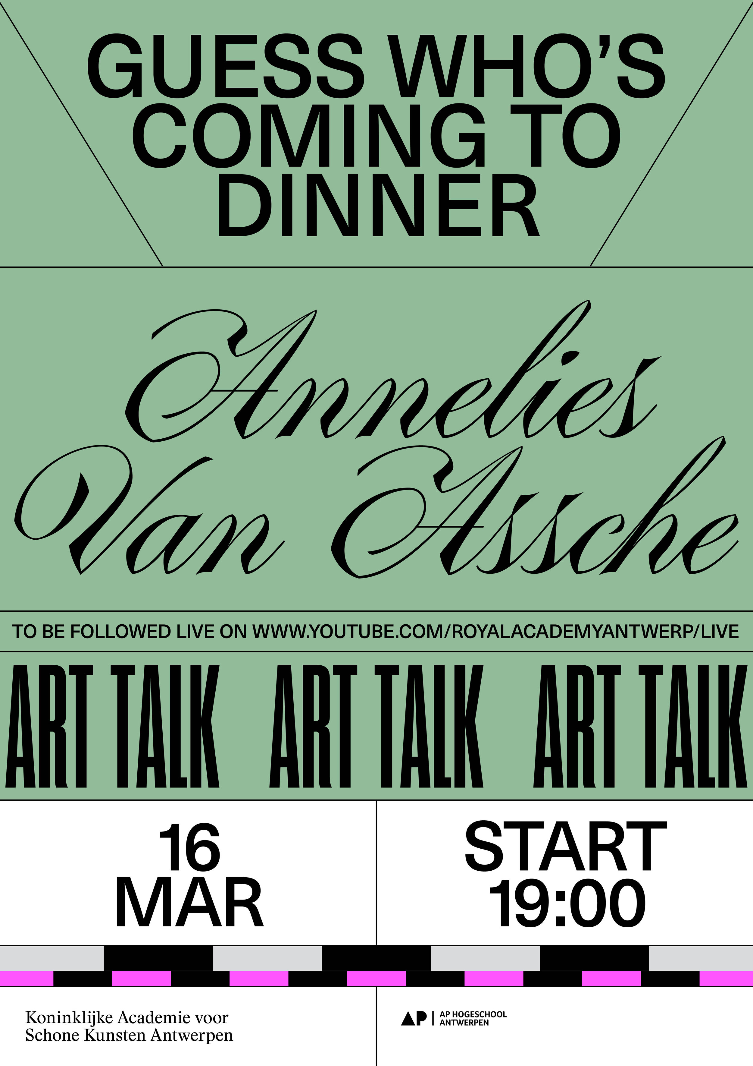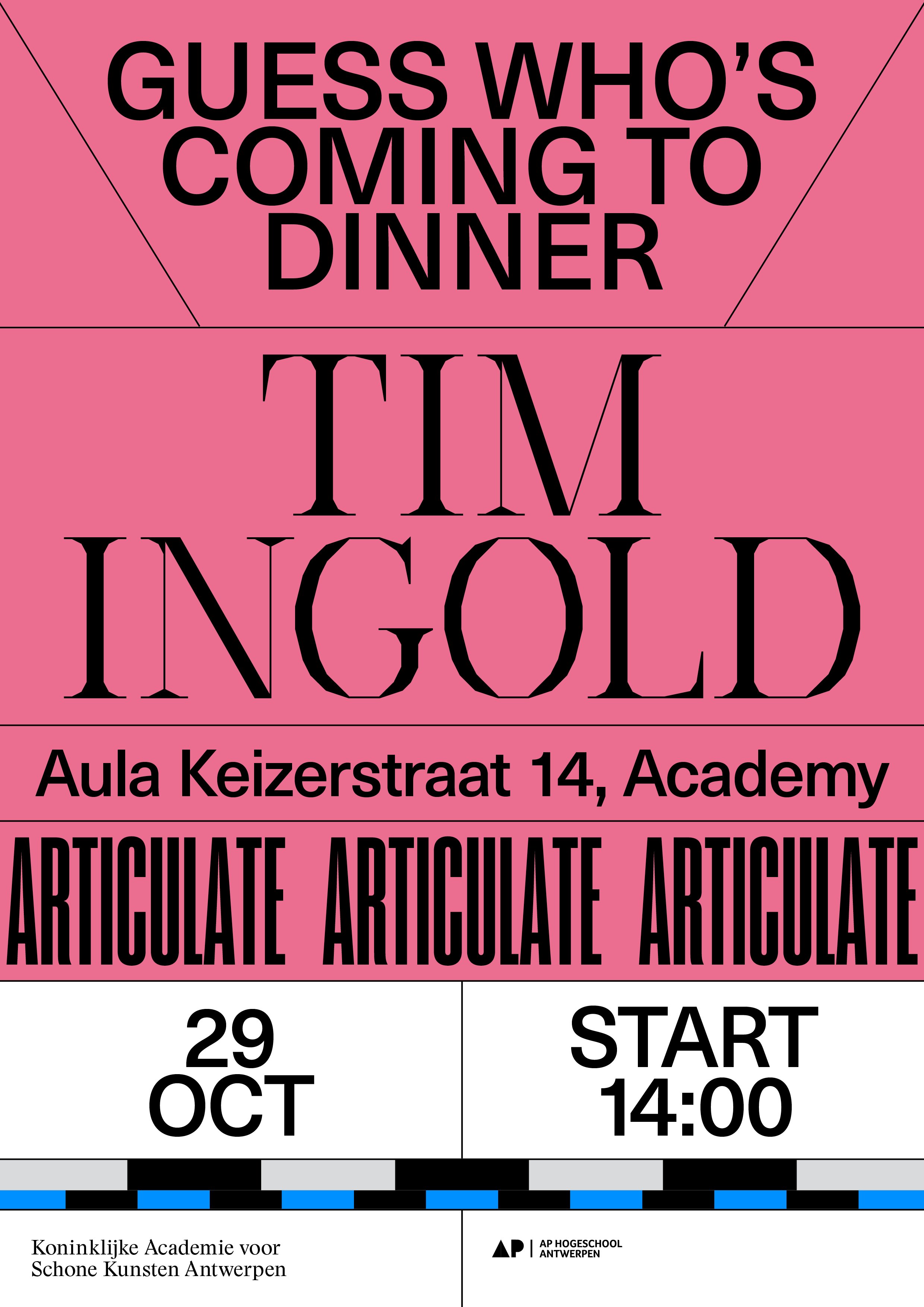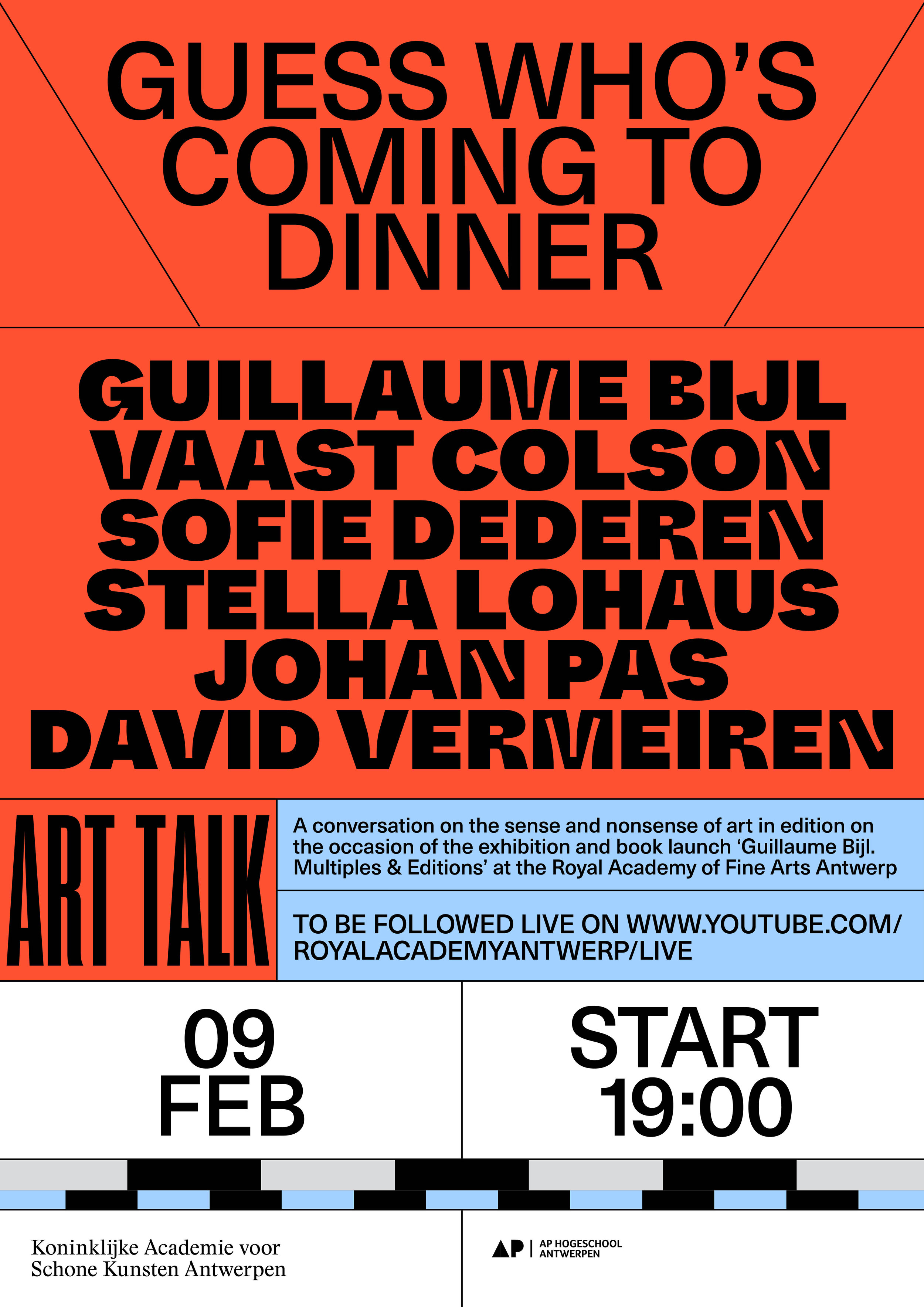 “Guess Who’s Coming to Dinner” is a talk series held at the Royal Academy of Fine Arts Antwerp. Since 2019, it has been hosting public lectures, debates, and book presentations, with Tim Ingold and Victoria Browne among their guests.
