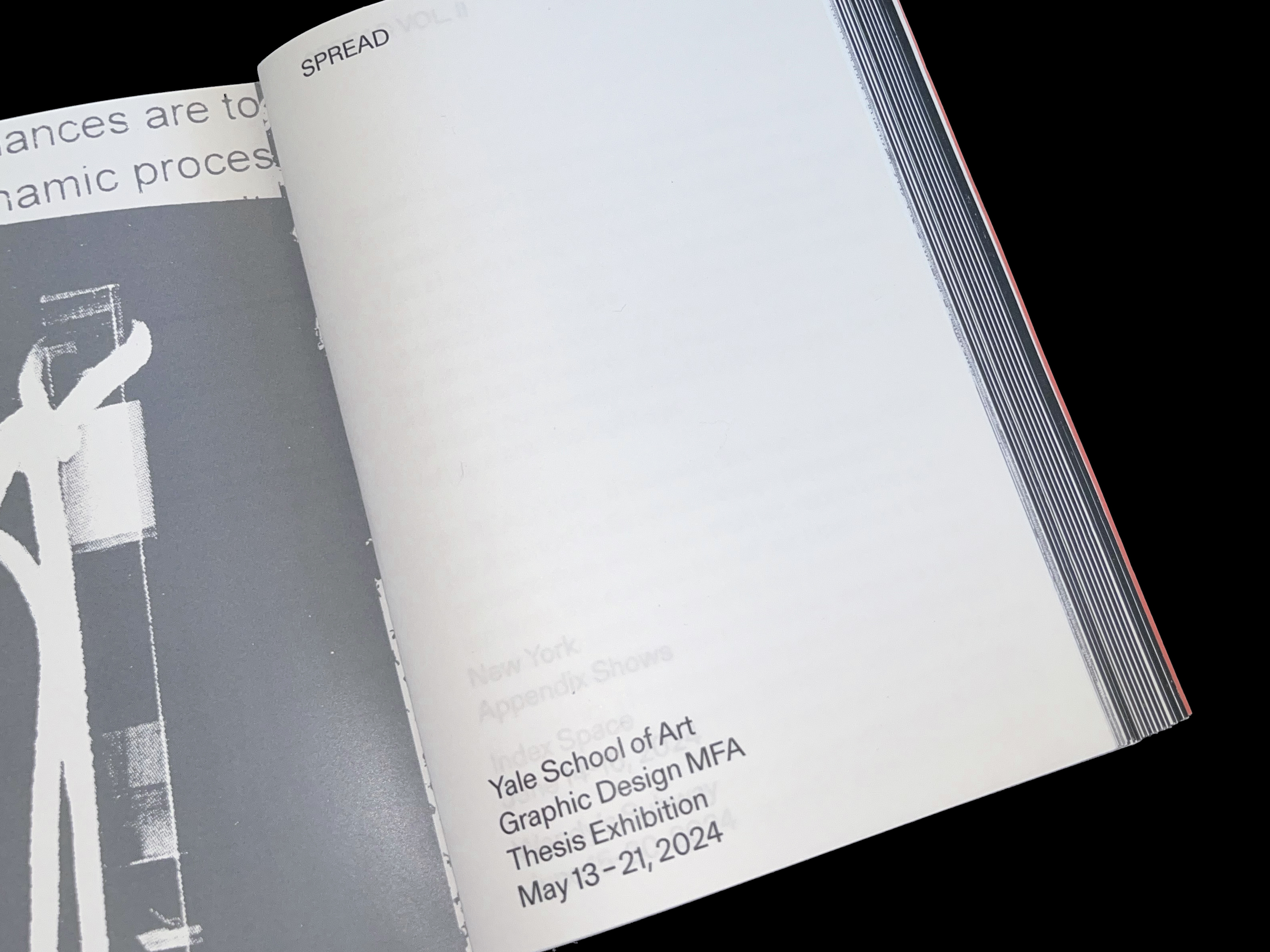 SPREAD – the Yale GD ’24 thesis catalog – features works by the 2024 MFA candidates in Graphic Design from the Yale School of Art. In addition to excerpts from and full descriptions of each candidate’s thesis book, the catalog includes photographic documentation of the 2024 cohort’s thesis exhibition, SPREAD – and associated programming – at the Yale School of Art in New Haven, Connecticut.