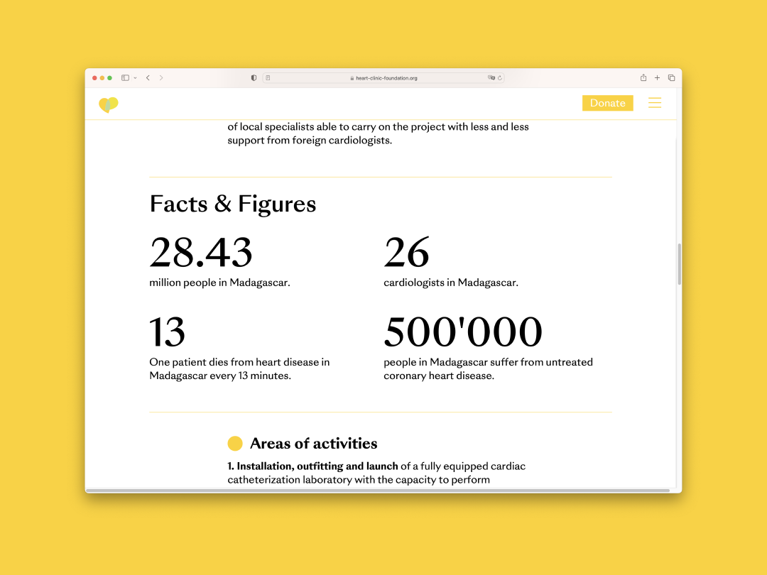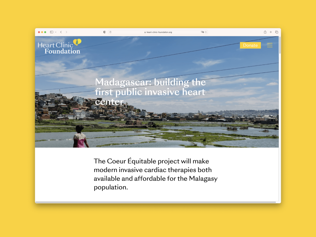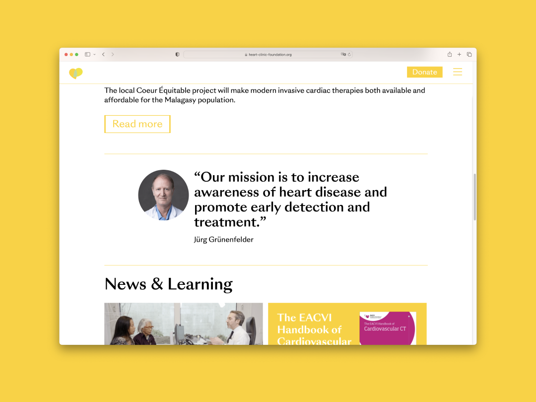 Branding and web design for the new cardiology foundation of the Hirslanden Heart Clinic in Zurich for its 10th anniversary. It is dedicated to education, innovation and humanitarian work in developing countries.