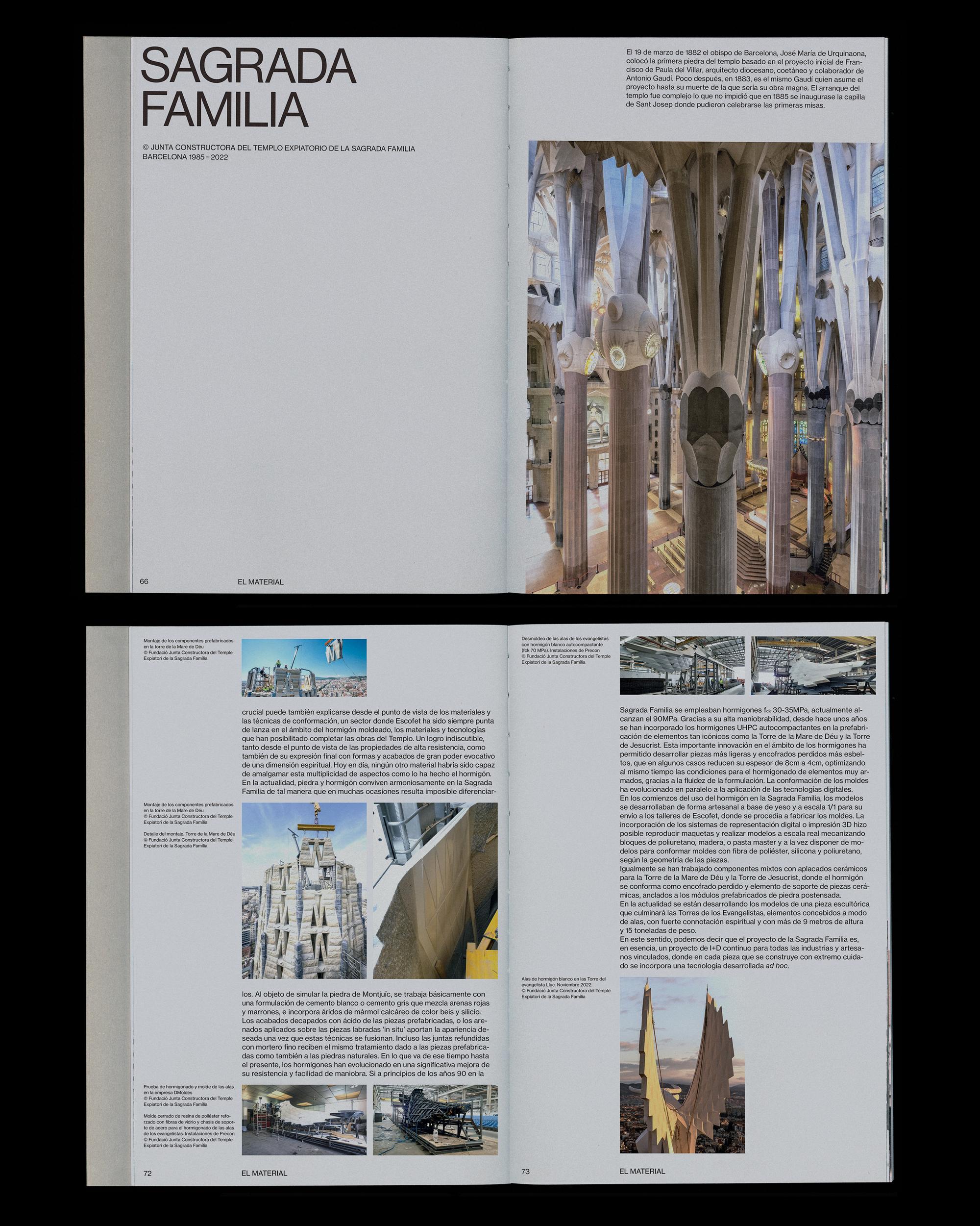 The design avoids ornamentation in favor of precision. Photographs, drawings, and text are orchestrated with deliberate restraint, creating a rhythm that guides readers through Escofet’s legacy without overshadowing it. The result is a publication that reads as both a historical document and an interpretive object – one that allows the material’s quiet force to emerge through structure, scale, and visual balance.