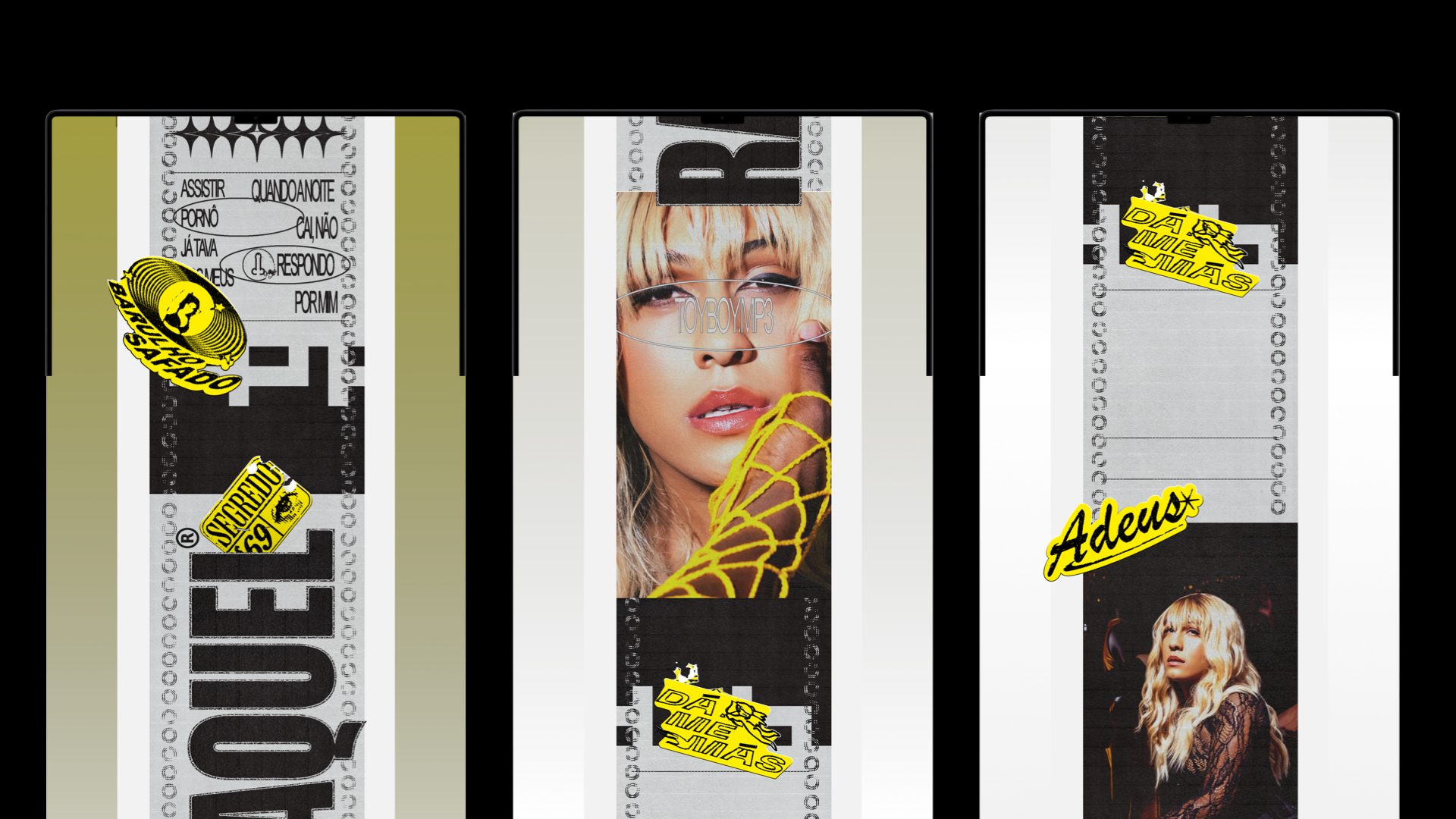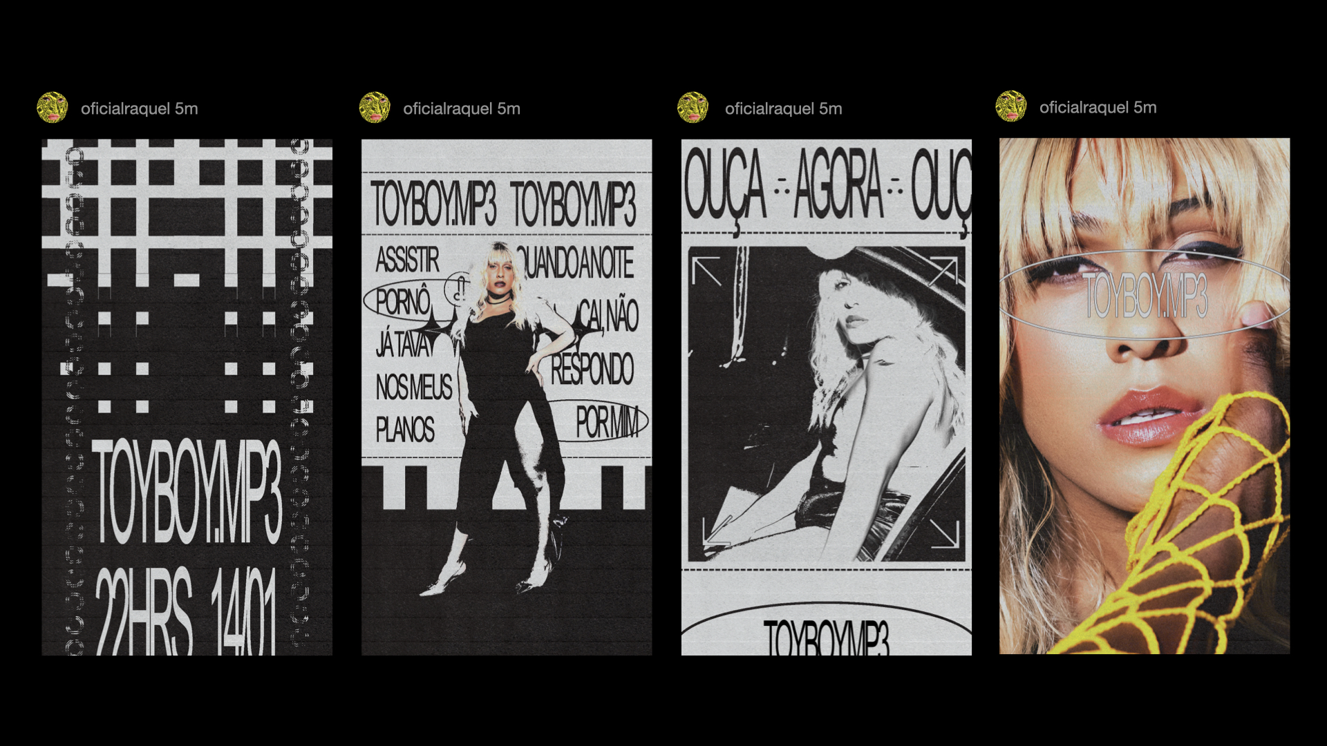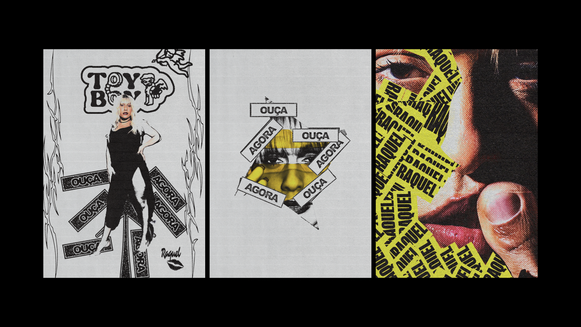 The project applications ranged from the creation of Raquel’s logo and stickers for each song, to the creation of posters, posts on social media, art direction for Raquel’s motion and “consumption” music video, digital invitations, banners, merchandising, album cover, website and more.