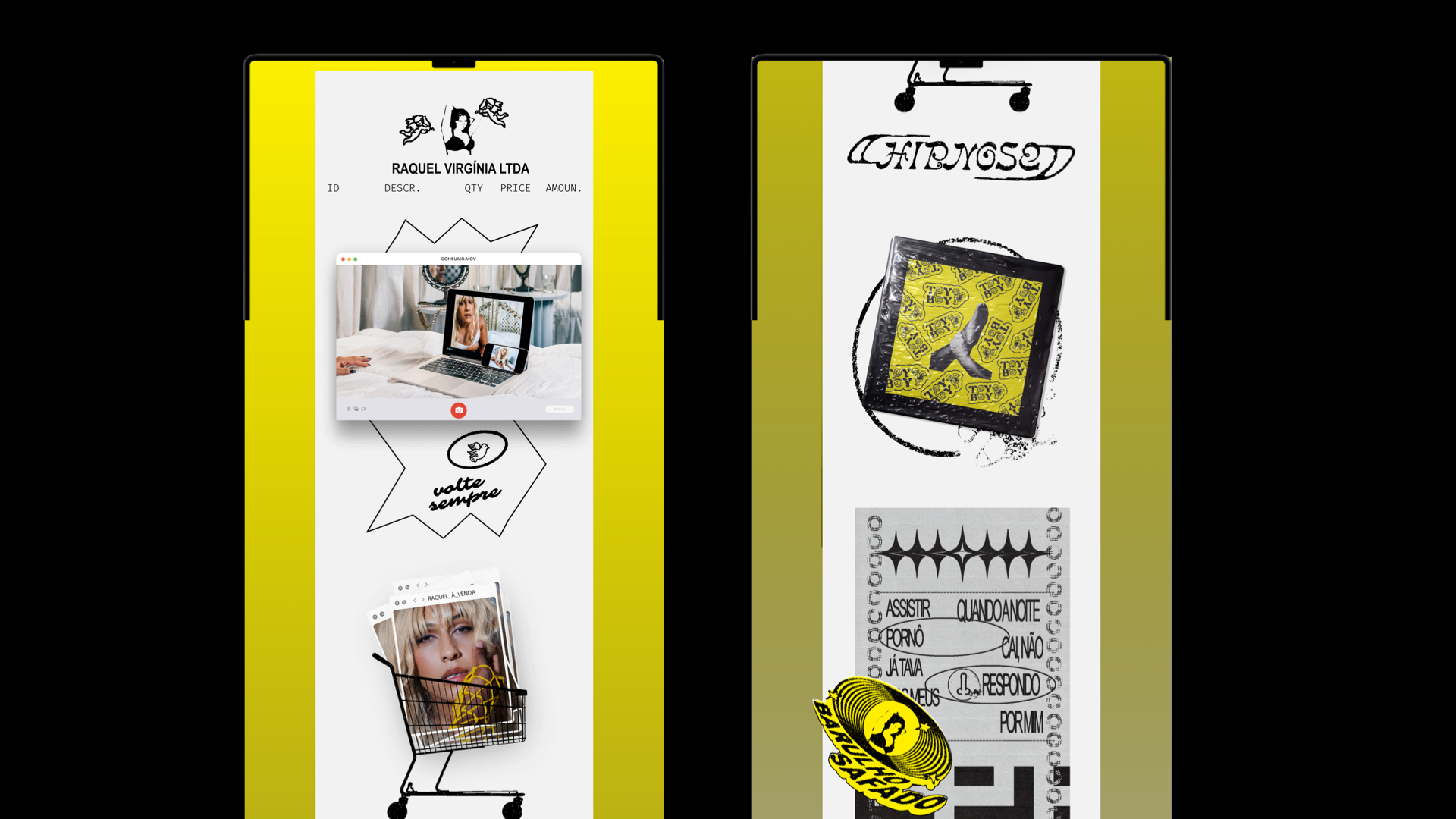 Raquel brought us a challenge in 2023 to release her new album Raquel à Venda starting her solo career. Her entire album revolves around contemporary consumer relations. Where the vernacular and material meets the digital. Where the body is put up for sale over and over again, just like casual and romantic relationships. The album is a mockery of sales languages linked to human relationships.