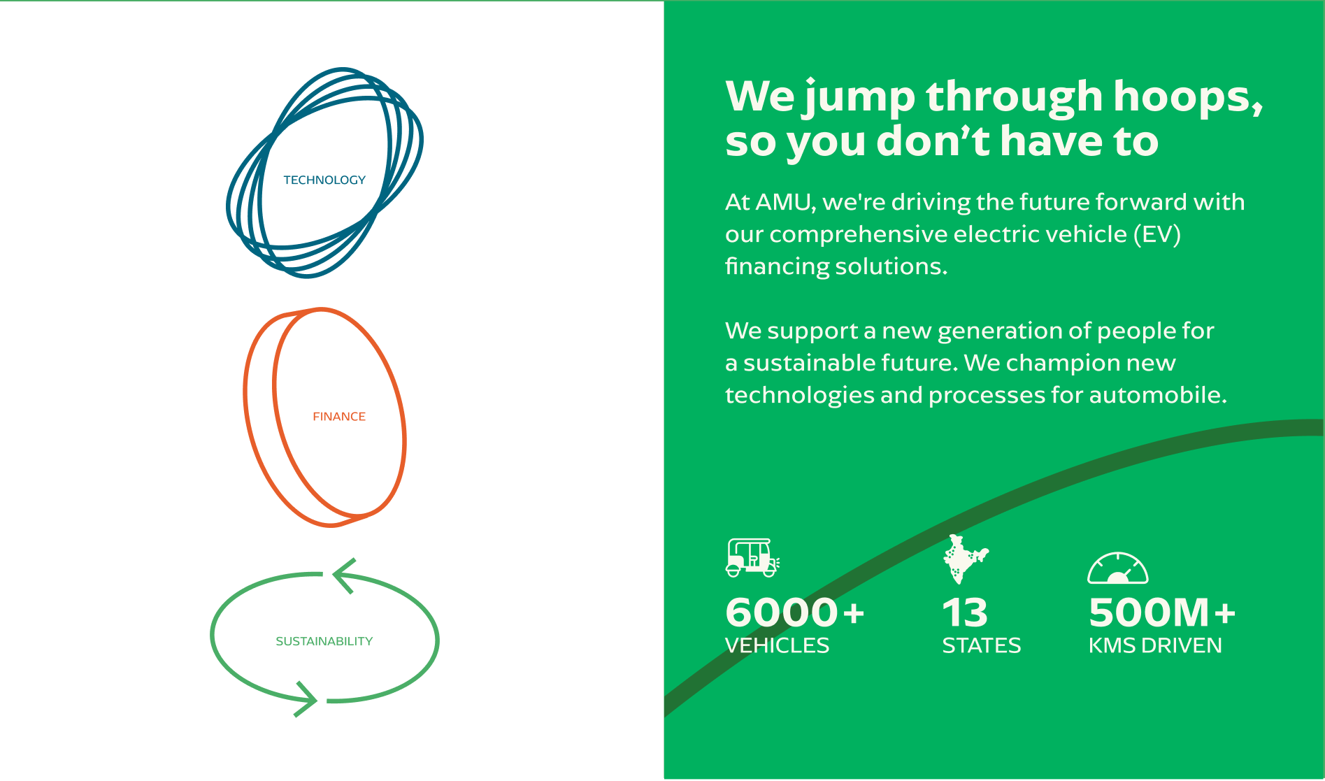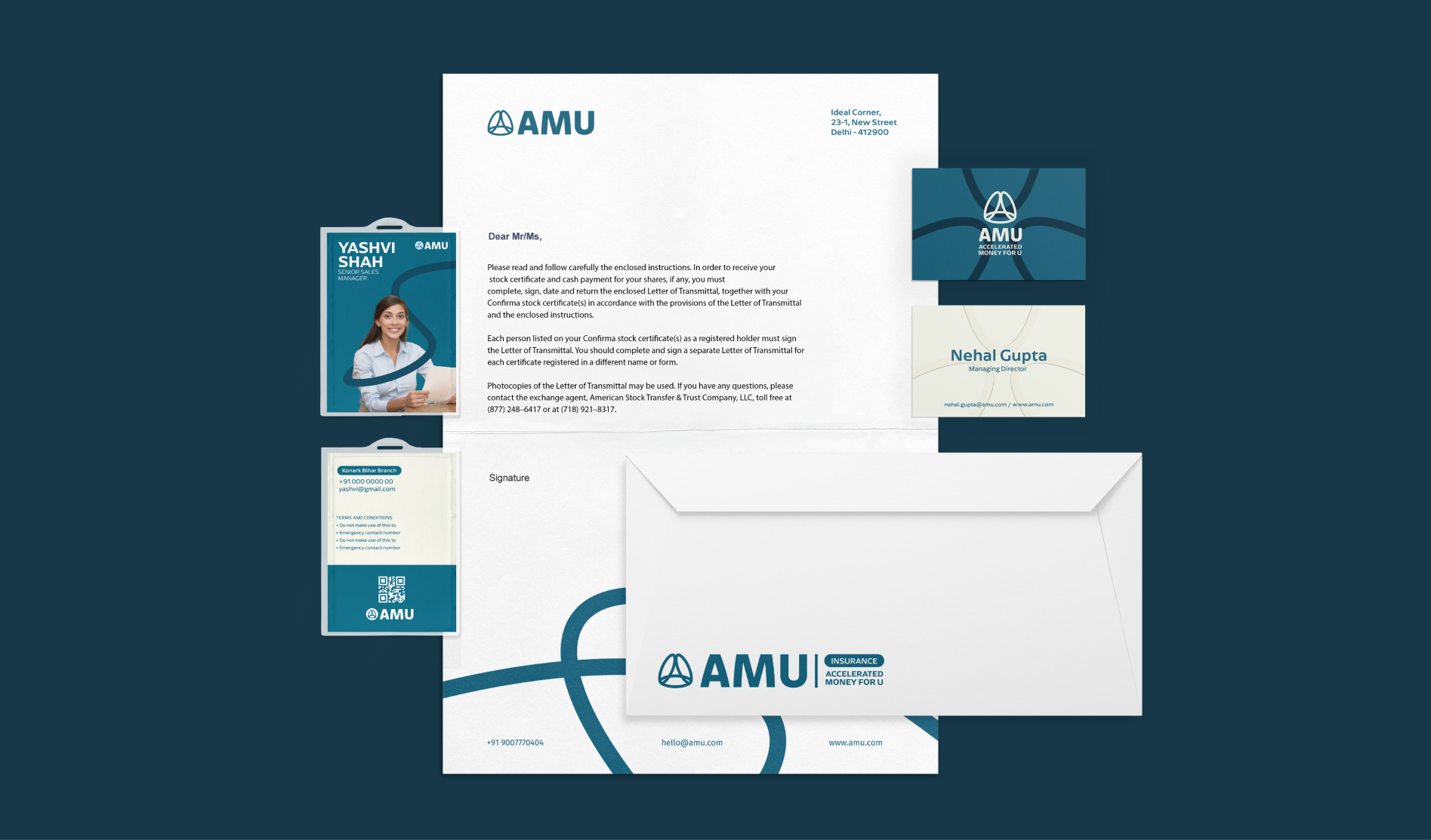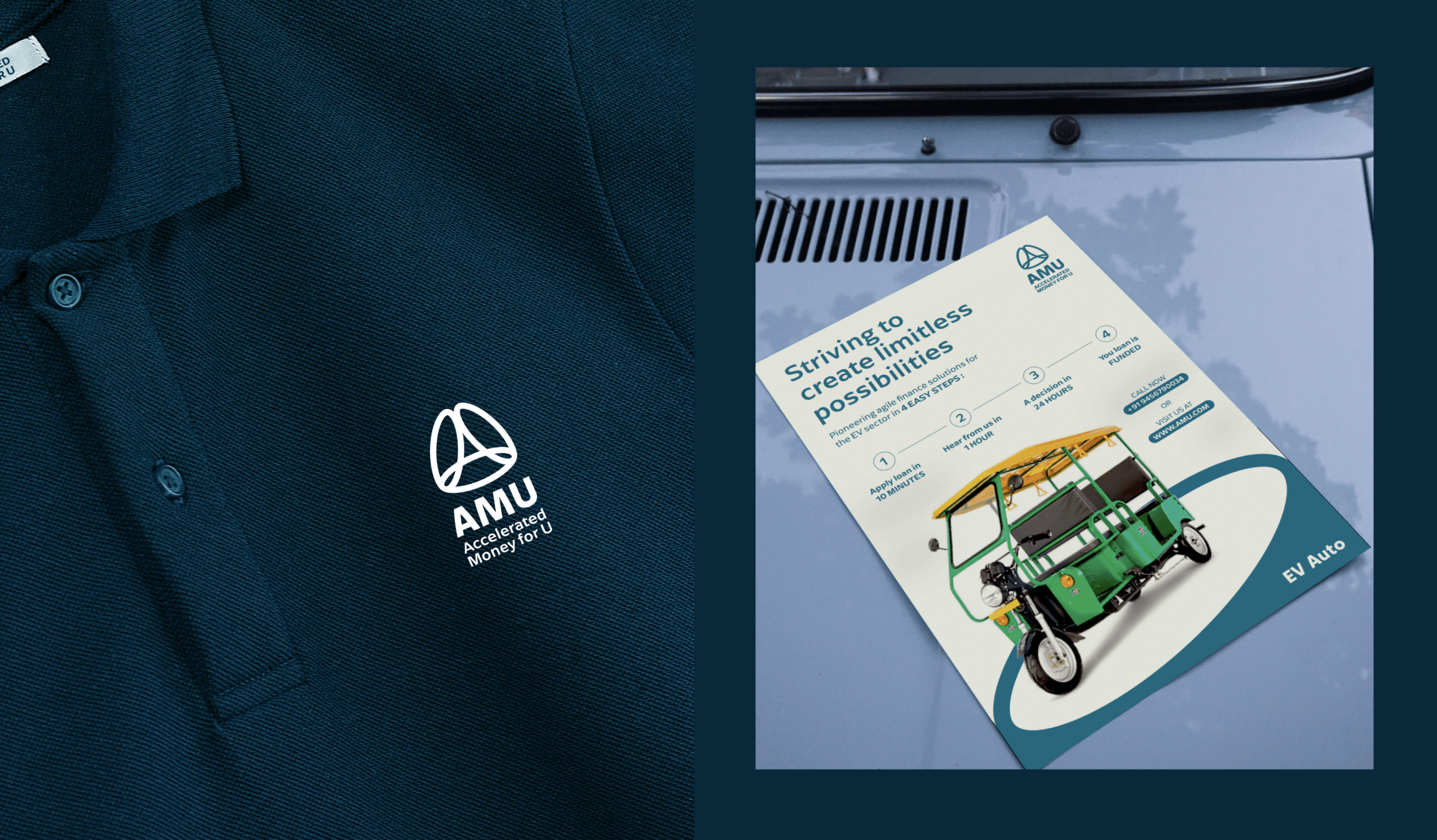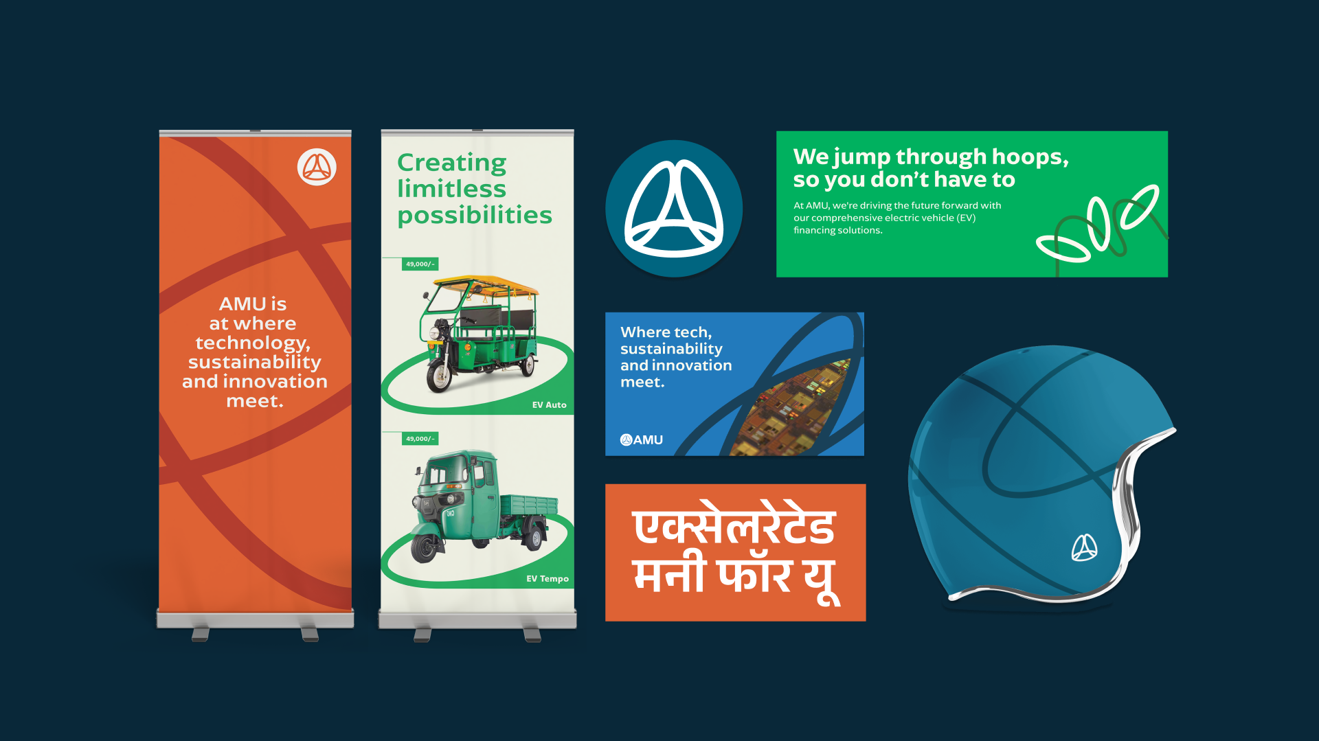 Accelerated Money For U (AMU) is an NBFC specialising in EV financing and leasing. The aim of their branding refresh was to have the brand logo and identity reflect their work at the frontier of modernity. At the same time, as a long-standing organisation, they had to retain their essence for recall from past customers and clients.