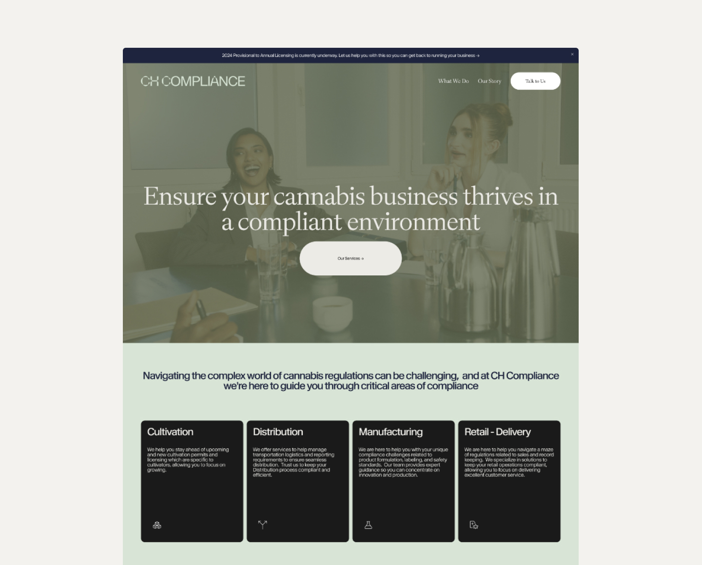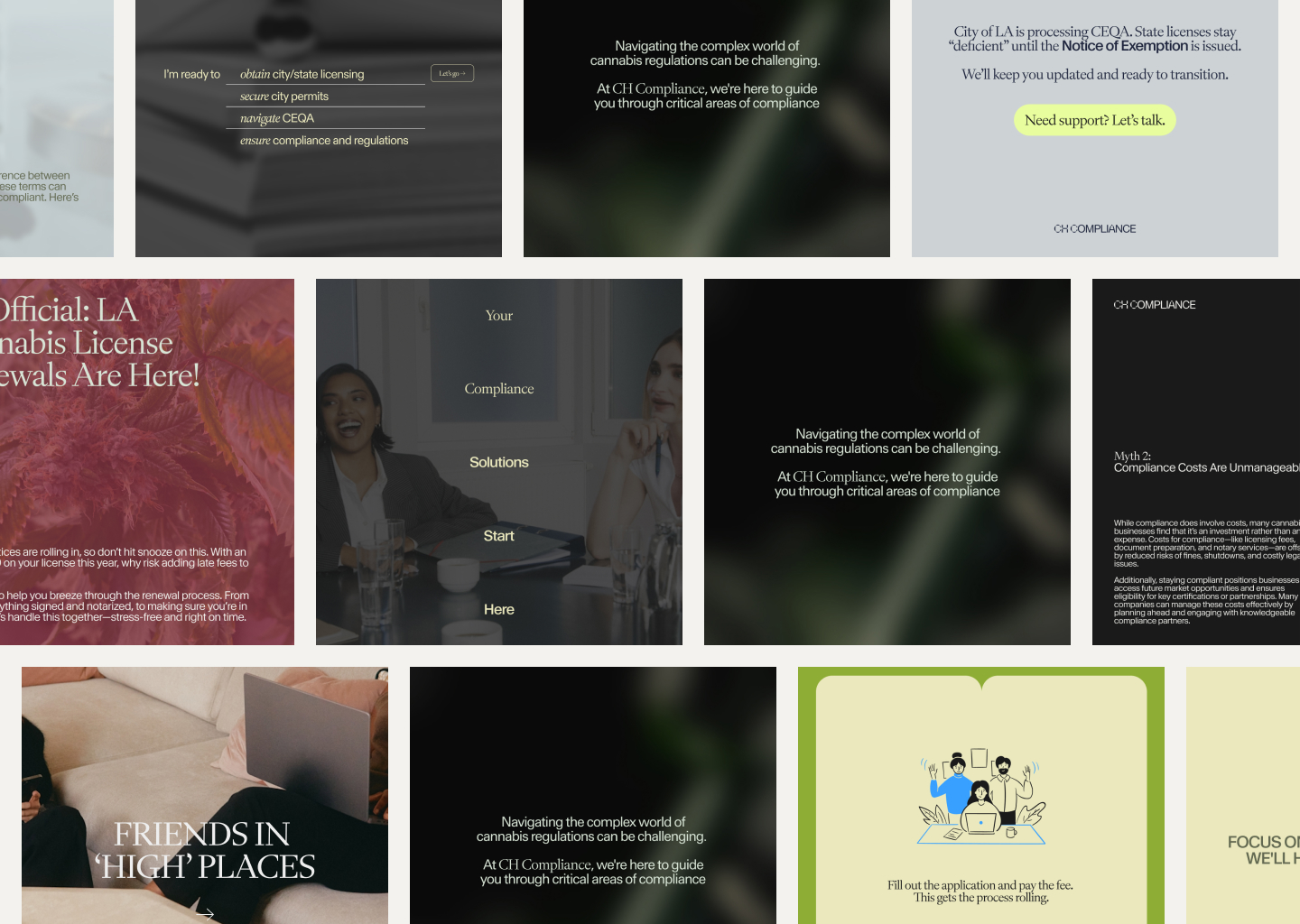 Through research, strategic thinking, and design, we aimed to give shape to this ethos. By engaging with stakeholders and exploring the nuanced landscape of cannabis operations, a central insight emerged: compliance is not an obstacle but a structure that can be navigated, understood, and mastered. CH Compliance is not merely a service provider but a partner in this endeavor, enabling operators to move beyond uncertainty toward resilience.