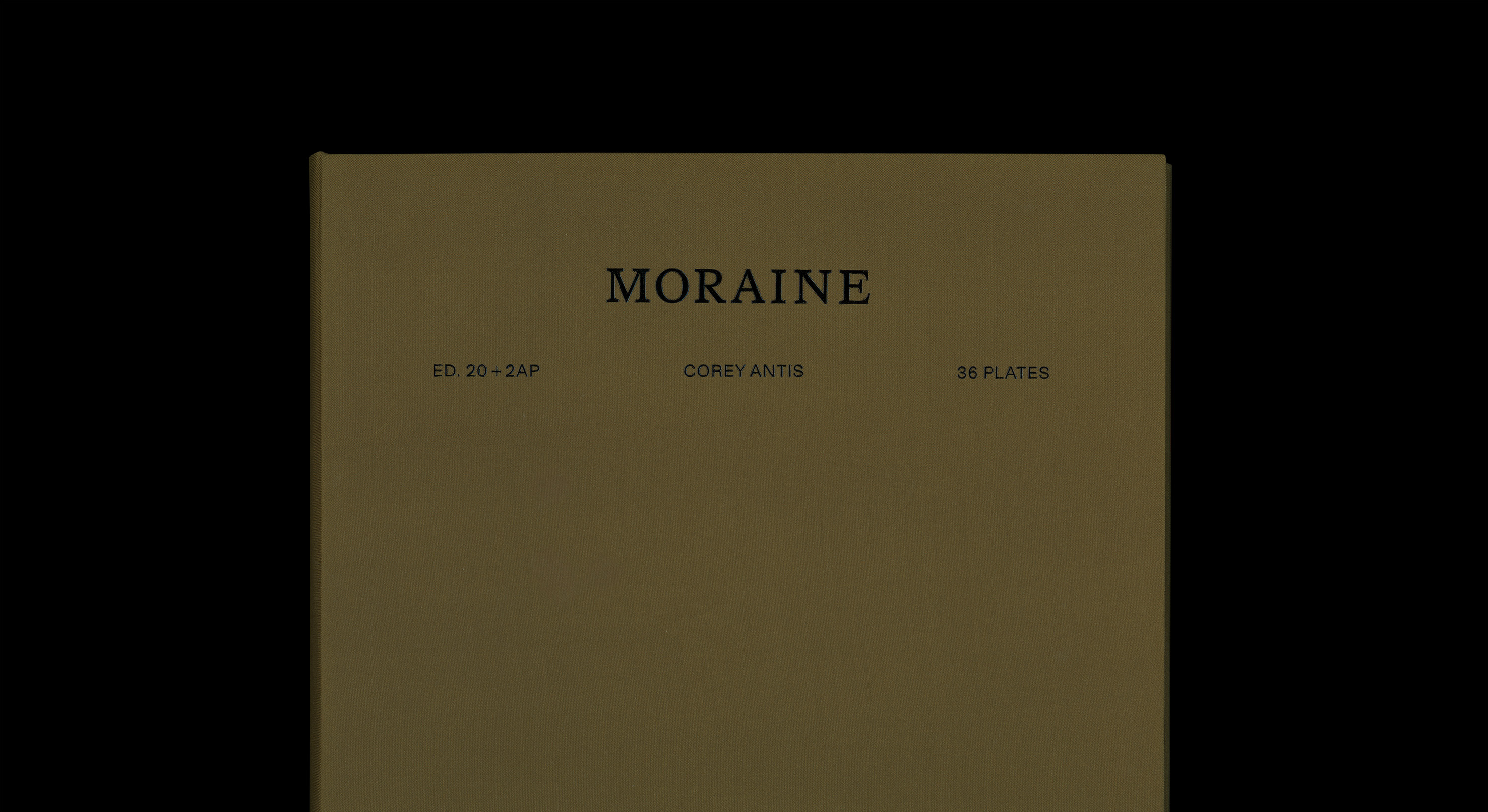 The book concept is by Corey Antis, Isobel Chiang, and Hannah Pierce (Small Editions) and was designed by Isobel Chiang with Hannah Pierce, using ABC Marist by Dinamo and Gerstner-Programm FSL by Forgotten Shapes. Letterpress printing by Sarah Nicholls, Habotai Silk backing by Sarah Smith, polymer plates by Boxcar Press, and file separations by Kathleen Collins. Sarah Nicholls provided the binding, with custom cases designed by Michelle Ho. Moraine was published by Small Editions
