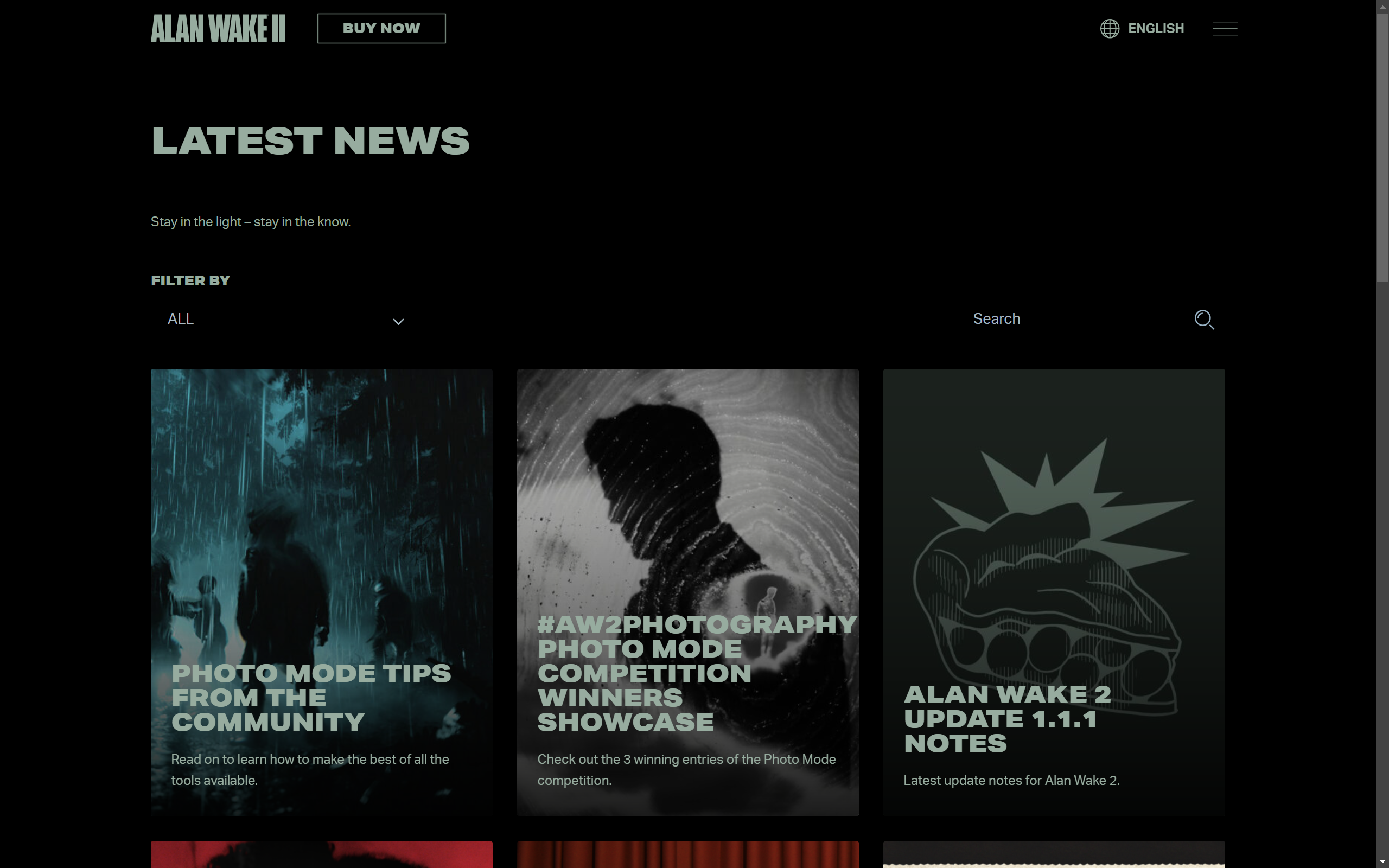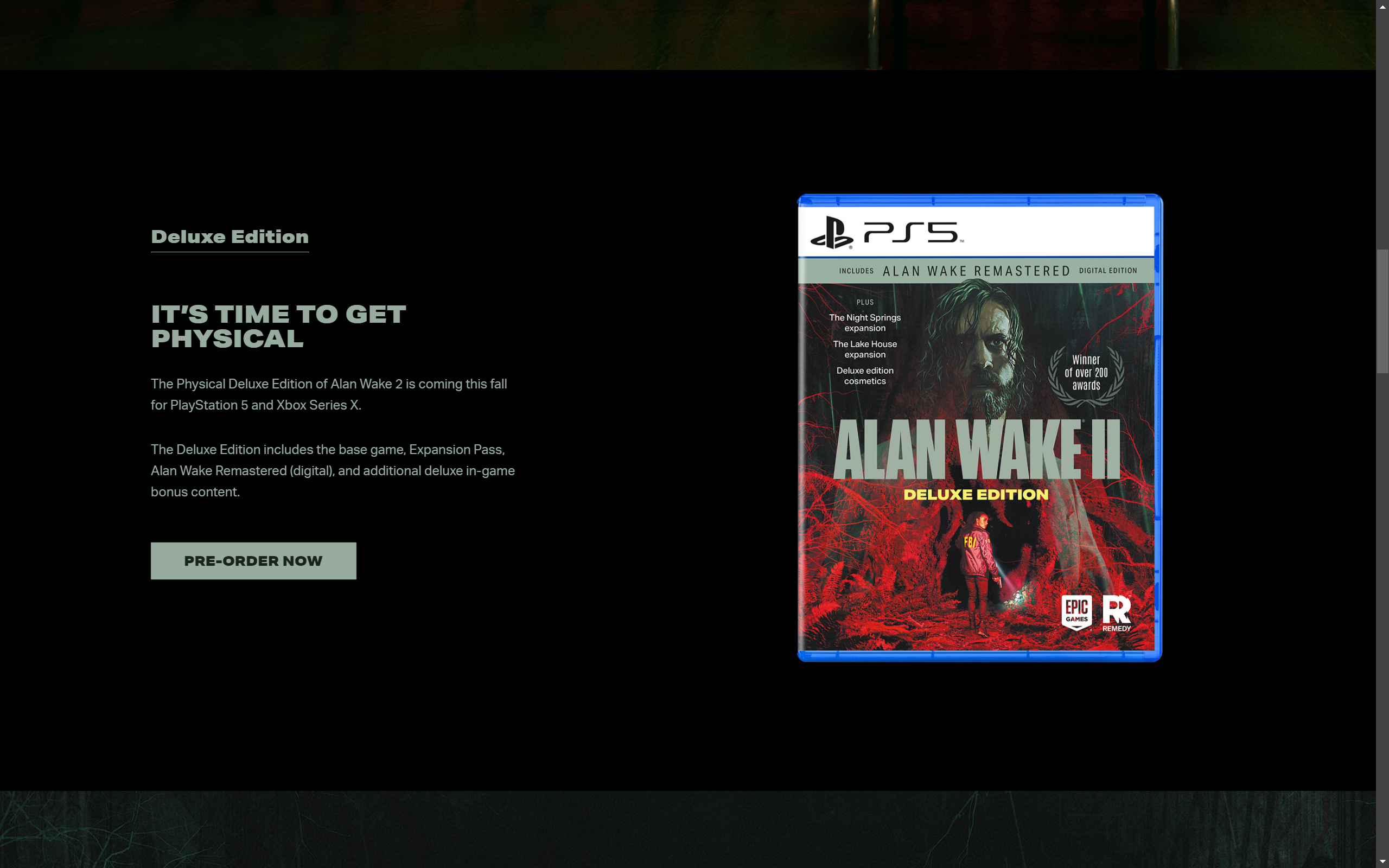 The first thing that stuck out to me is the brand color of Alan Wake 2. It’s a strange washed-out green that is used on all branding, including in-game. It could be a reference to the many dense forests you find yourself in when playing the game, but with how washed out it is, there might be something deeper. It certainly gives their branding a strange atmosphere.
