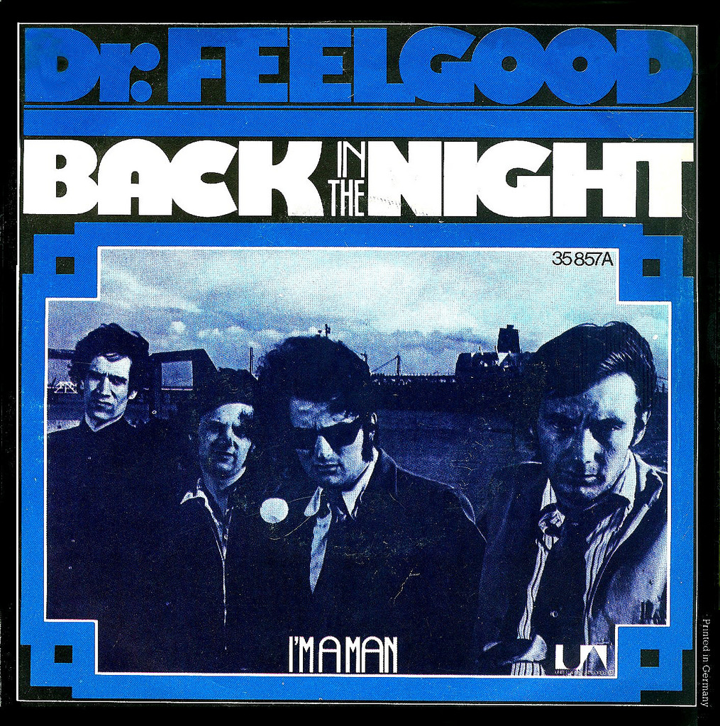 German sleeve for “Back In The Night”. The B-side “I’m A Man” is the Bo Diddley song, not the Spencer Davis hit. Tightly spaced caps from Gill Kayo with a custom (or alternate) round-top A are paired with Penny Farthing for the smaller type.