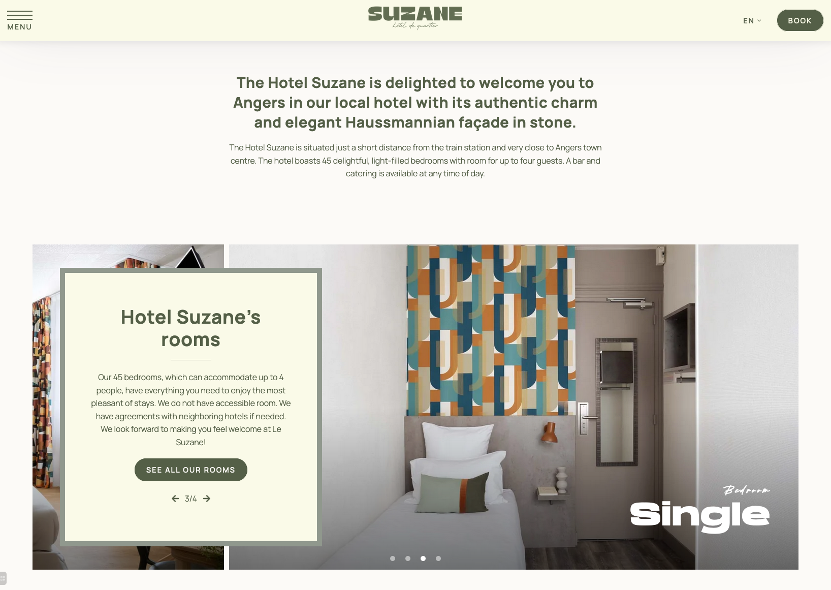 Collectif.huge worked on the branding of a new hotel in Angers, France – the Suzane Hôtel & Café. They chose the style Black 20 of TroisMille, a typeface by Marc Rouault, for “Suzanne”. To contrast and create a nice pair, they paired it with Black Signature.