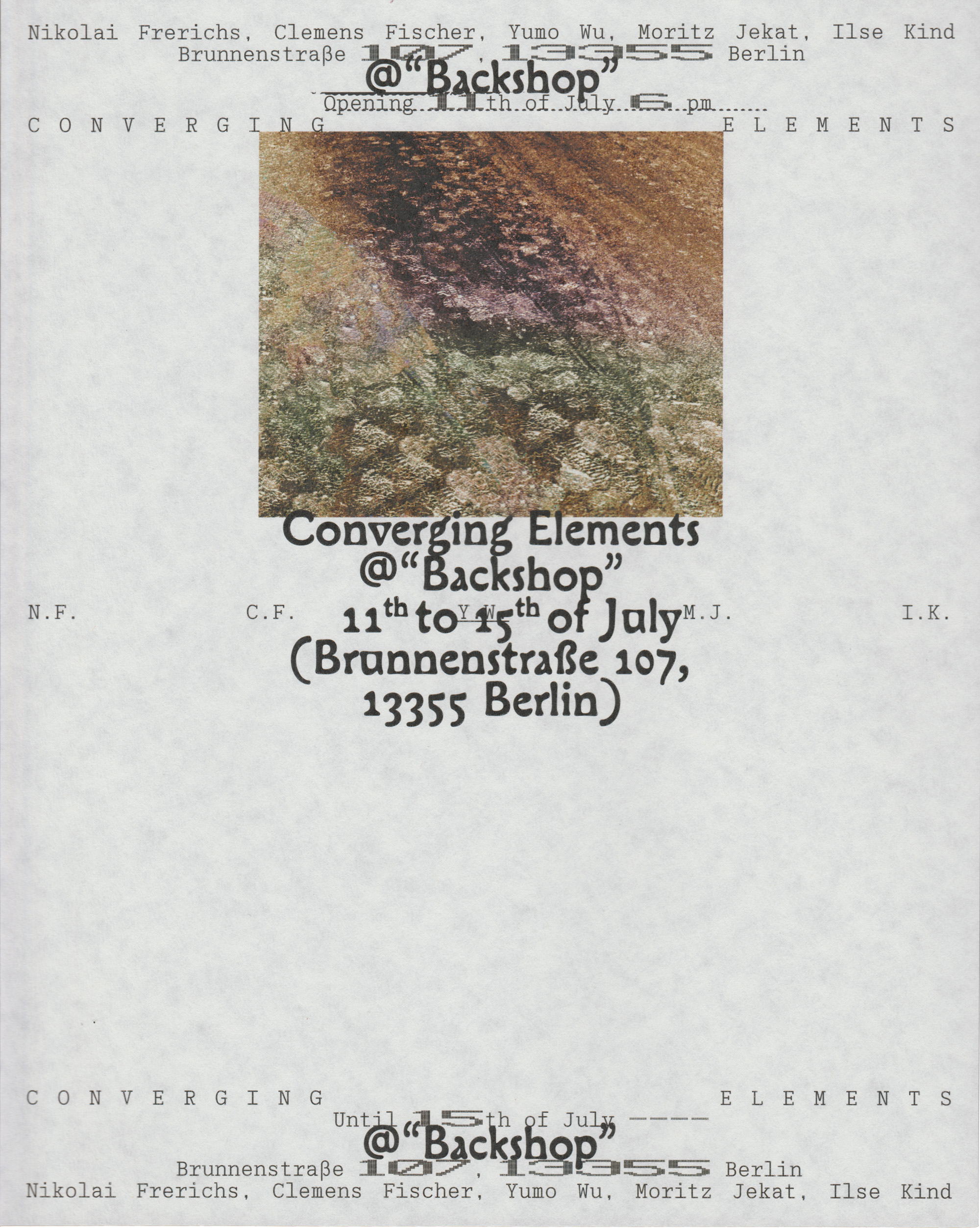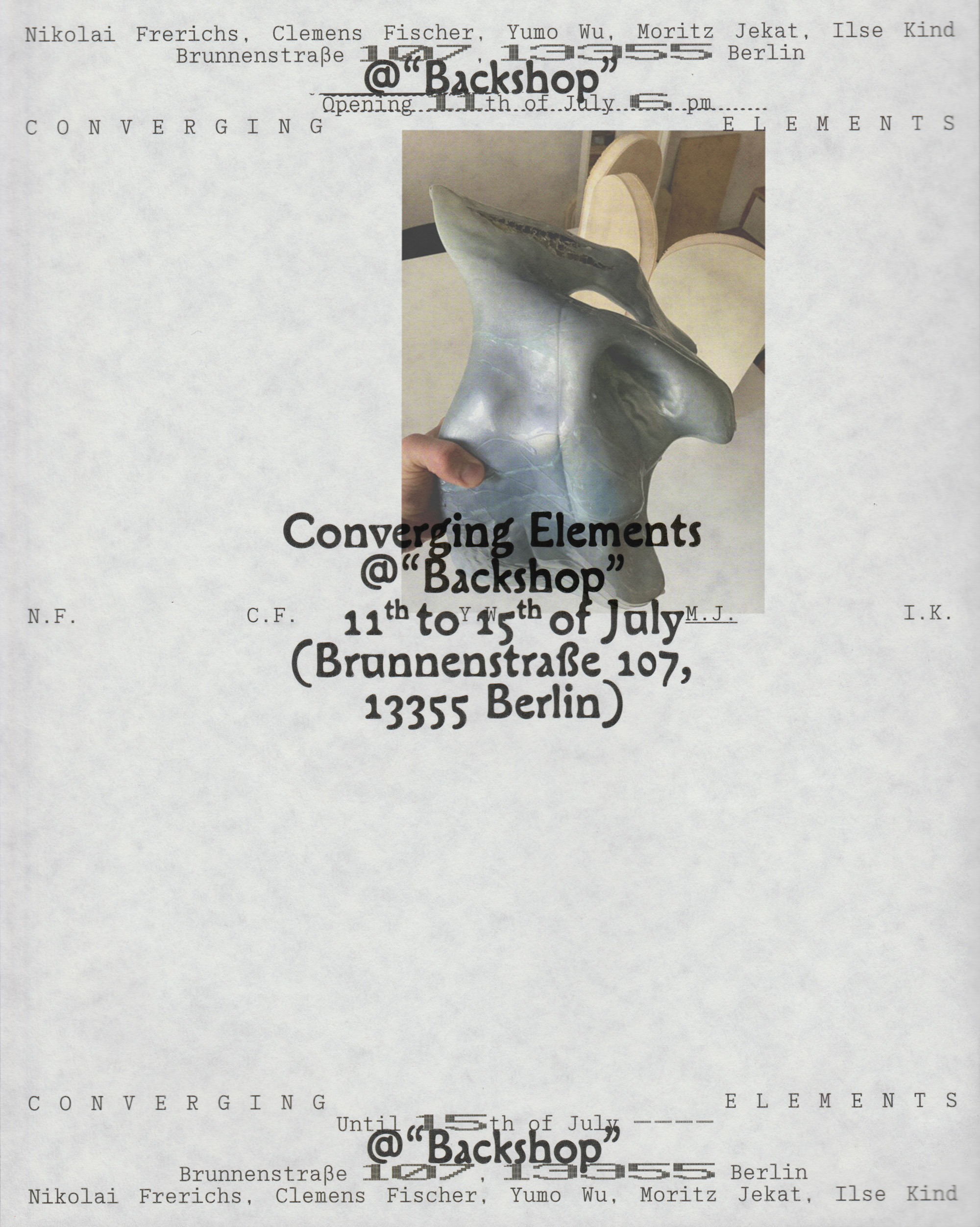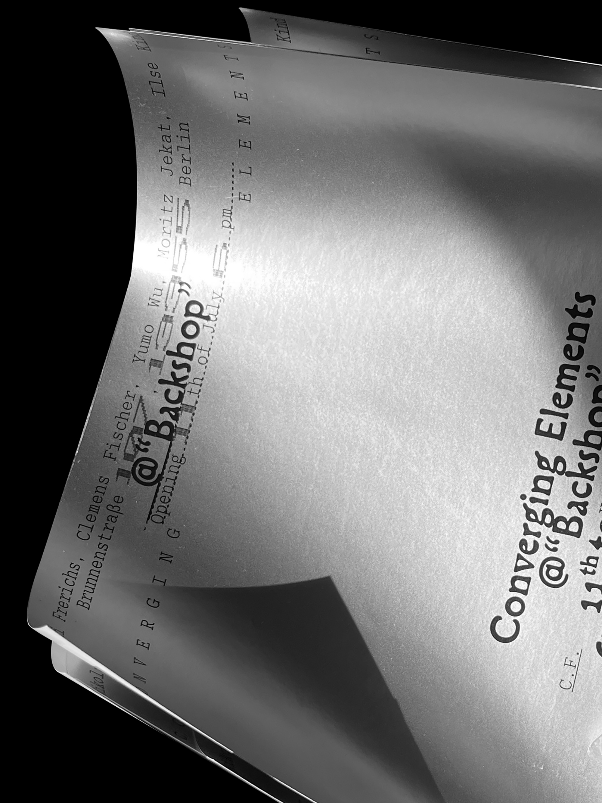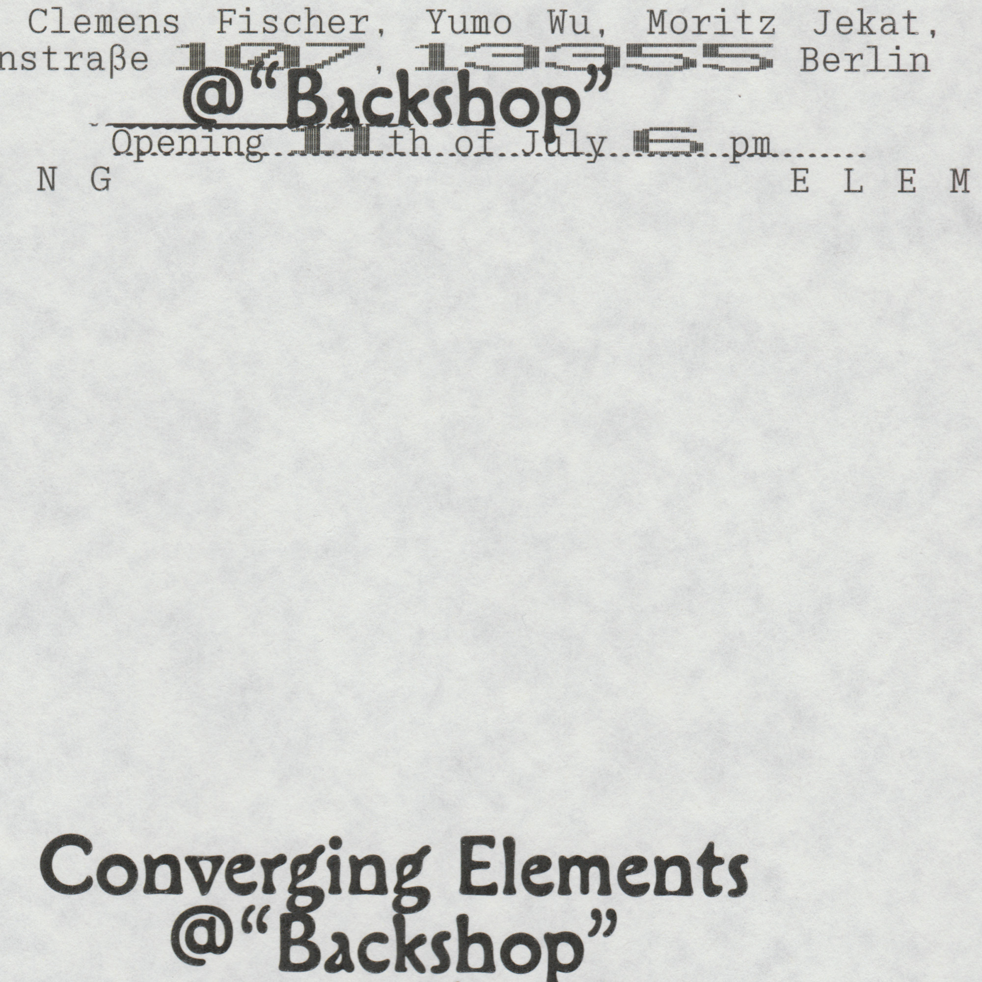 Posters for the exhibition Converging Elements at Backshop, Brunnenstraße 107, Berlin.