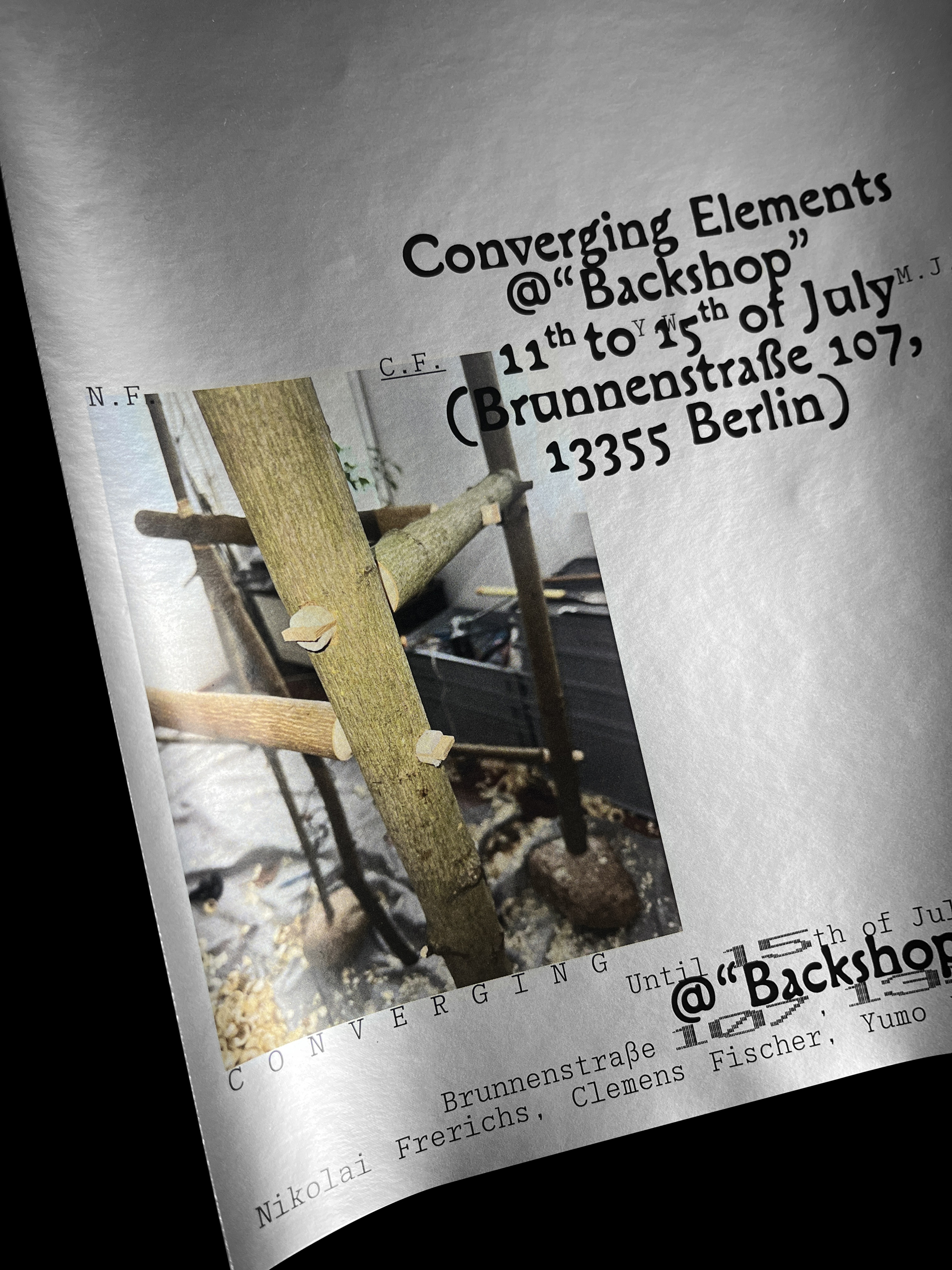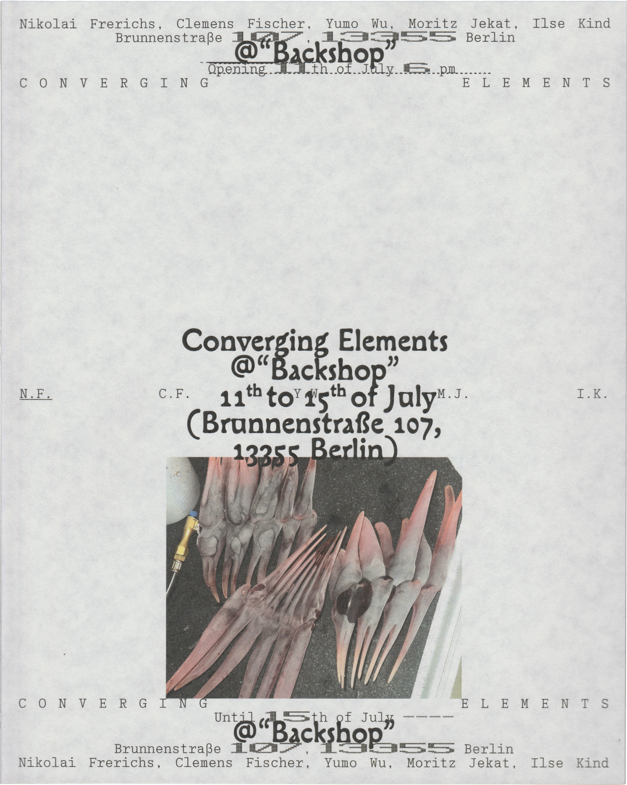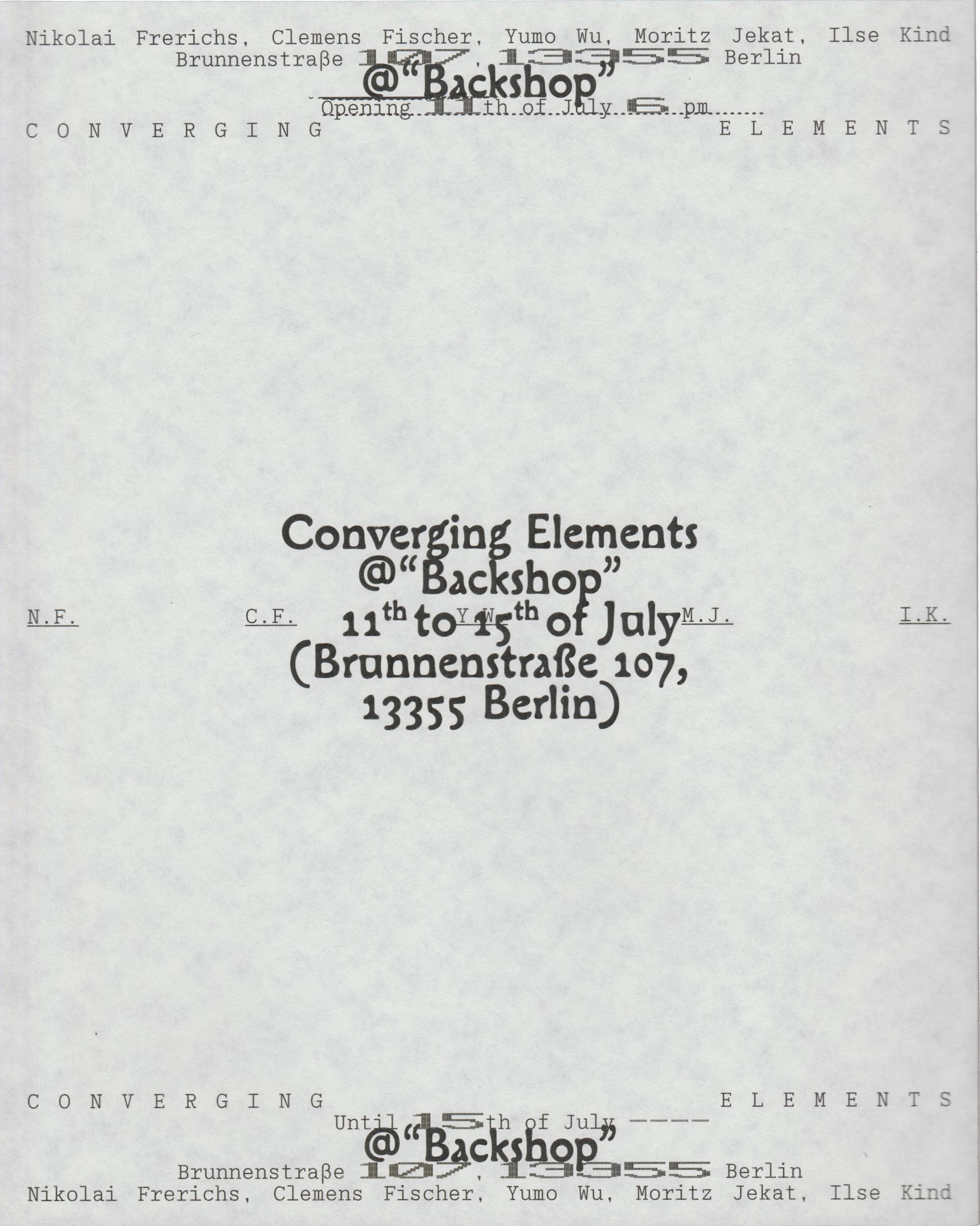 Posters for the exhibition Converging Elements at Backshop, Brunnenstraße 107, Berlin.