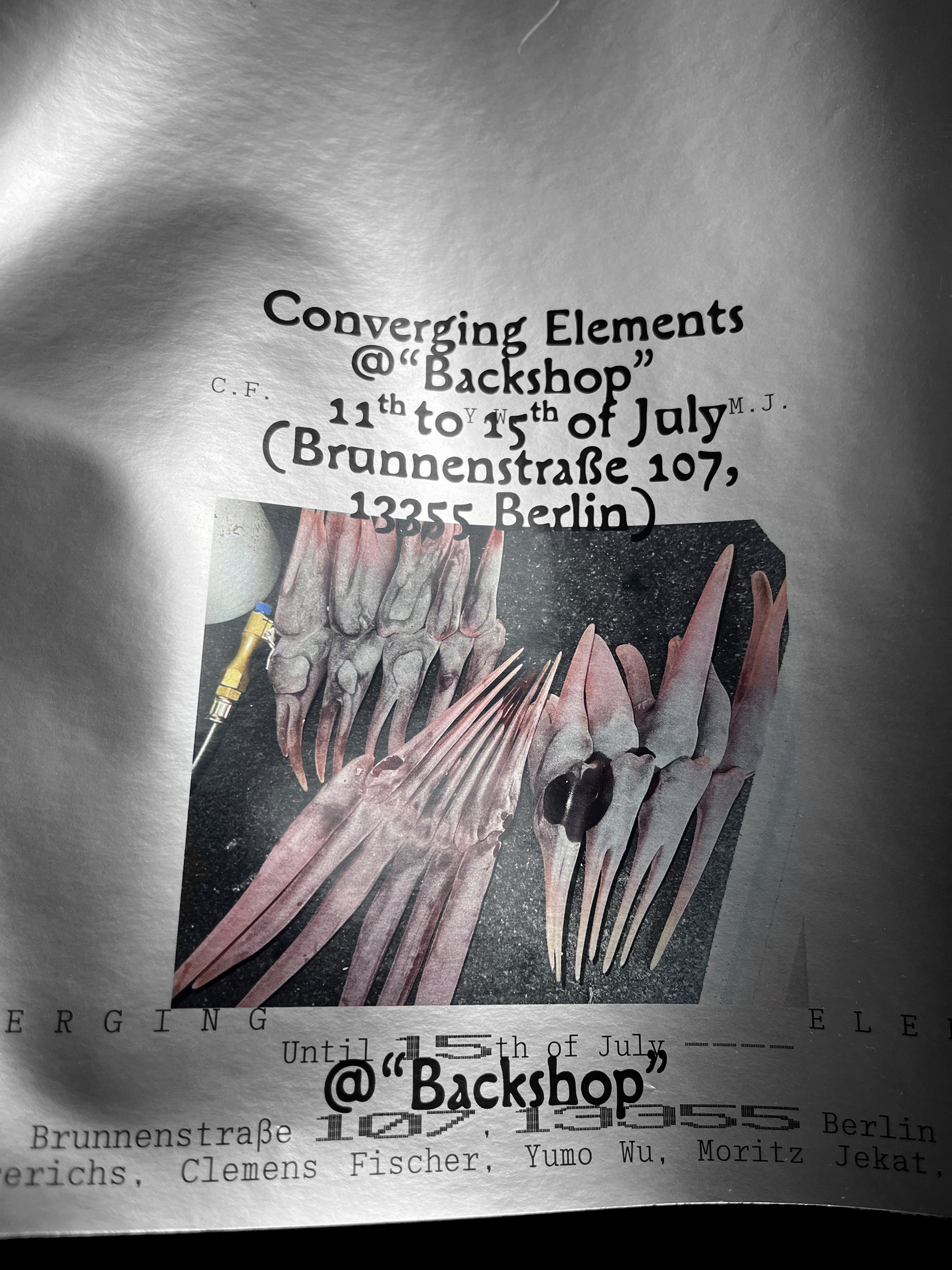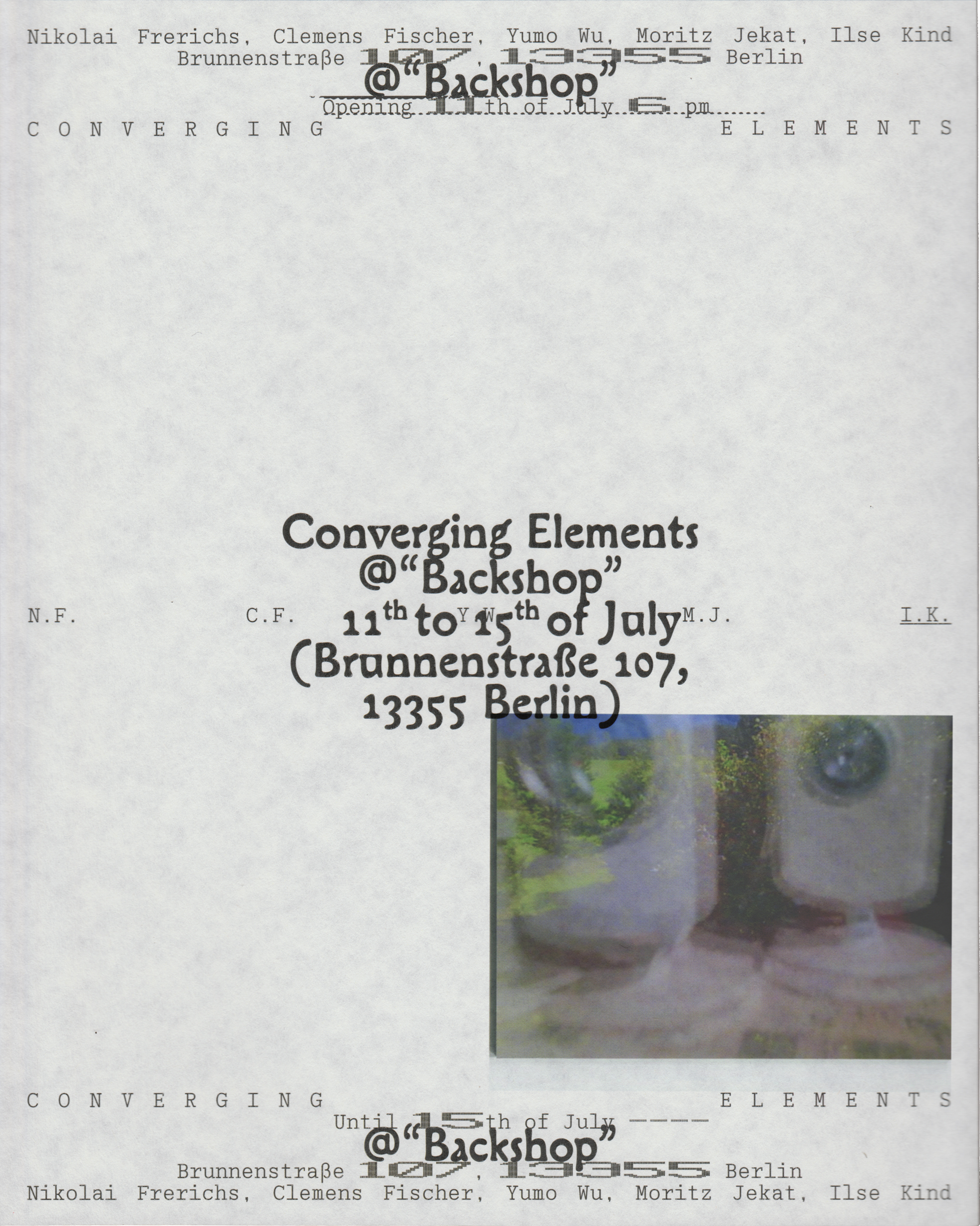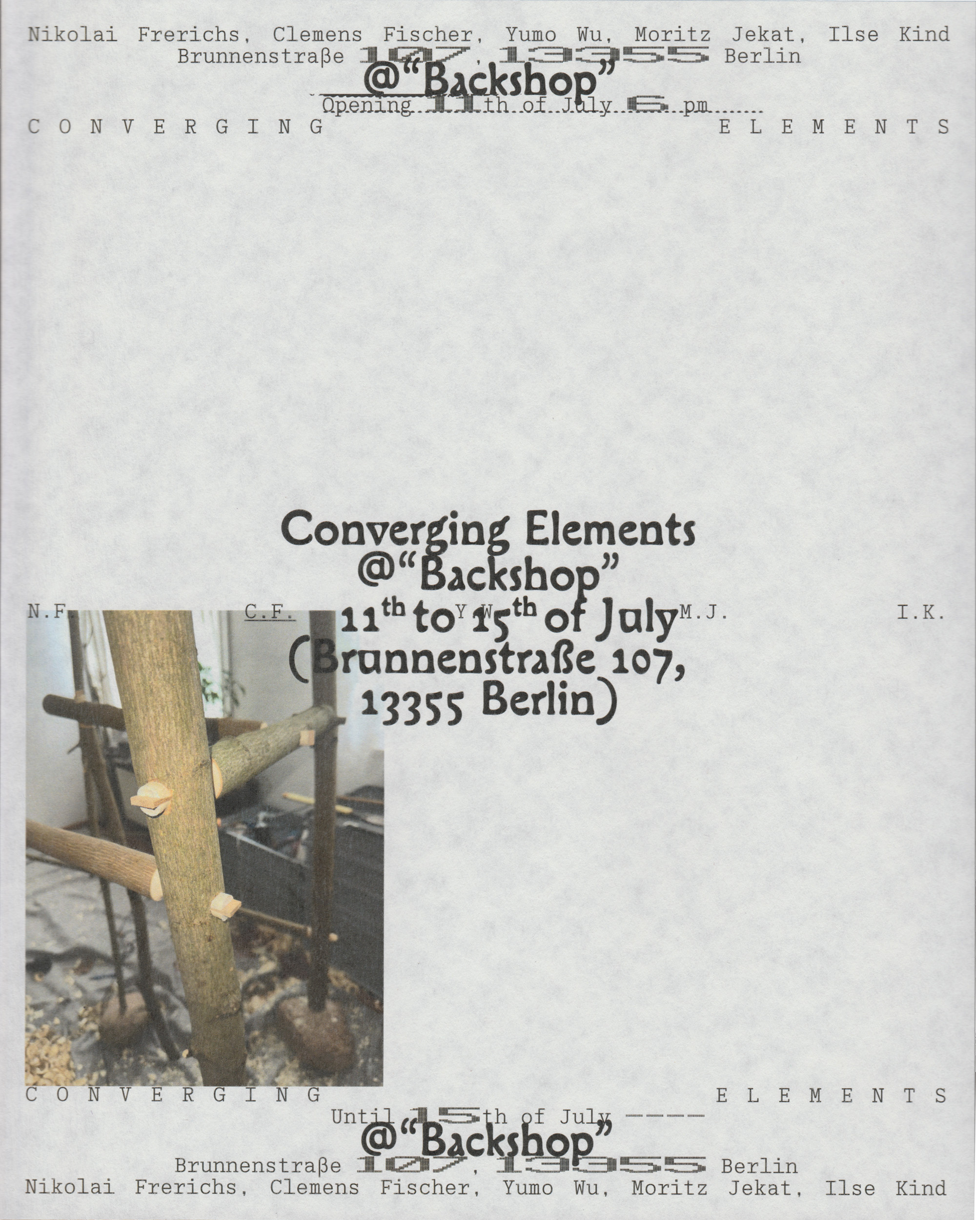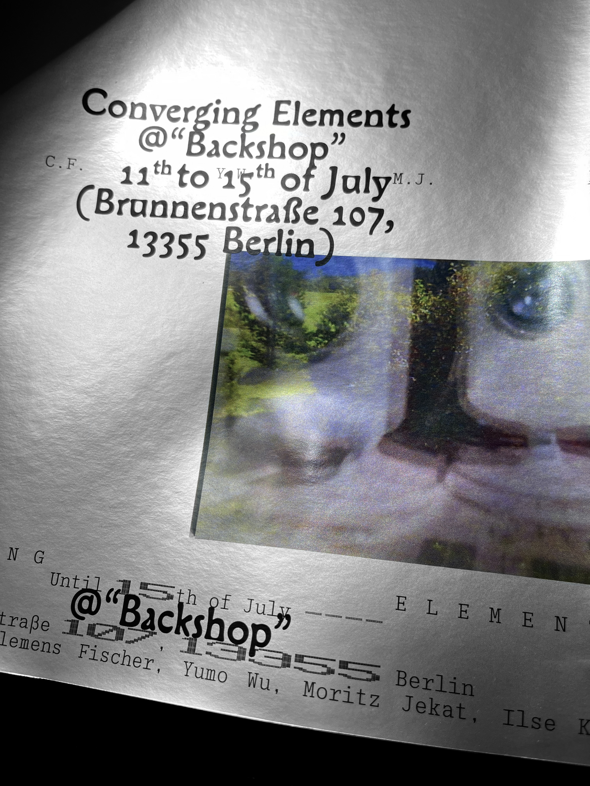 Posters for the exhibition Converging Elements at Backshop, Brunnenstraße 107, Berlin.