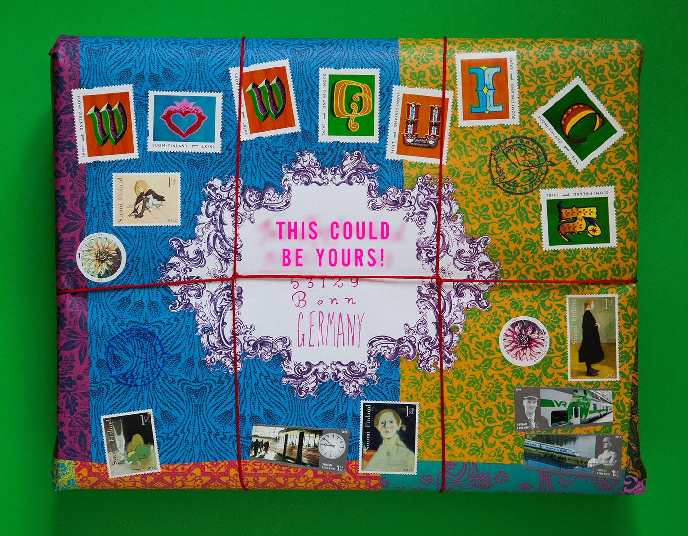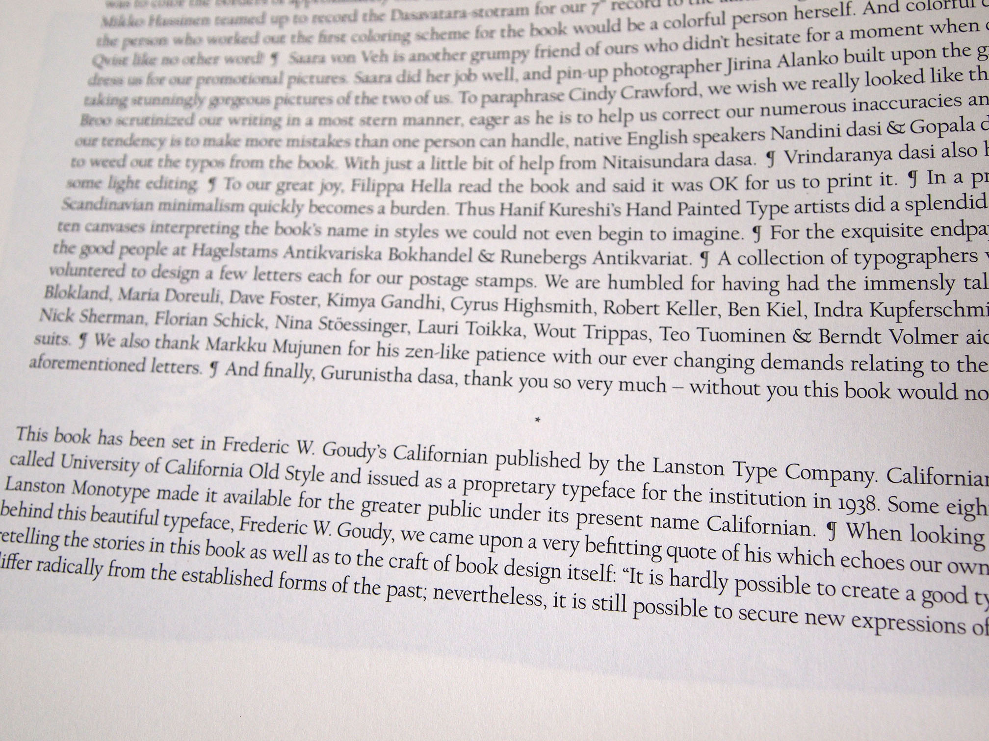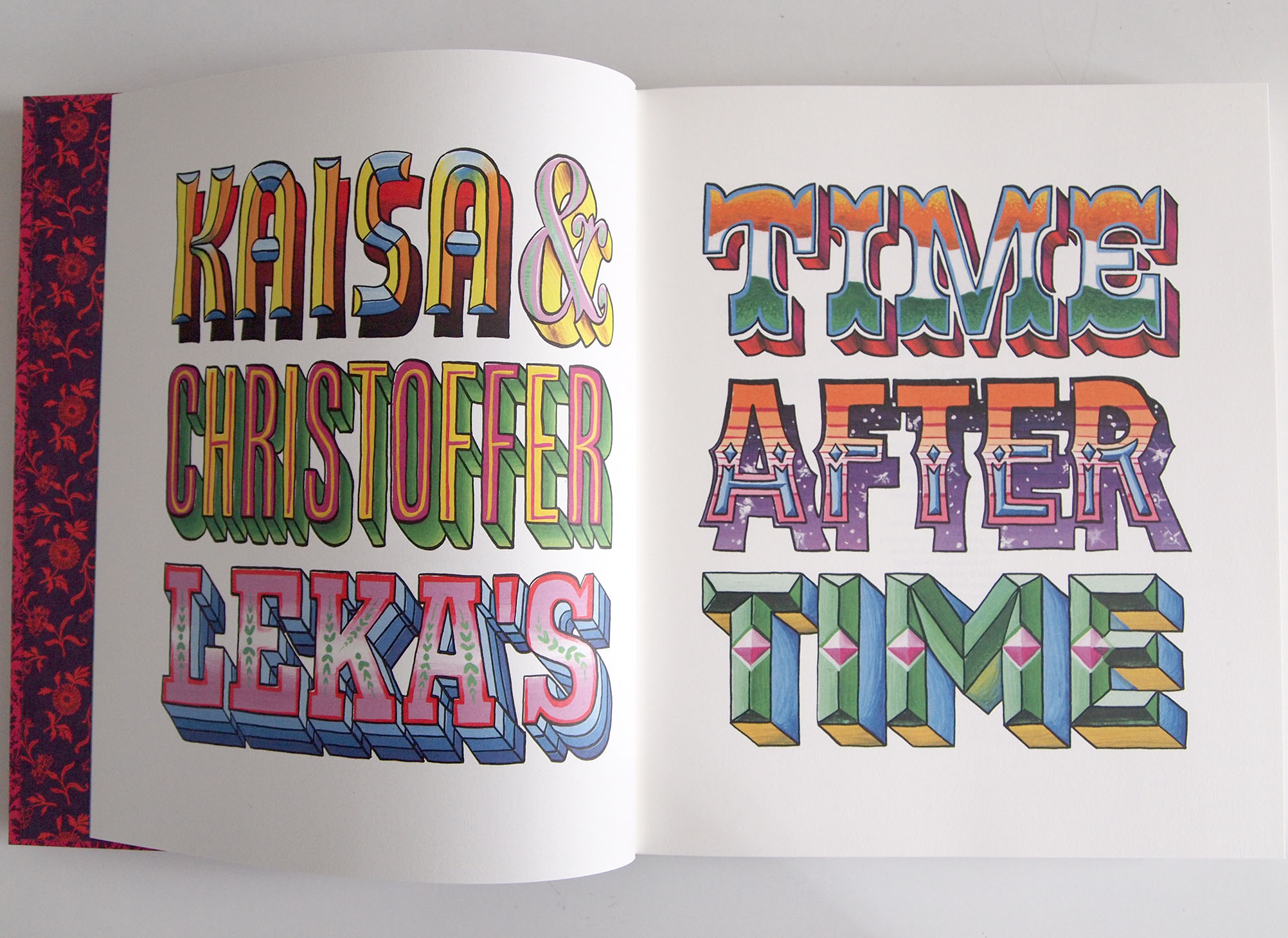 Time after Time, the latest and largest graphic novel by Kaisa & Christoffer Leka, is beautifully illustrated and handlettered throughout, but the intro and miscellaneous pages are set in Lanston’s version of Californian. A good choice. The book project was accompanied by a stamp project (and painting project): the Lekas asked 17 typeface designers to design letters and numerals that were printed as official Finnish stamps. The packages Kaisa and Christoffer send out the books in couldn’t be more magical and enticing.