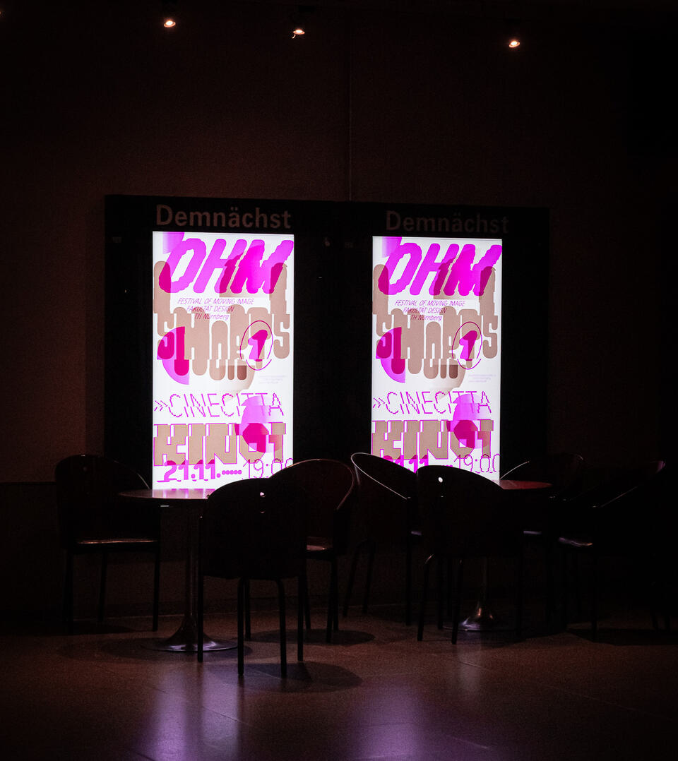 The task was to design a visual identity for the new festival. In addition to the use of classic print media such as posters and merchandise, however, the main focus was on designing various animated image formats outside and inside the movie theater to guide the audience through the evening.