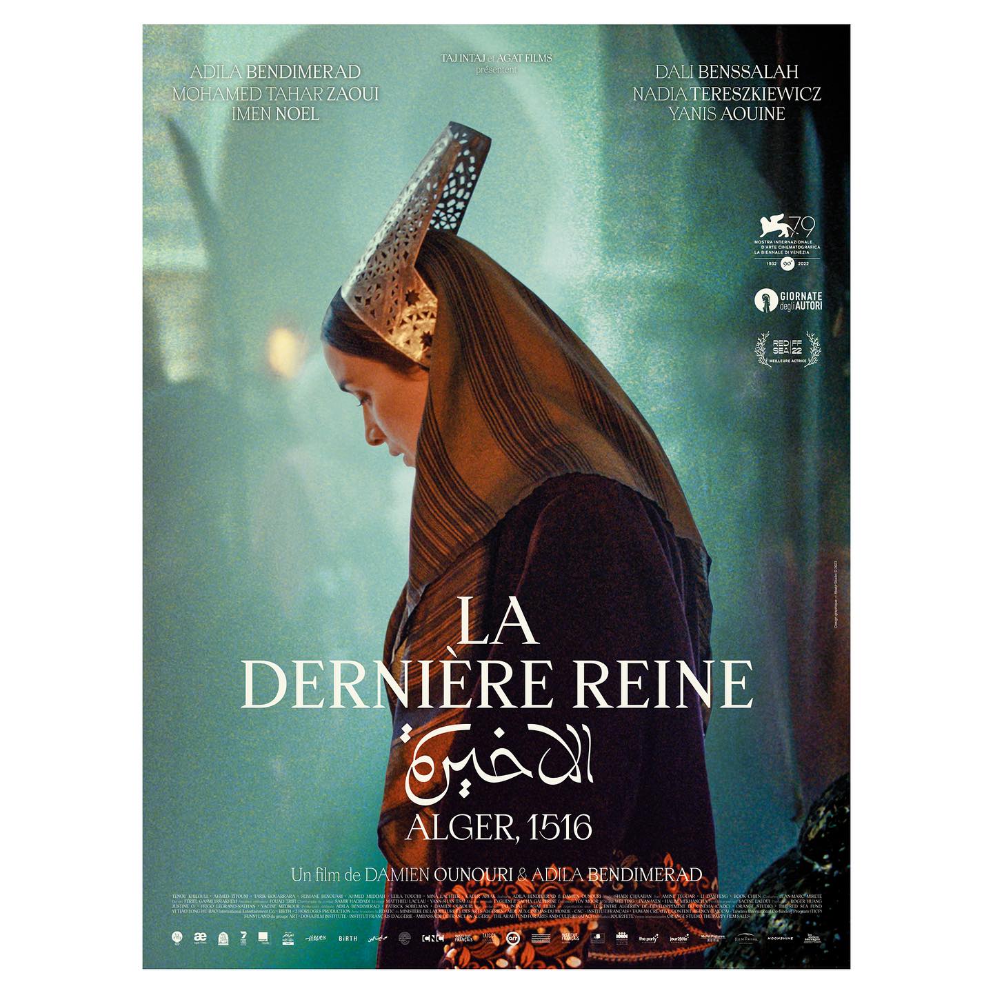 The poster for the film La Dernière Reine (Arabic: الملكة الأخيرة, English: The Last Queen), directed by Damien Ounouri and Adila Bendimerad and produced by Taj Intaj and Agat Films Exnihilo, is a striking visual representation of the story. The typeface used for the French text is Apoc by Blaze Type. It adds a modern touch to the campaign designed by Akakir Studio. The Arabic typeface is yet unidentified.