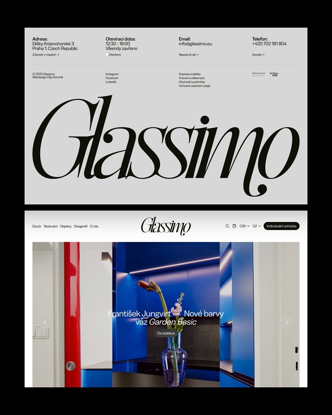 Blaze Type’s Sigurd, designed by Matthieu Salvaggio and Léon Hugues, is used for the logo of Glassimo, a store dedicated to lovers of Czech glass. Glassimo offers a diverse collection, ranging from everyday glasses to exquisite art objects, created by both established and emerging Czech designers. The brand typeface is Greed, designed by Martin Vácha and available from his Displaay Type Foundry. It is used throughout the bilingual website, occasionally paired with Sigurd.