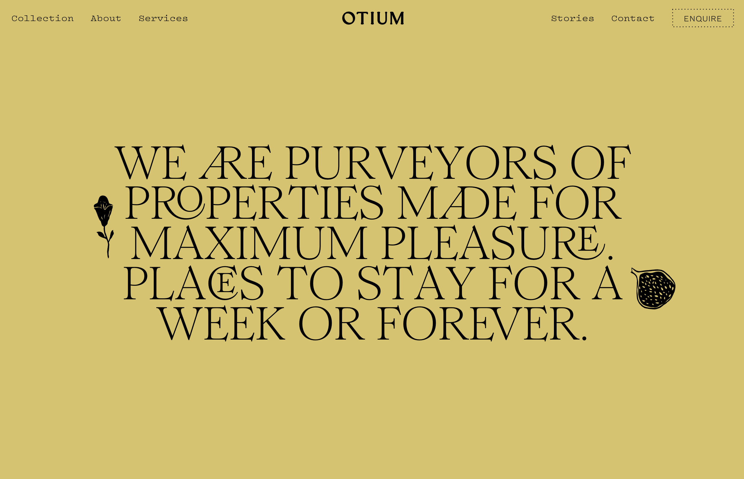 The branding uses Romie Regular by Margot Lévêque, highlighting its extensive ligature set. The website additionally uses Vulf Sans and Vulf Mono by OH no Type Co. The Otium logo appears to be custom.