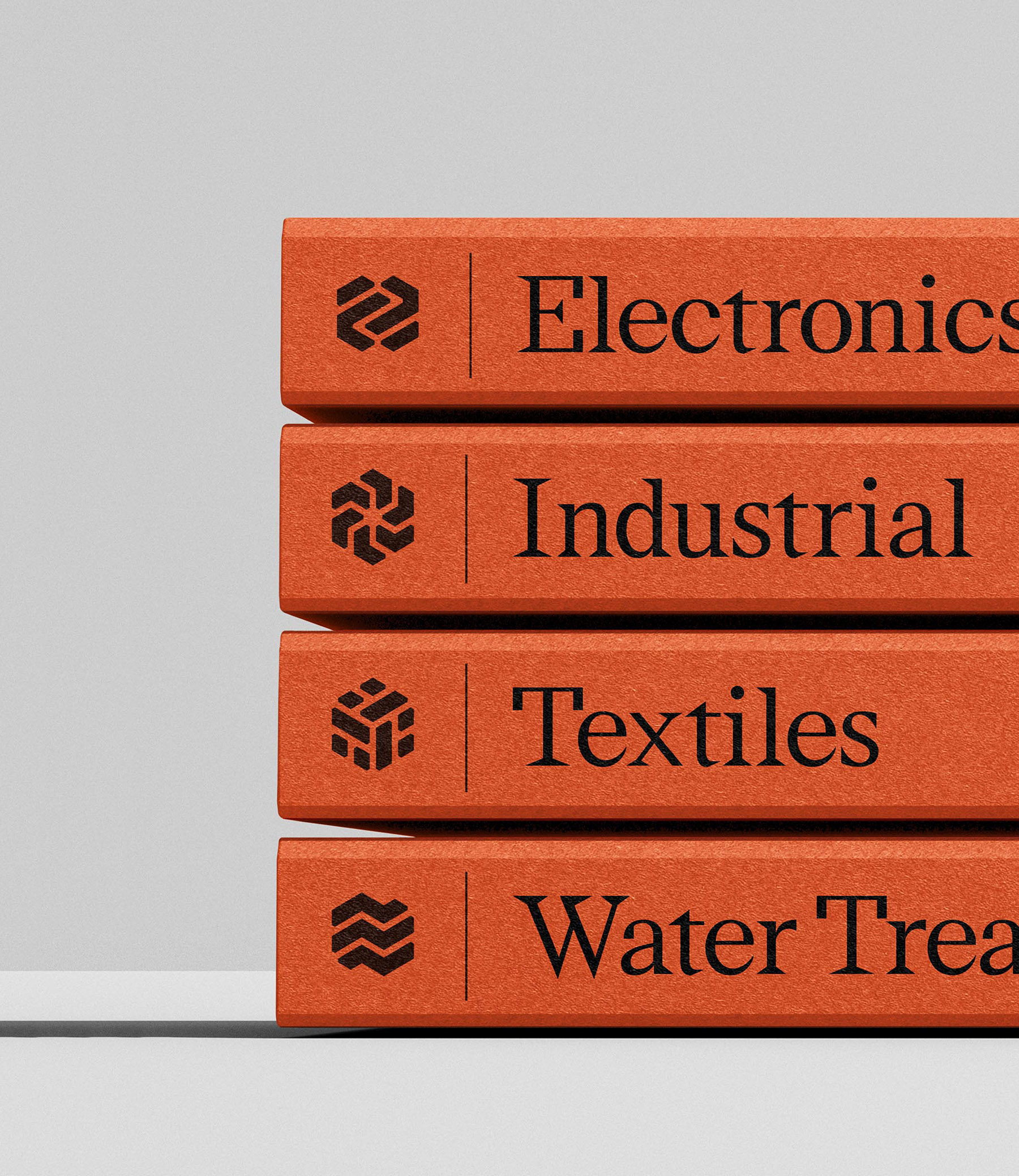 The stenciled wordmark, which is a modified version of Stellage Constructed, visualizes the relationship between the seen and the unseen. The implied connections of the letterforms speak to the seemingly invisible science that is the backbone of all their products.