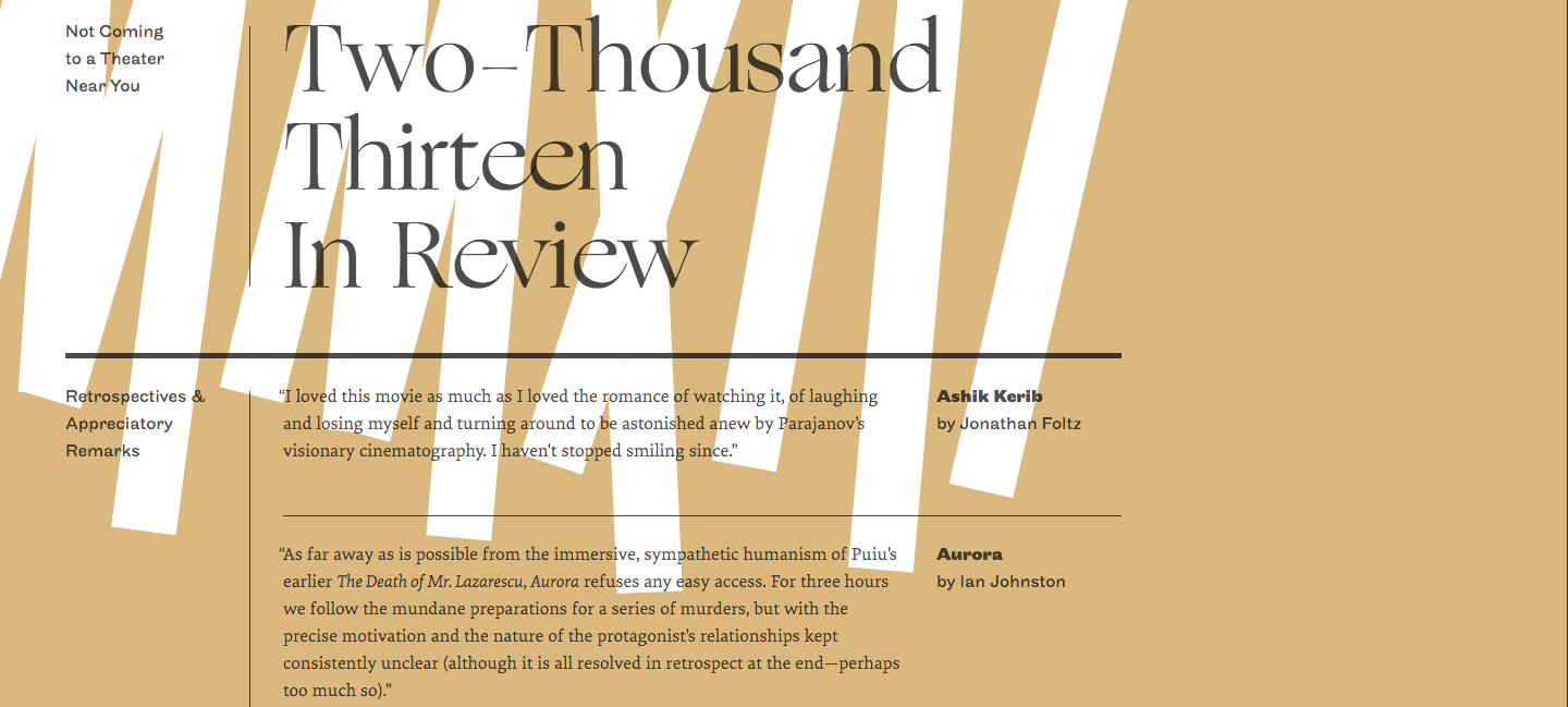 Not Coming to a Theater Near You Two-Thousand Thirteen In Review