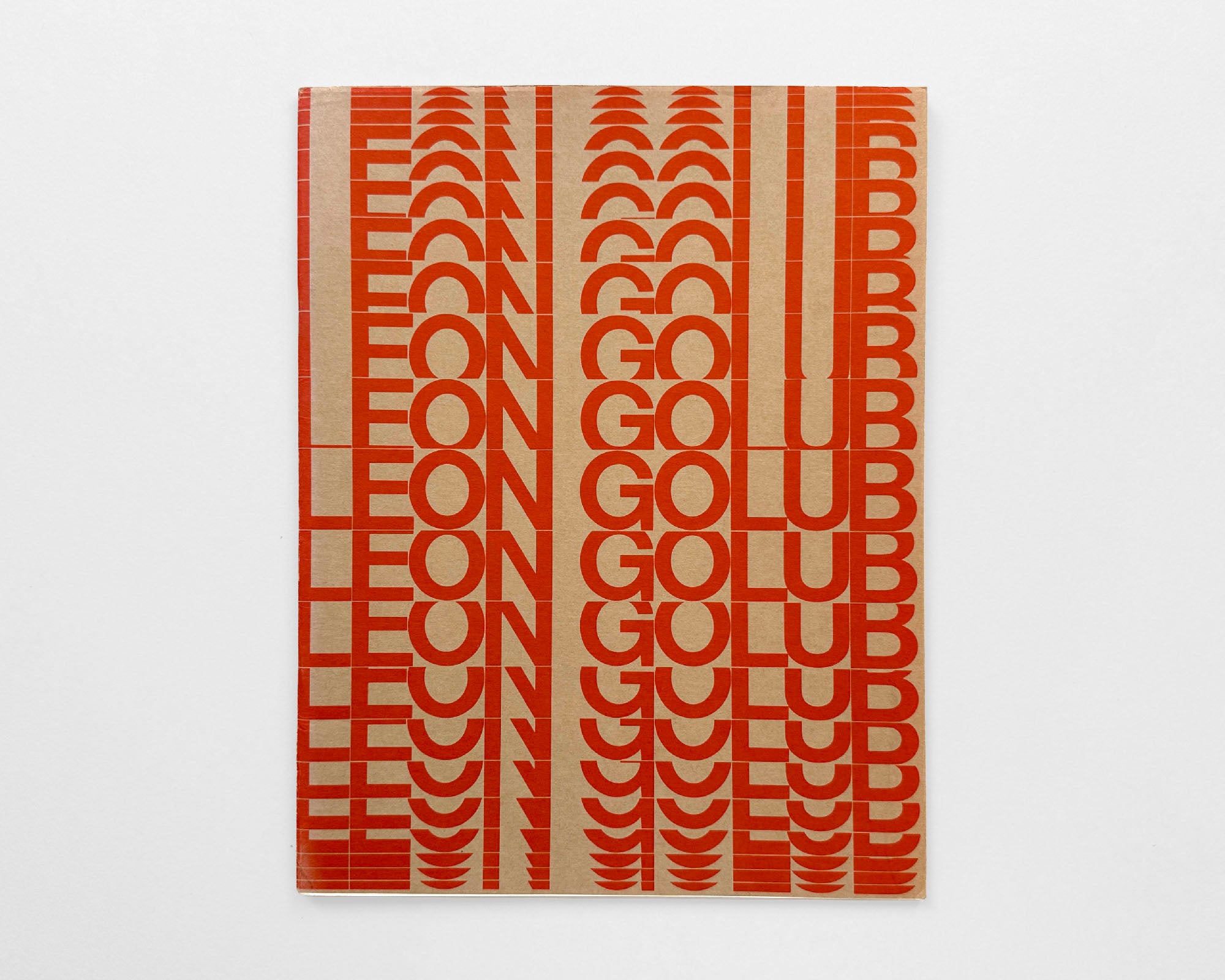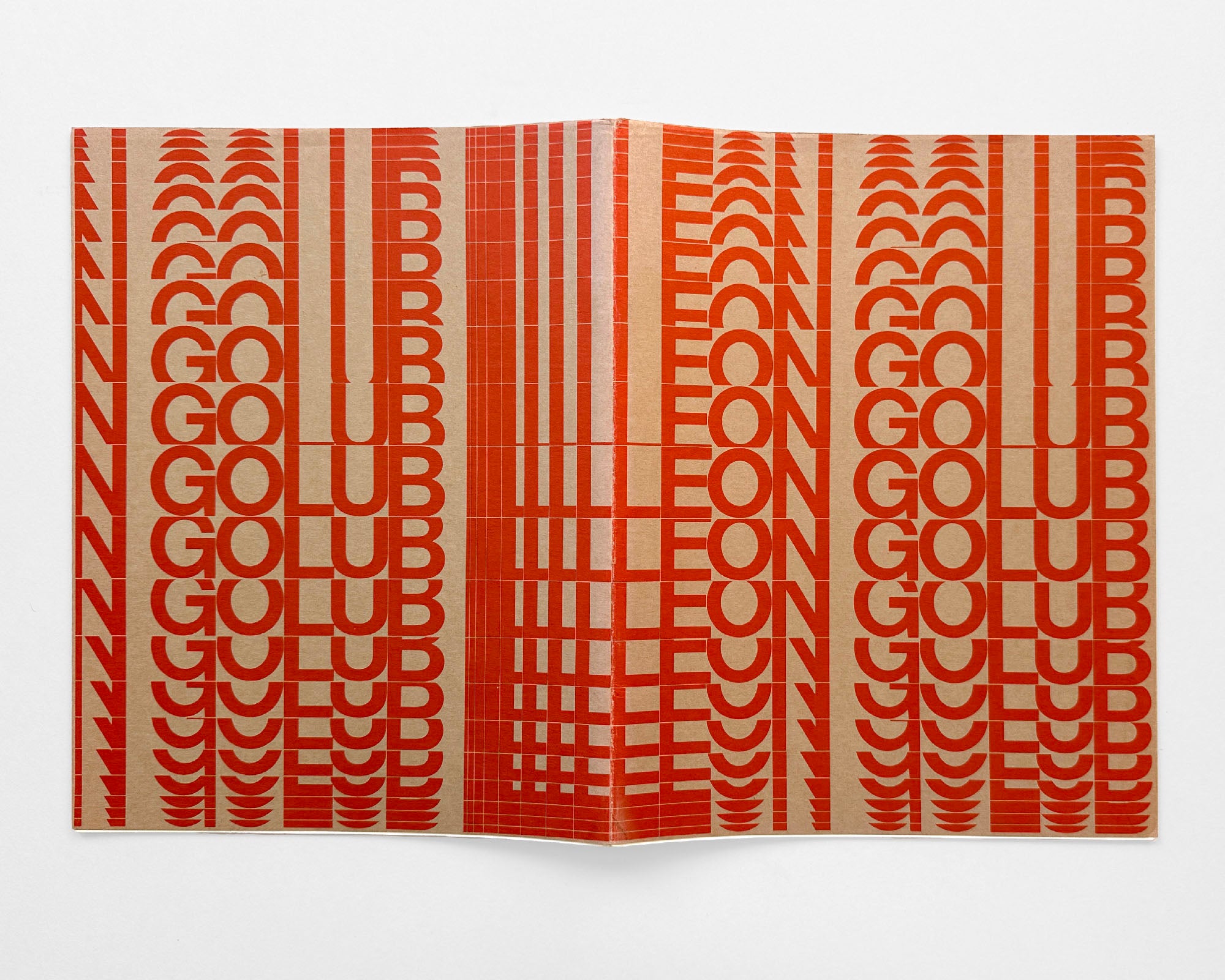 The crop-and-repeat move is a technique that modernist typographers keep coming back to since the late 1960s. Perhaps the most striking execution – if you want to fill an entire page with type – is the crop-and-repeat that starts from both the top and bottom and ends with a complete title in the center. So far, our earliest example of this on Fonts In Use is Mencken by Carl Bode, designed by George Lenox in 1969. This exhibition catalog cover by Jacqueline Casey is the second. Once you open the wrapper to reveal the back cover, you see Casey took the technique even further, continuing the repeat in the lateral direction.