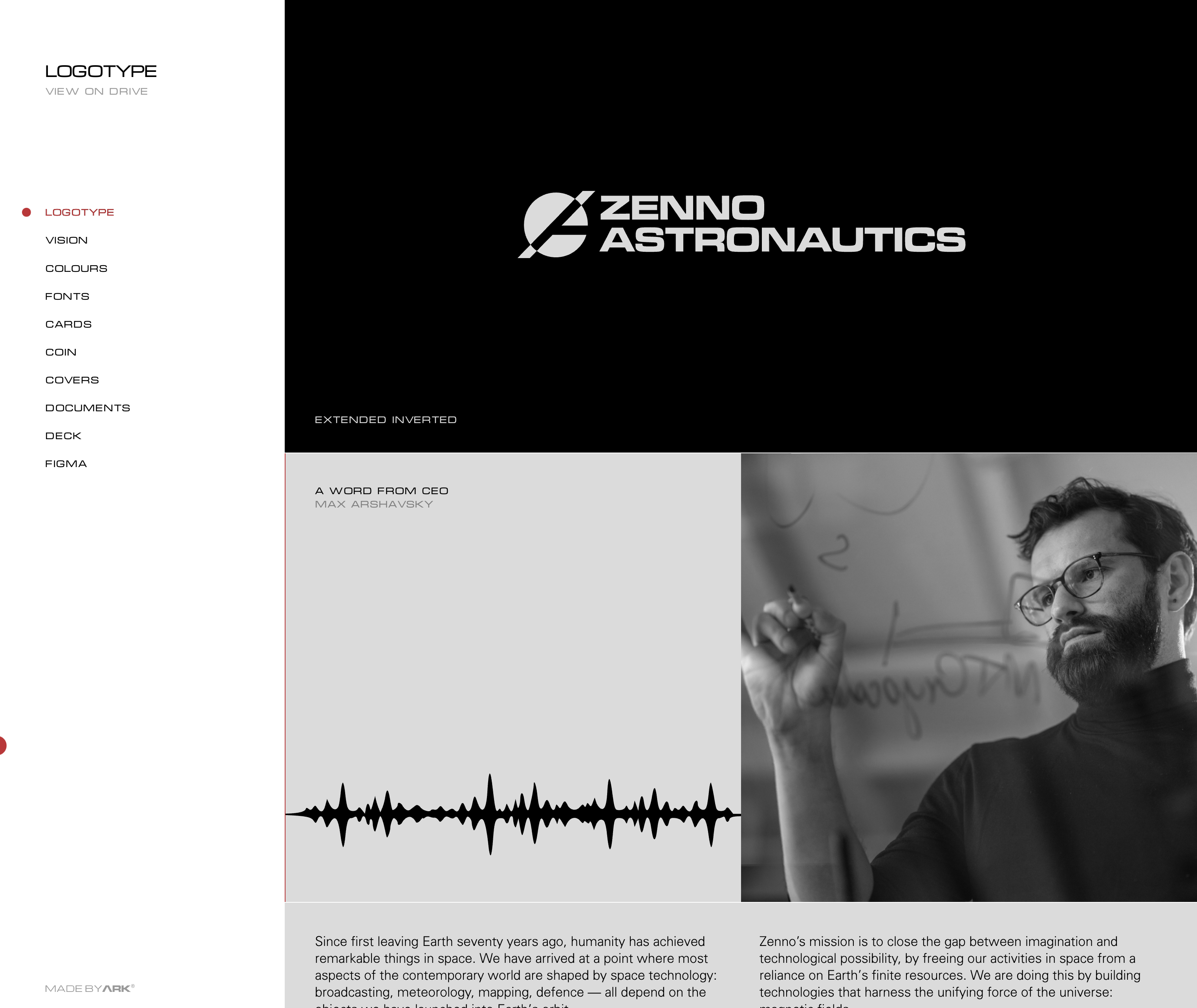 Zenno Astronautics brand identity Contributed by Andrei Nikiforov on Dec 30th, 2024. Artwork published in circa December 2023. Source: www.zenno.design License: All Rights Reserved. Brand identity guidelines for New Zealand-based aerospace company Zenno Astronautics. THE ARK created the initial branding and the recent redesign in 2023, choosing Microgramma as the primary typeface for the logotype. Source: www.zenno.design License: All Rights Reserved. Source: www.zenno.design License: All Rights Reserved. Source: www.zenno.design License: All Rights Reserved. Typefaces More about MicrogrammaGet MicrogrammaMore about MichromaGet MichromaMore about UniversGet Univers Formats Branding/Identity (8358) Topics Technology (1469) Designers/Agencies Andrei Nikiforov (1) THE ARK (1) Tagged withdesign studios/agencies (490)style guides / brand manuals (361)single page websites (193)websites (3517)similar typefaces (416)space travel (129)aviation (18)brands (1487)identities (2314)logos (4931)all caps (7502) Artwork location Iceland (61) Reykjavík (43) Post a comment Name Email – will not be published Website Your response Submit Comment More Microgramma in use Unisonic 888 Slide Rulette1975Contributed by Nathan Prost Harry Belafonte – Sings Five Early Songs / The Islanders – Calypso In The Sun album artc. 1961Burt PortnoyPhoto(s) by Bart Solenthaler on Flickr. Discotheque with the Stars album art1966unknownContributed by Javi Gonzalez Sponsor More in Technology Radical Passion. The World’s Longest Produced Electric Train and a Vibrant Train Culture2022TorypressthreedotstypeContributed by Threedotstype Staff Pick Sony Watchman logoc. 1982SonyContributed by Florian Hardwig Staff Pick Apple iOS10 Memories feature2016AppleContributed by Gareth Hague TwelveLabs2025PentagramContributed by 205TF Staff Pick More in Branding/Identity Rayon Vert2025Forme BruteContributed by errorerror.studio Siebenquell2013Patrizia MonnerjahnContributed by Linus Rost Volume 3 Montreal Book Fair 20202020Juliette DuhéContributed by Juliette Duhé Firestone logoc. 1905Christian John ChristiansenContributed by Stephen Coles Staff Pick More Fonts In Use Hch. Wuhrmann invoice, 1941c. 1940Heinrich Wuhrmann DruckContributed by Florian Hardwig Staff Pick Tony Mottola – String Band Strum-Along album art1961Charles E. MurphyGeorge GiustiPhoto(s) by Bart Solenthaler on Flickr. Staff Pick The Films of Robert Redford by James Spada1984Angela ArnetContributed by Florian Hardwig Staff Pick HI postcardc. 1995Stephen StinehourContributed by Stephen Coles Staff Pick