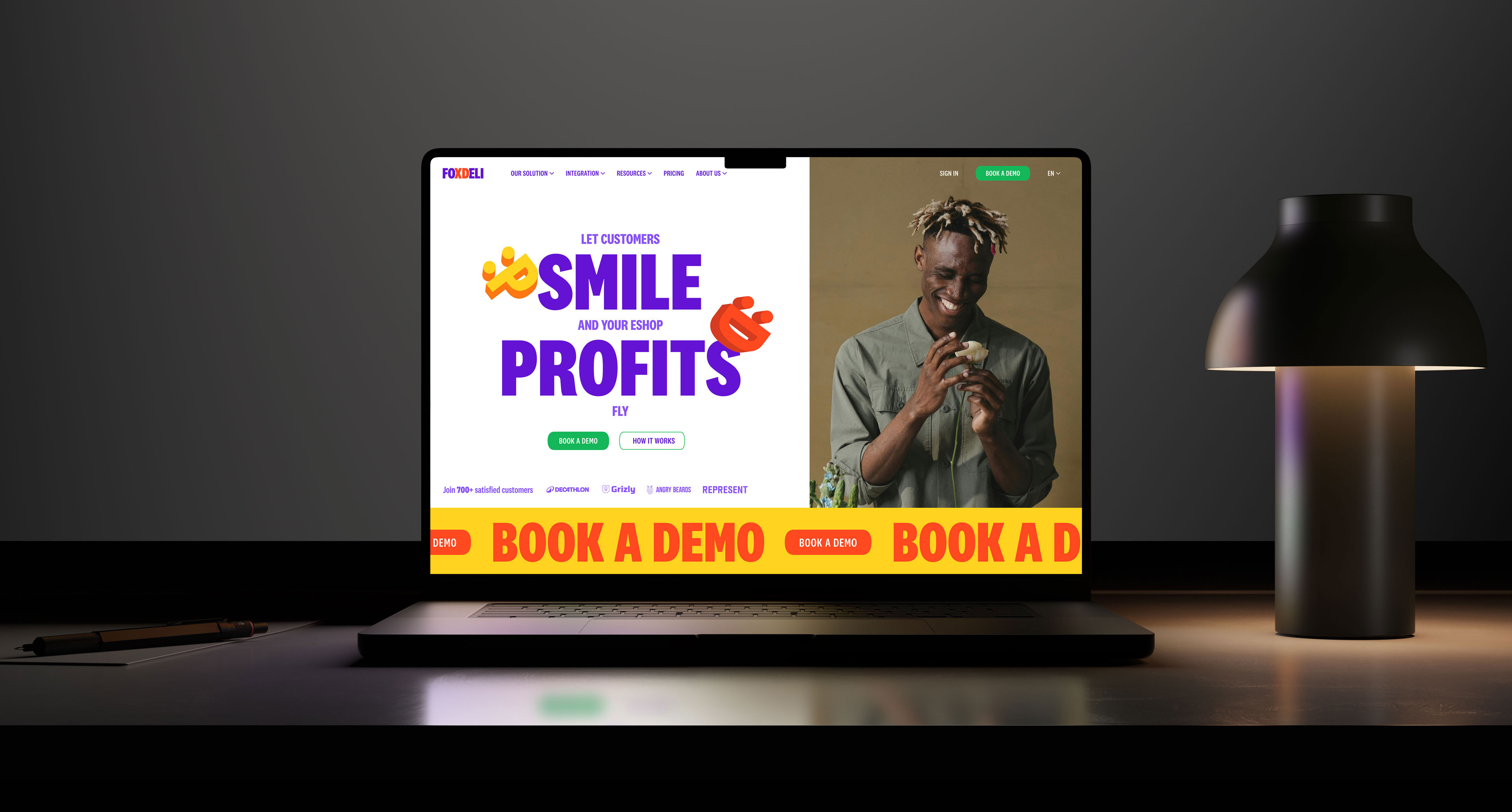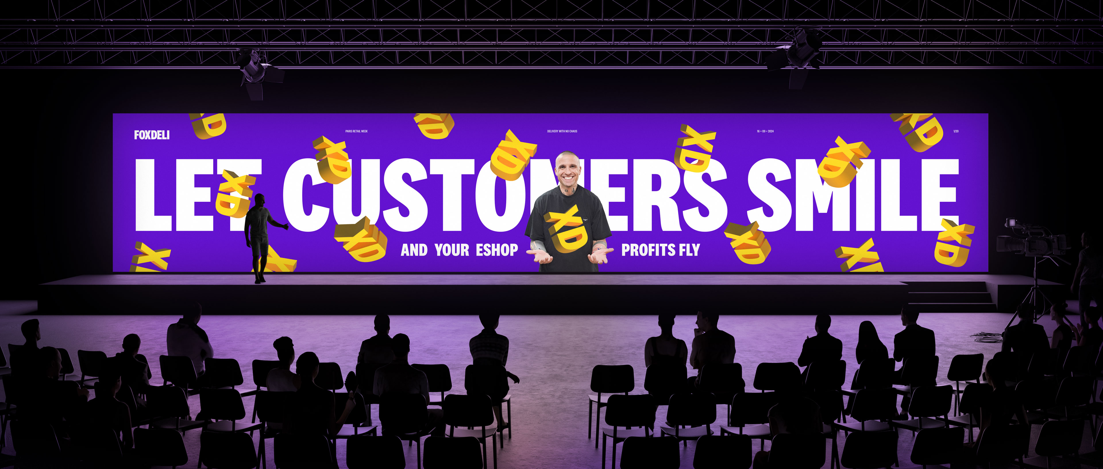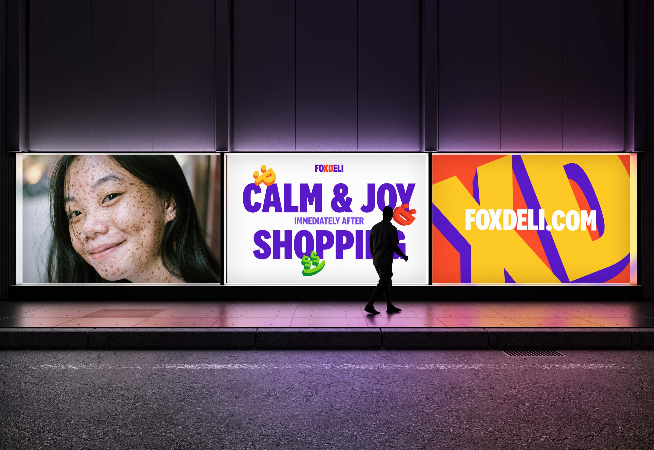 The typography extends across the identity, paired with vibrant compositions and 3D-shadowed elements that reinforce the emotive, layered storytelling of the brand. This typographic system doesn’t just communicate—it engages, aligning seamlessly with Foxdeli’s ethos of amplifying customer satisfaction and e-commerce success.