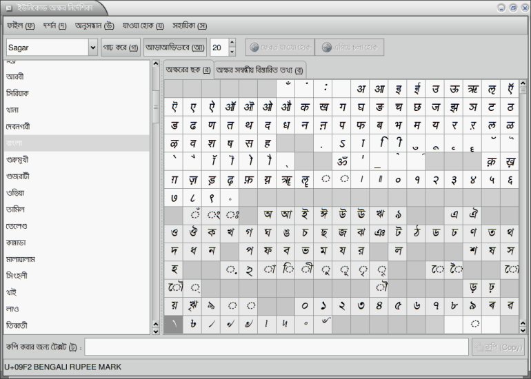 Mukti is the default font used for the user interface in the Ankur Bangla localization of the Linux GNOME Desktop operating system.