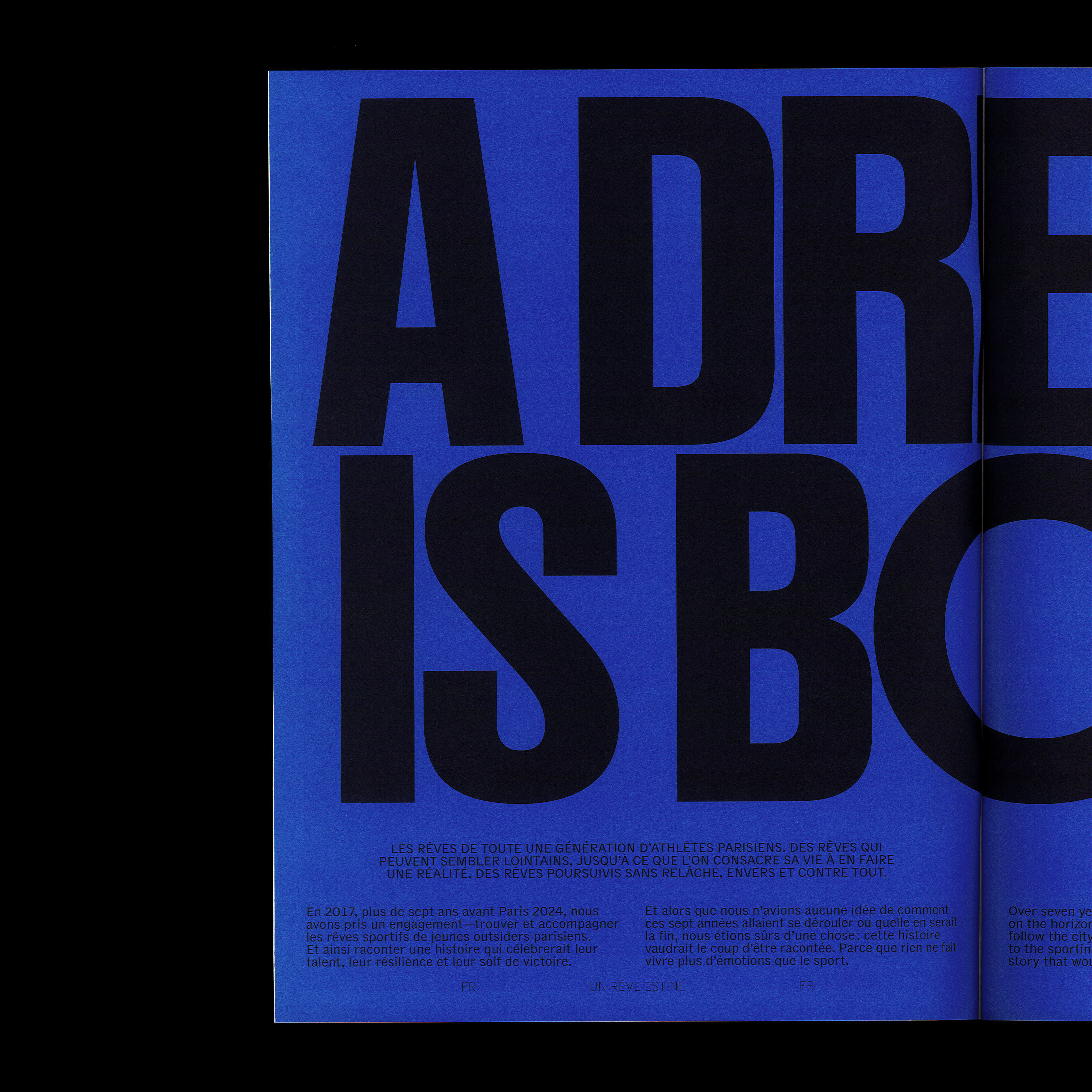 The publication is printed by Media Graphic Rennes, using a customized version of LL Ruder Plakat typeface (Lineto), with Delegate (Commercial Type) for text.